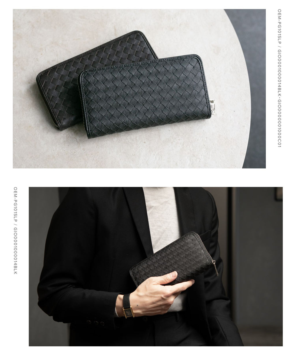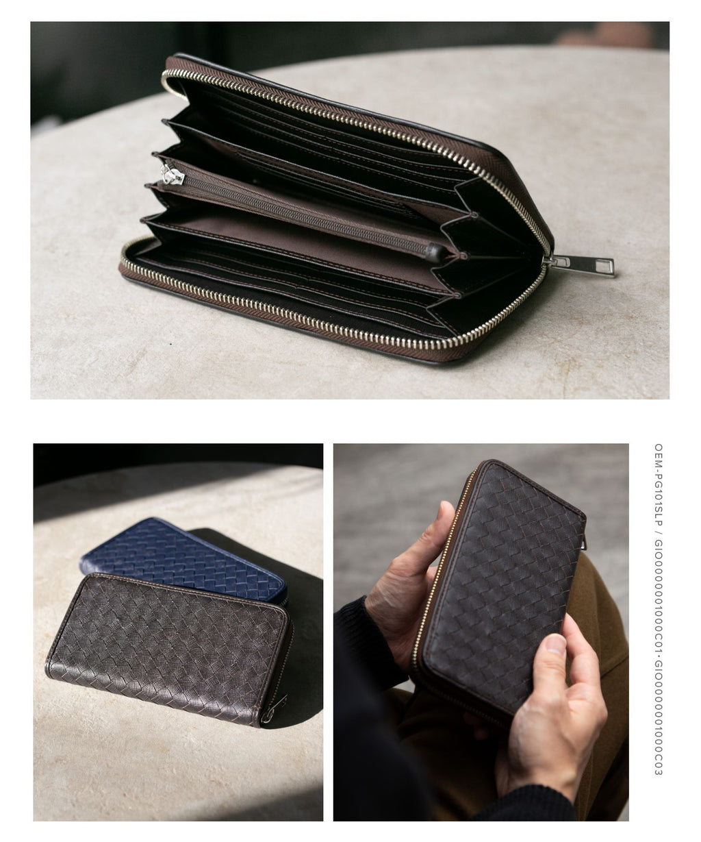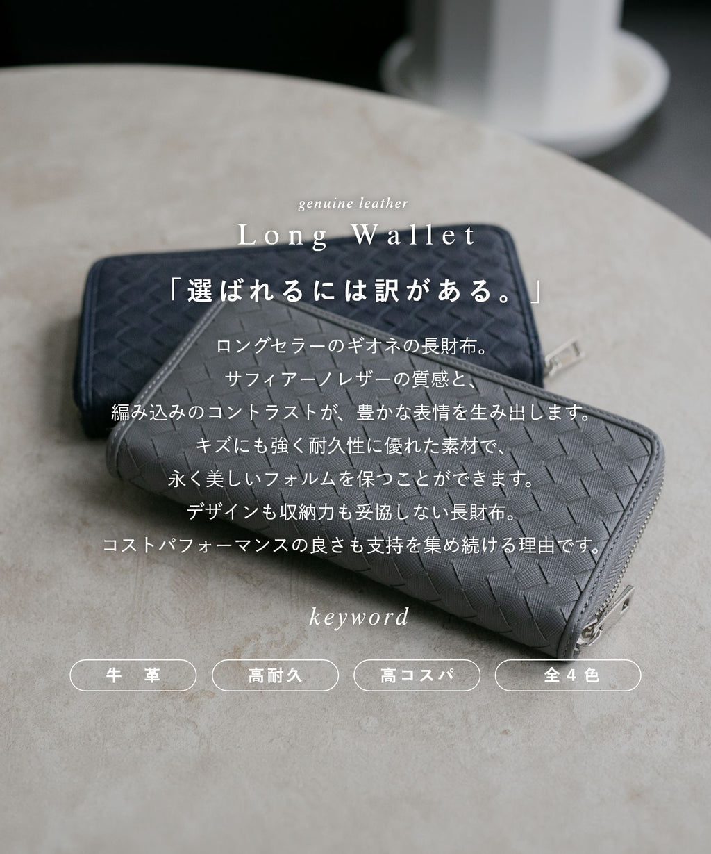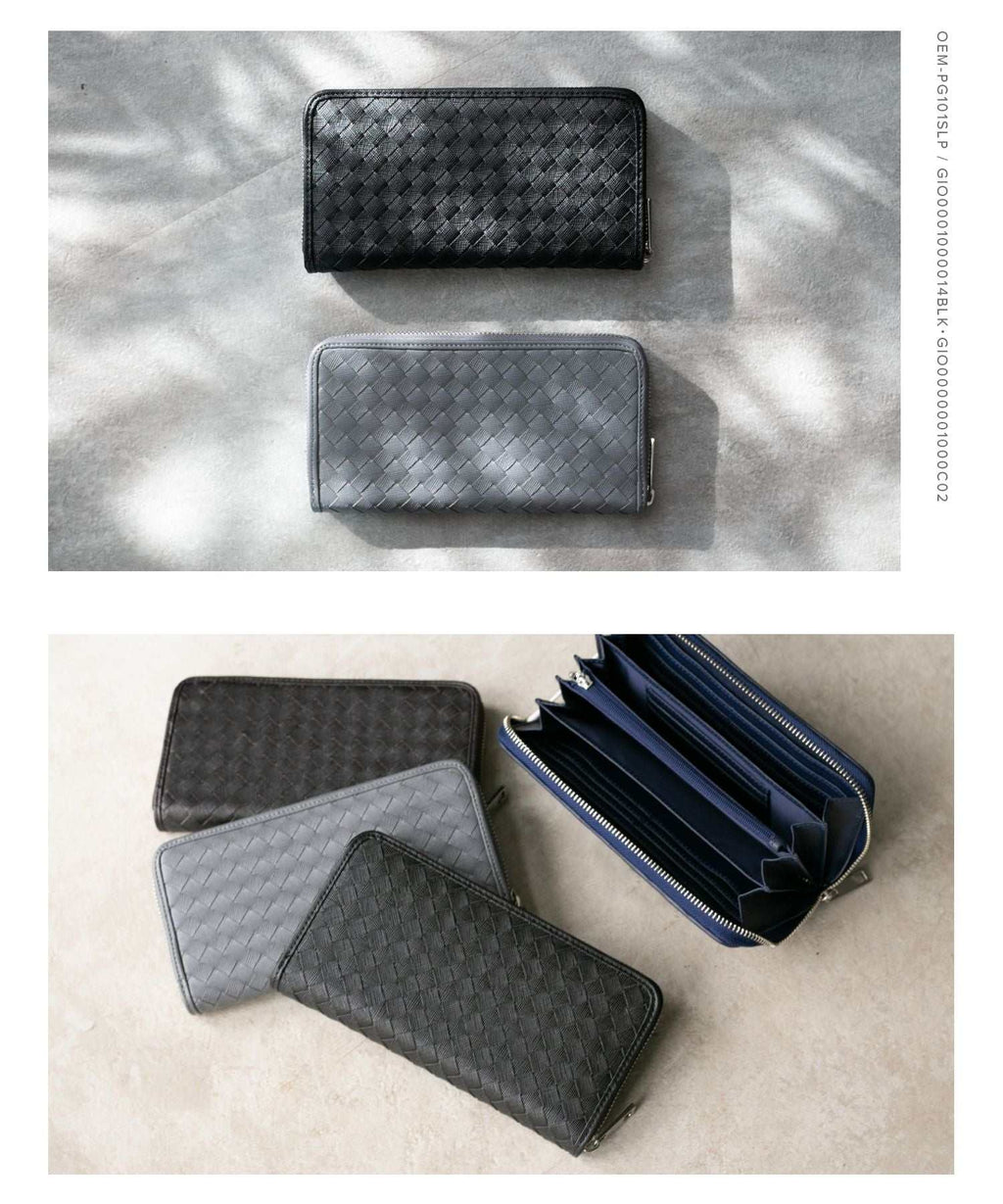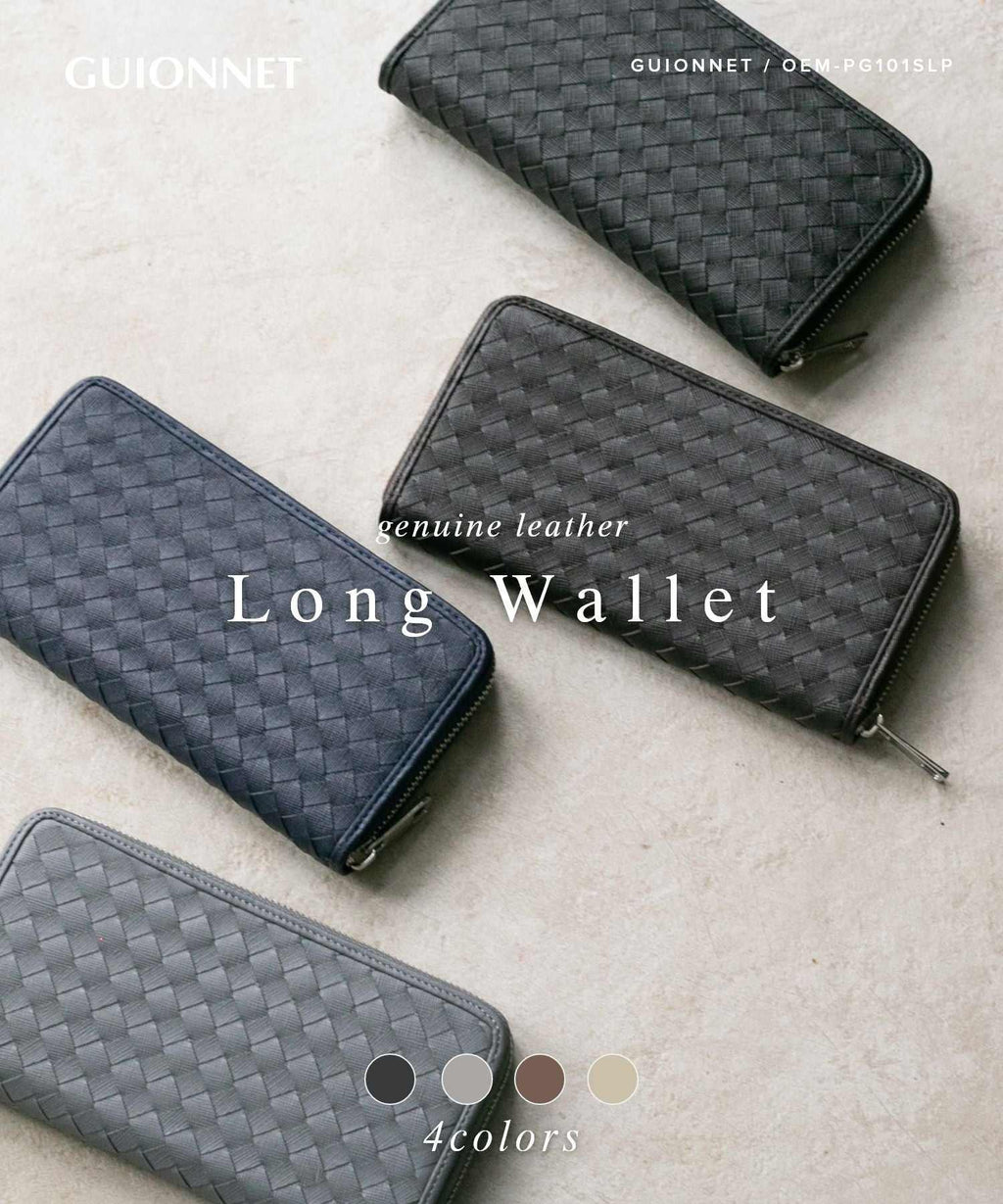 GUIONNET Long Wallet, Saffiano Leather, Large Capacity, Intrecciato, Men's, Women's, Round Zipper