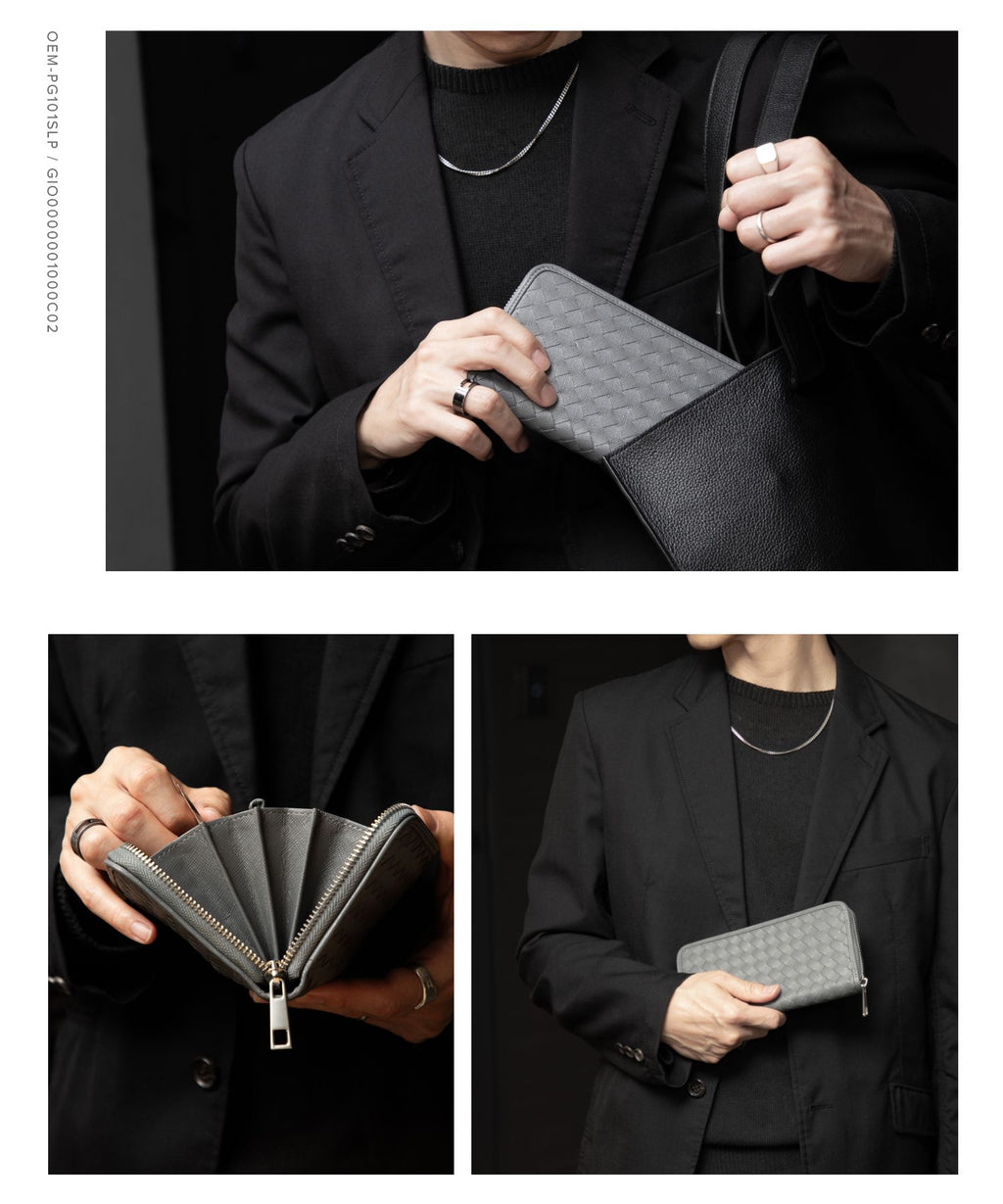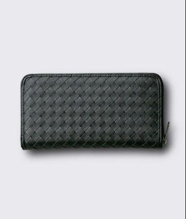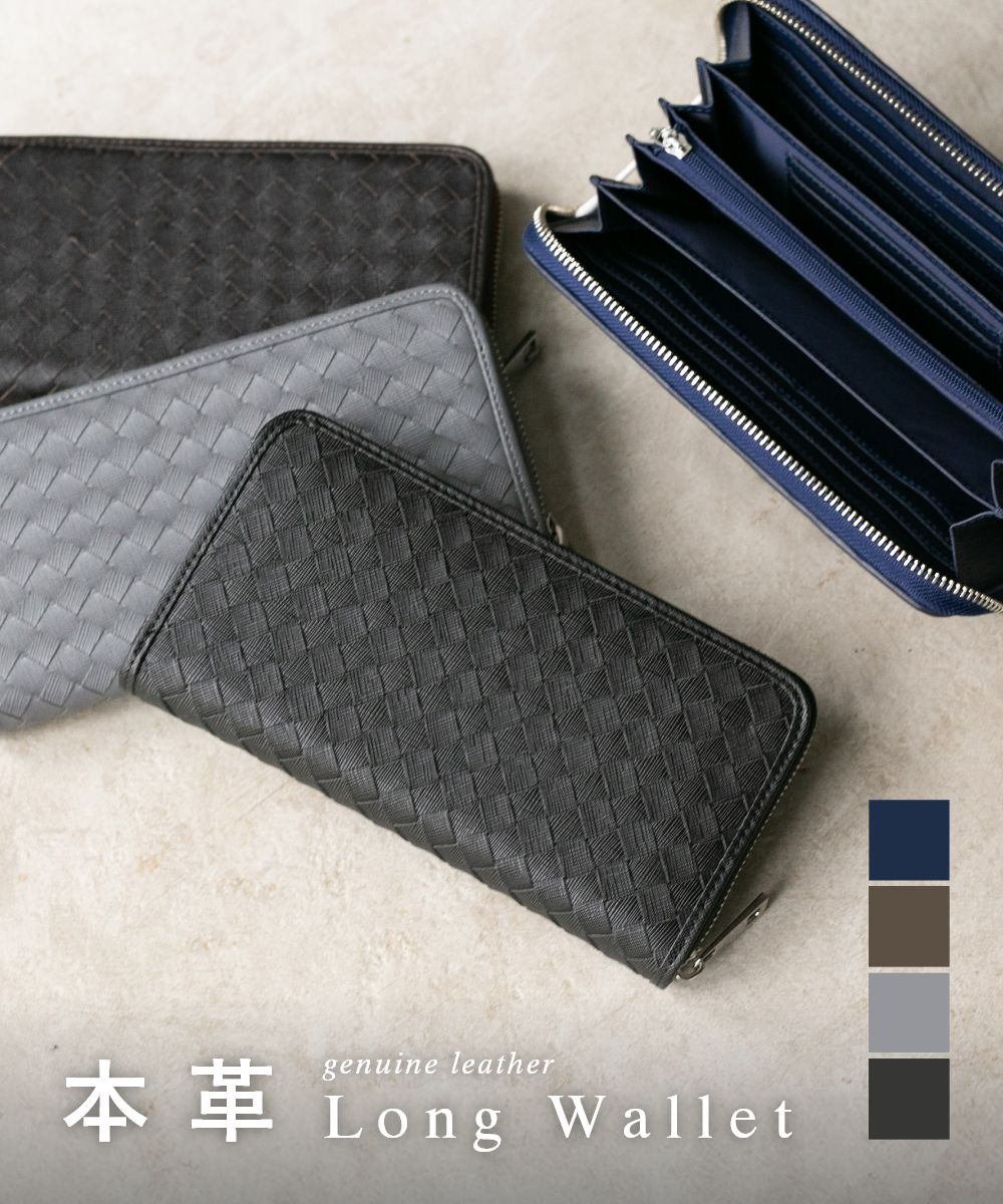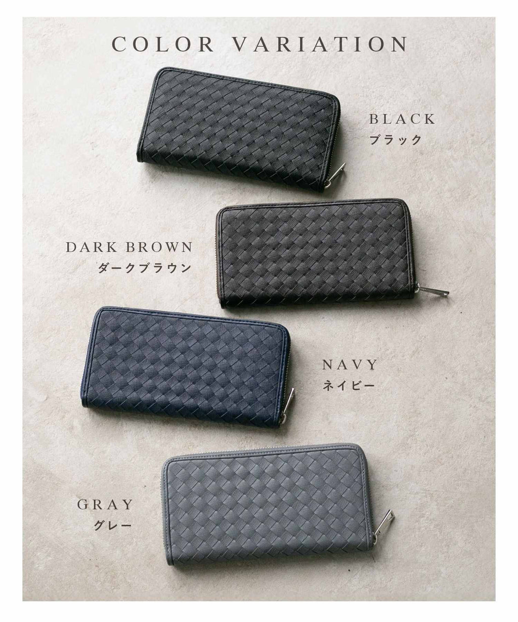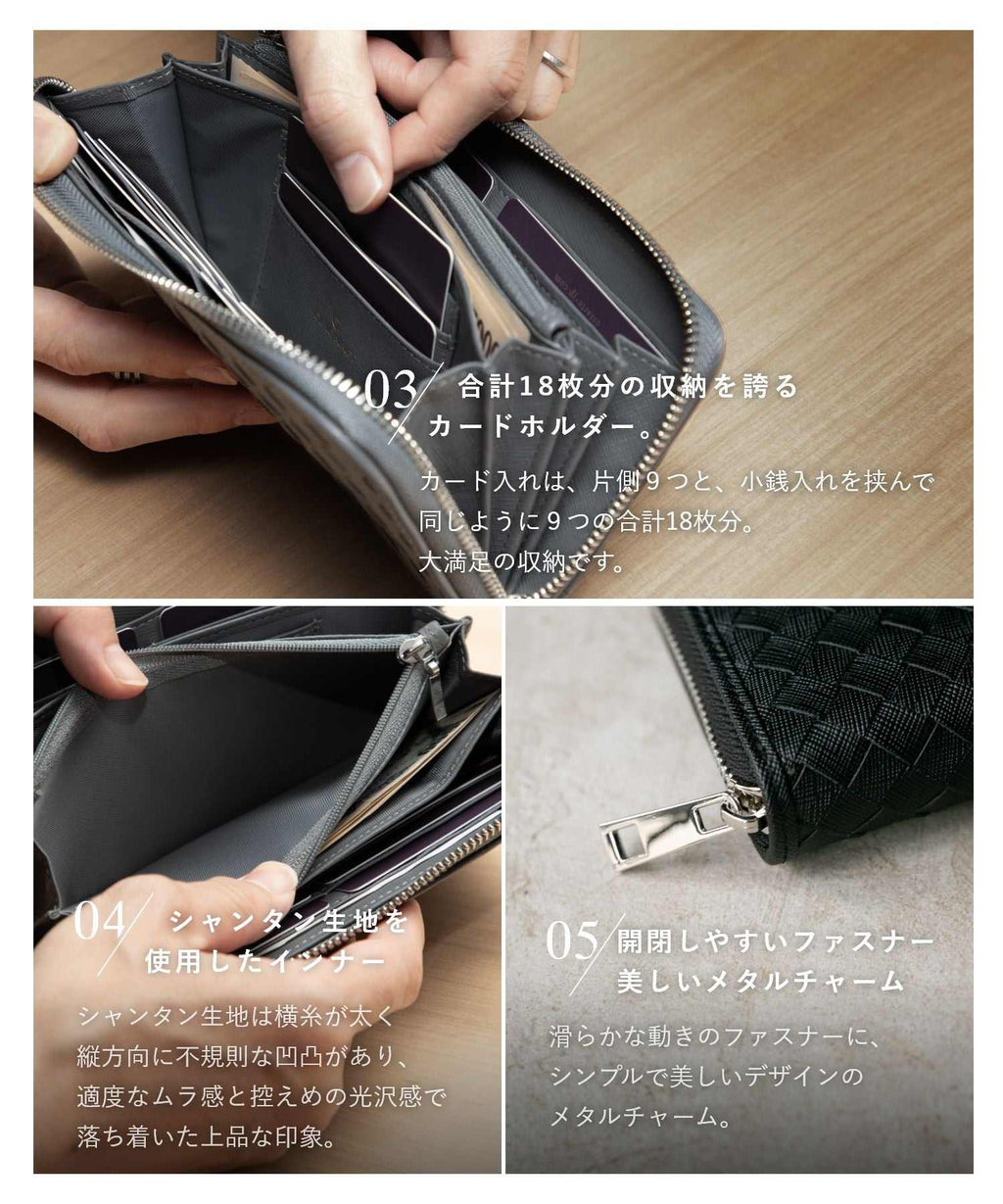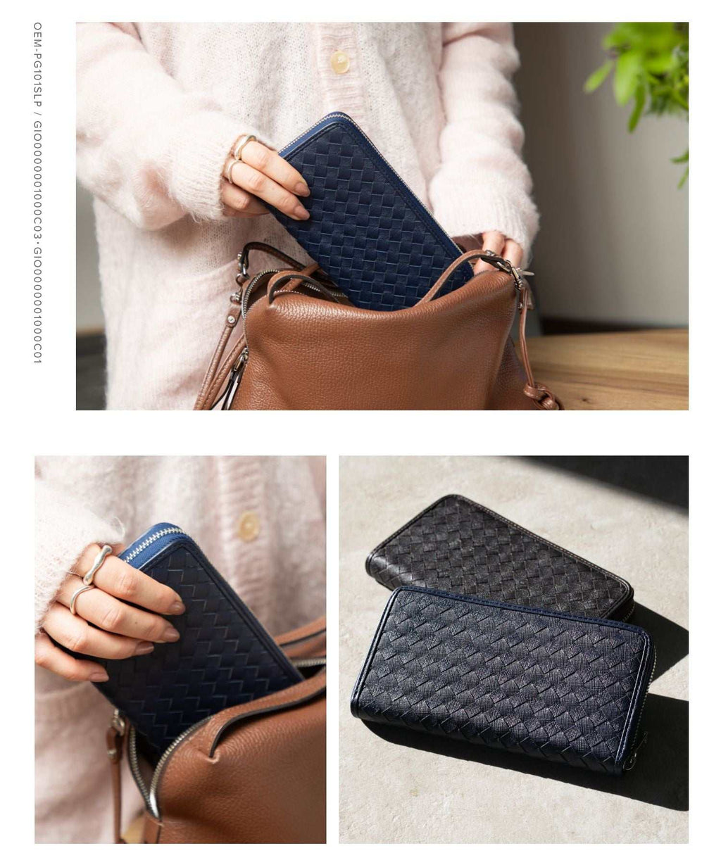 GUIONNET Long Wallet, Saffiano Leather, Large Capacity, Intrecciato, Men's, Women's, Round Zipper