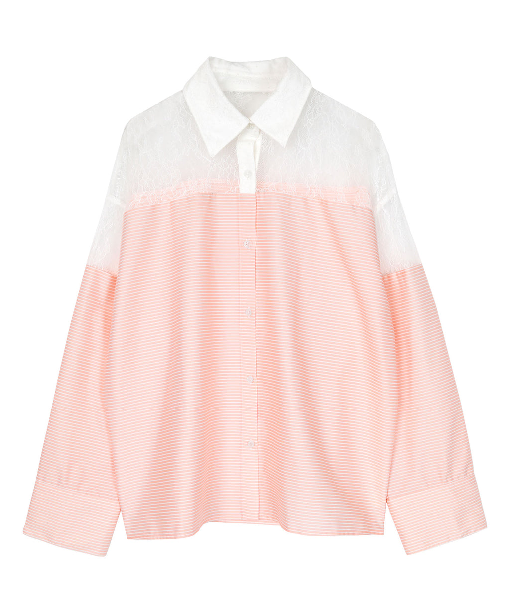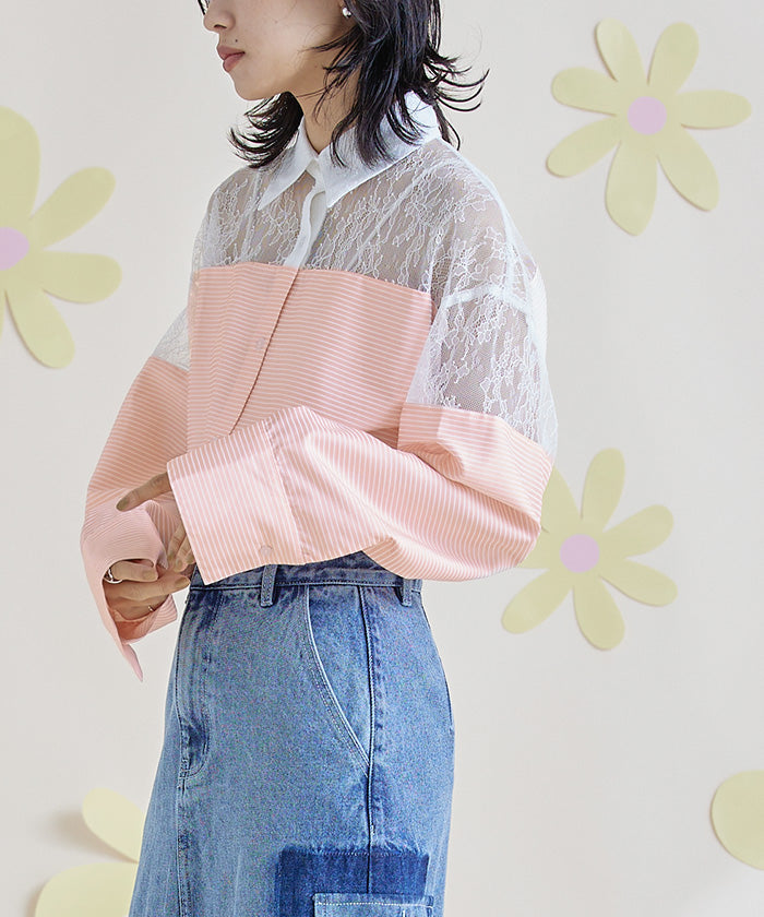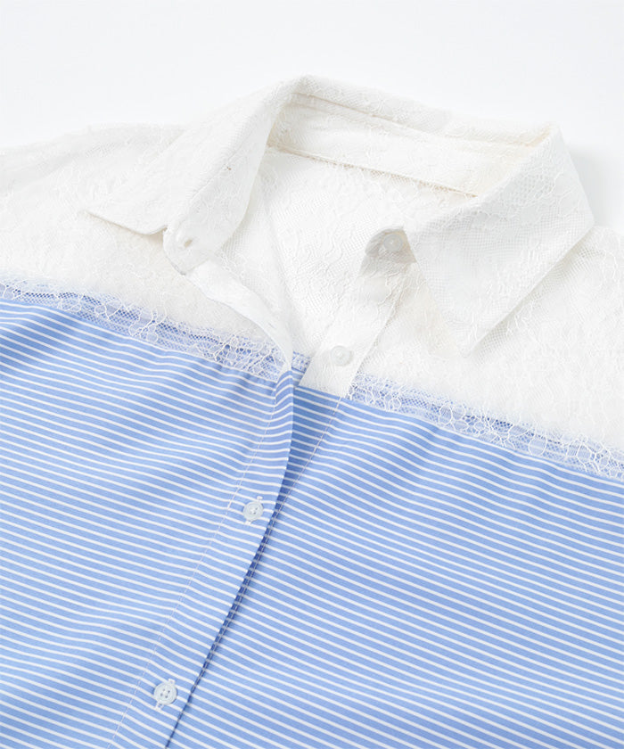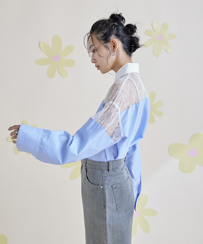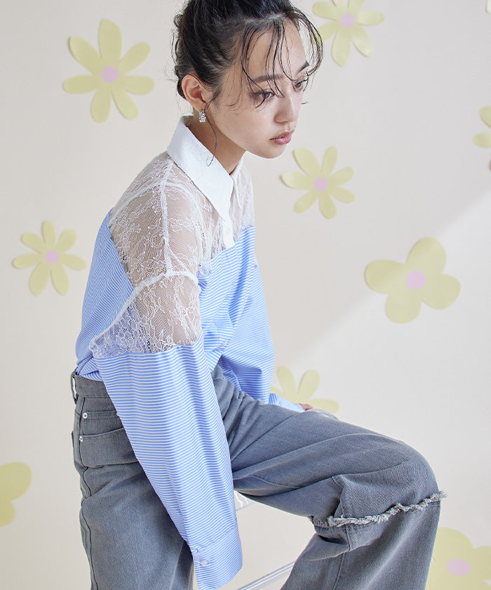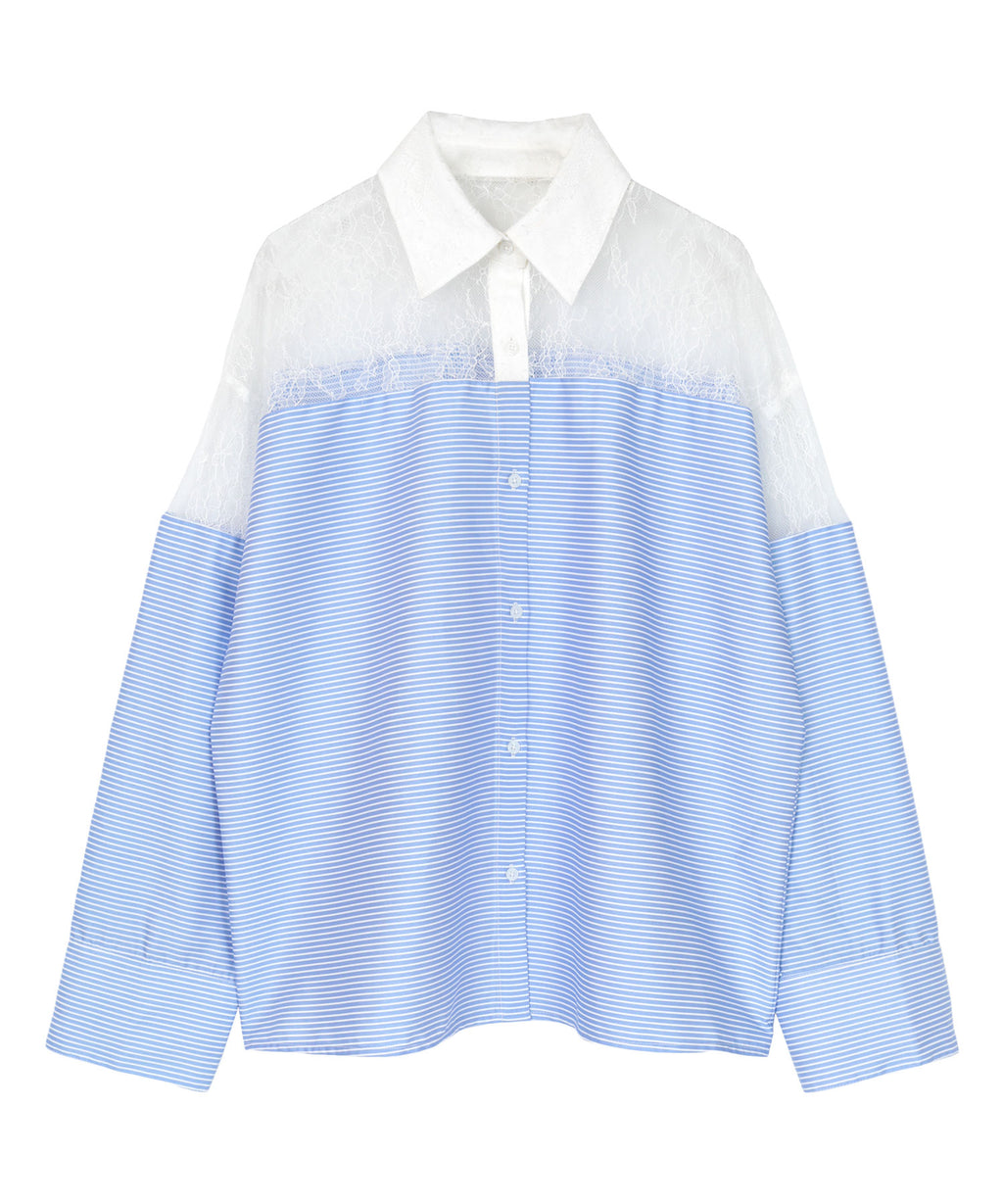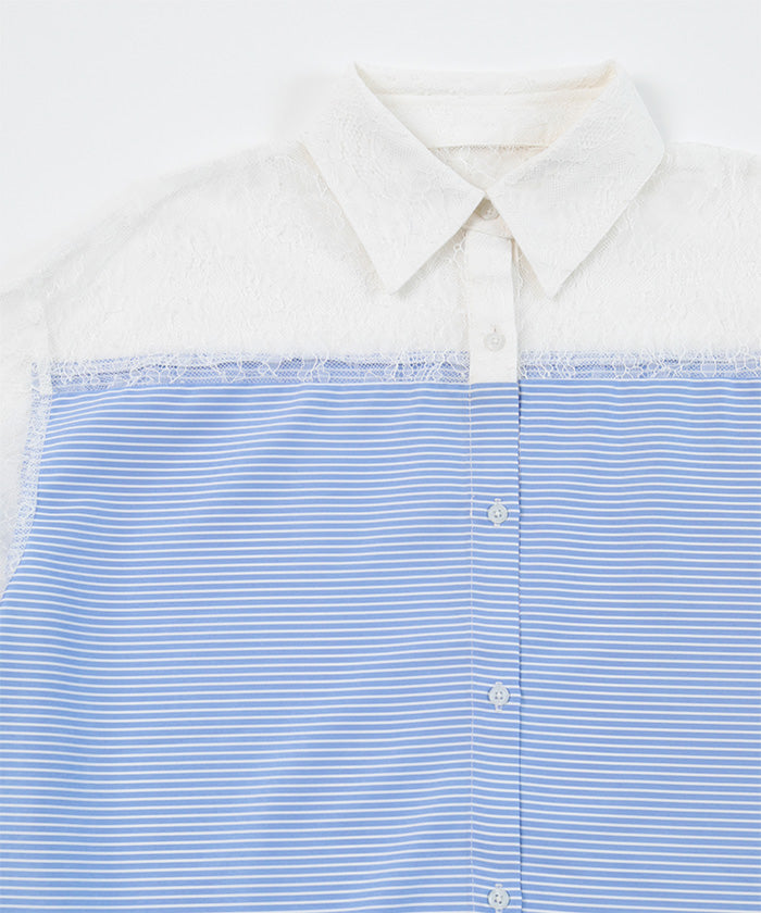 A shirt with a lace switch at the yoke that creates a feminine sense of openness.