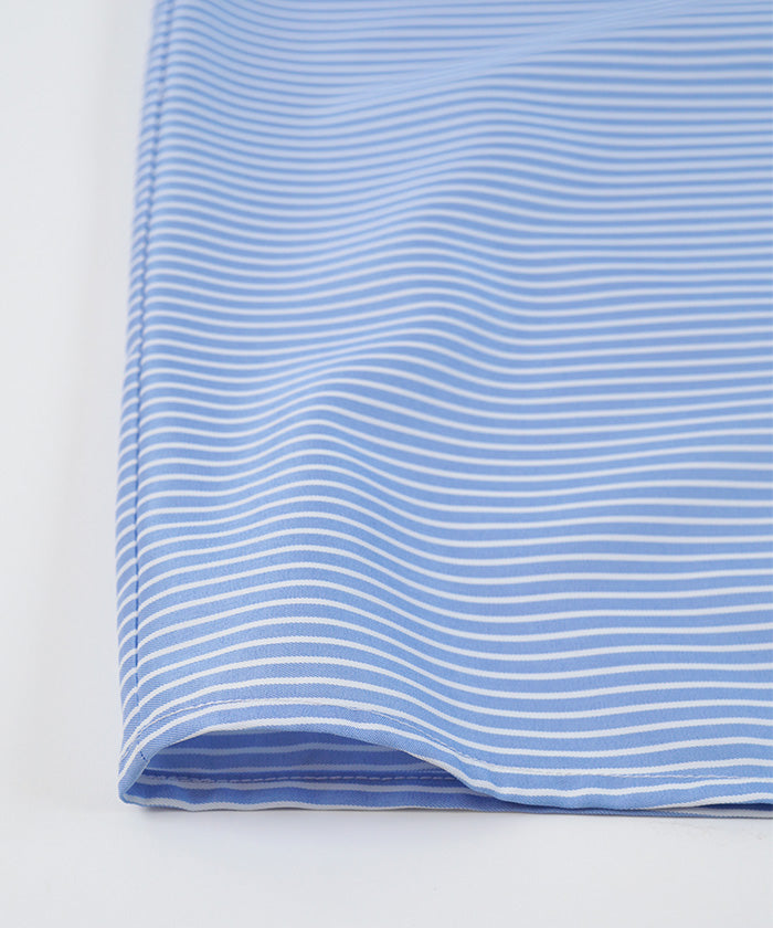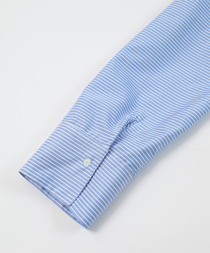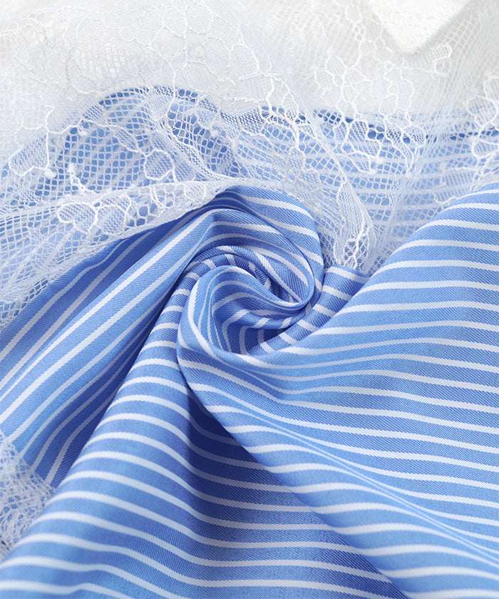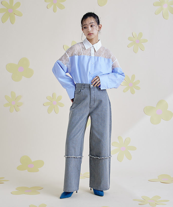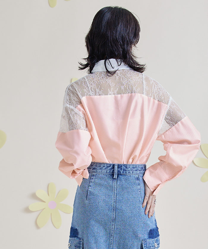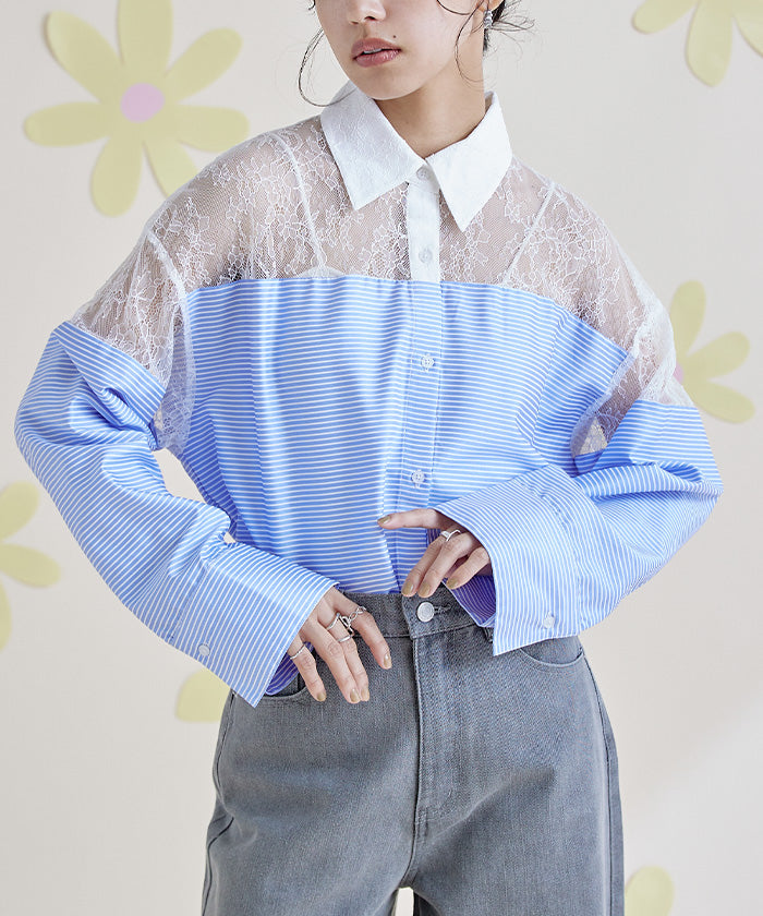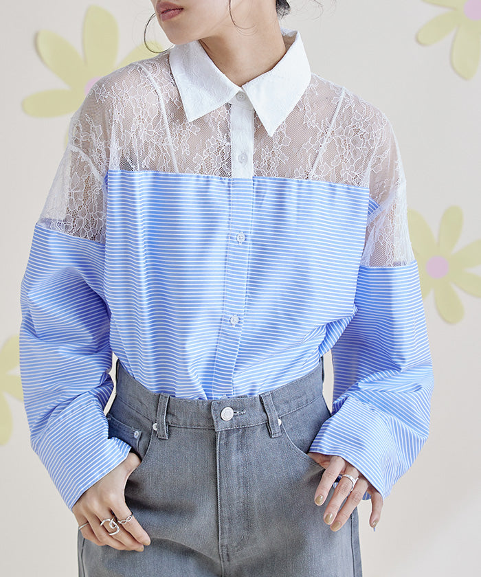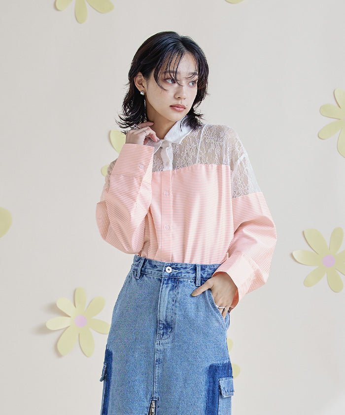 A shirt with a lace switch at the yoke that creates a feminine sense of openness.