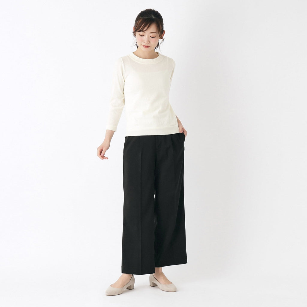 Laura Ashley [Elastic waist/linen-like material] Wide pants
