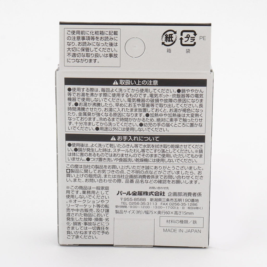 This iron plate allows you to easily replenish your iron intake. It is useful for coloring eggplants and cucumbers, coloring black beans, and removing sand from shellfish. It has holes so that it is easy to scoop with chopsticks.