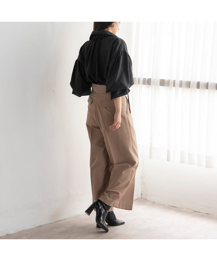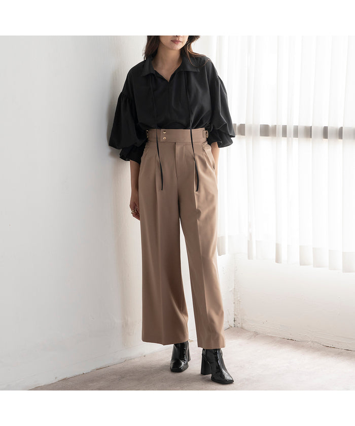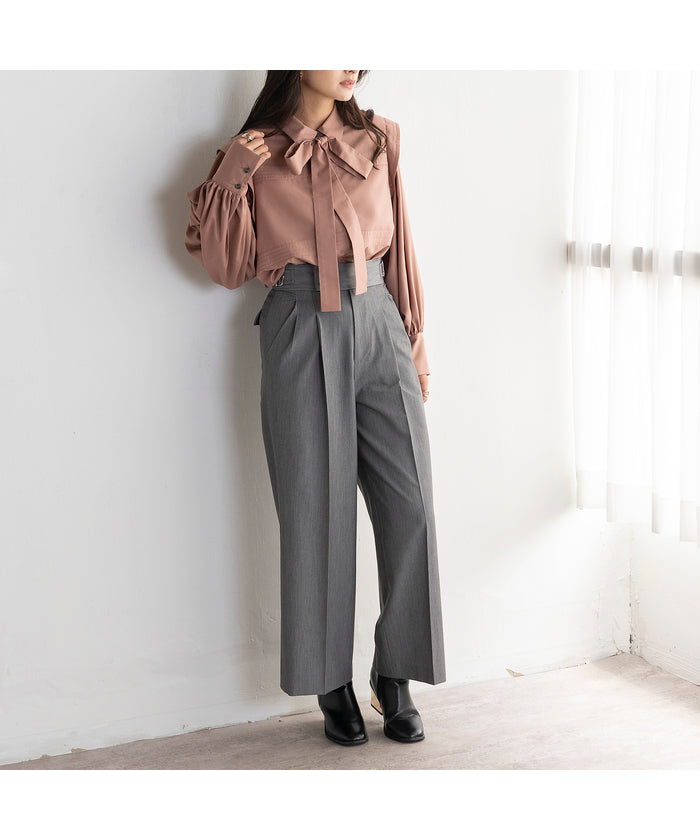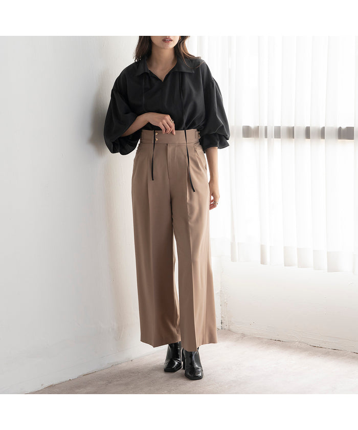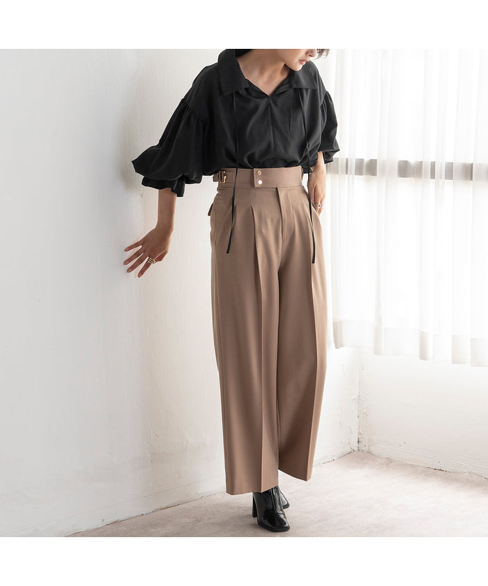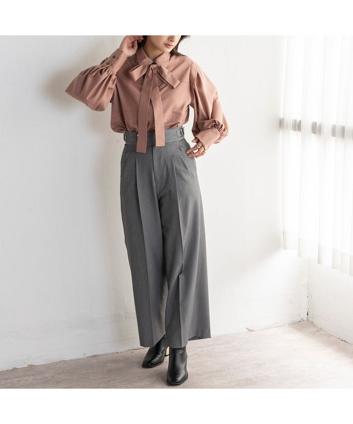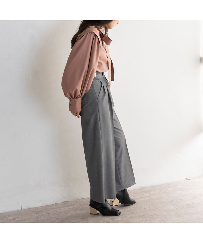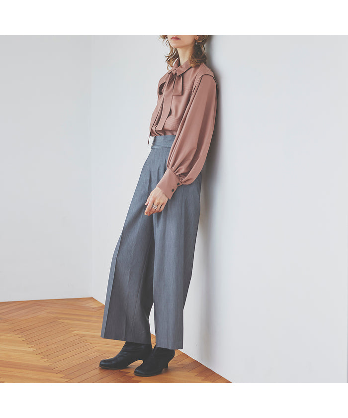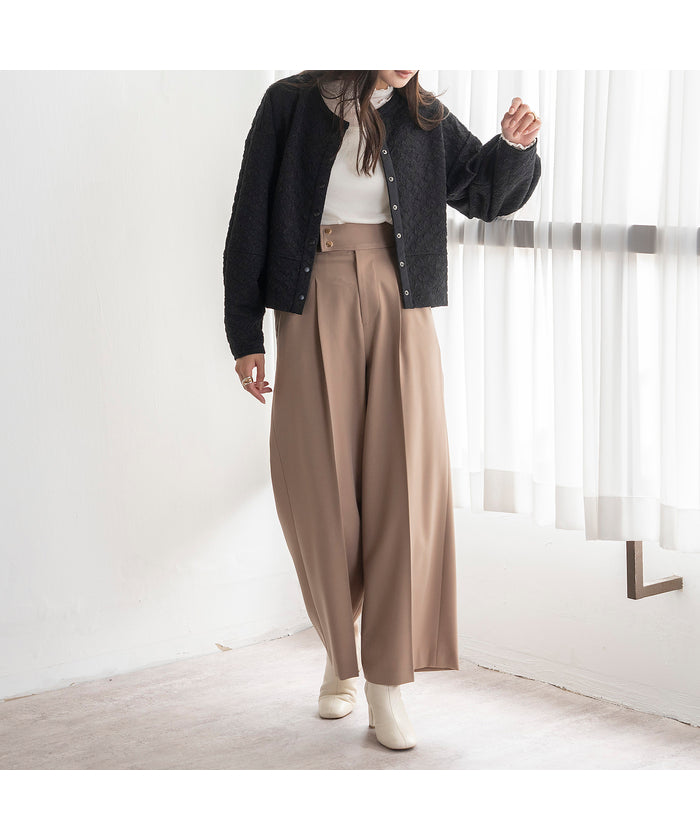・Wide silhouette pants made with fabric that has a stylish surface feel and a moderate drape