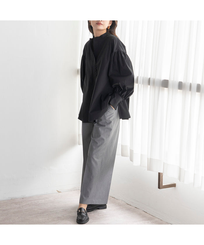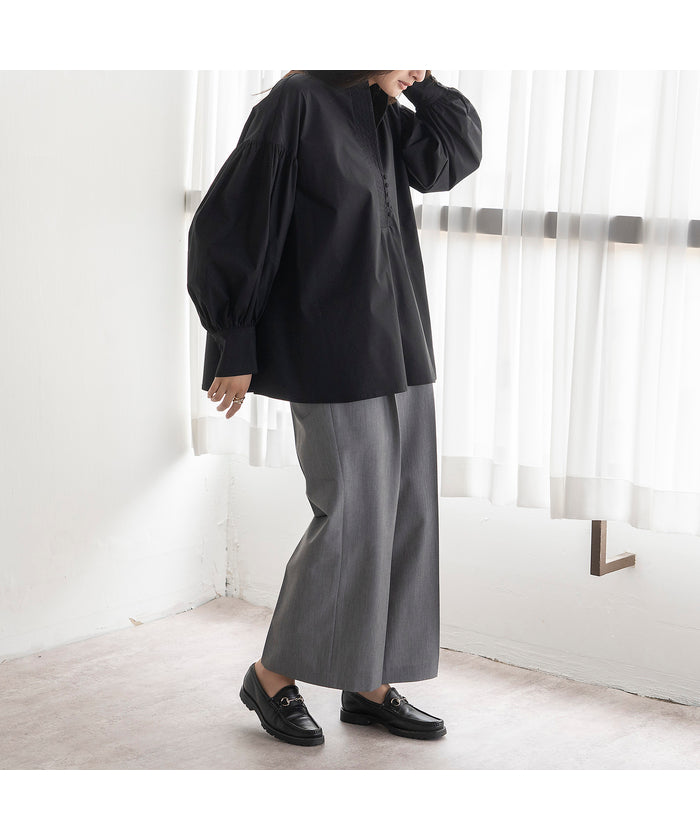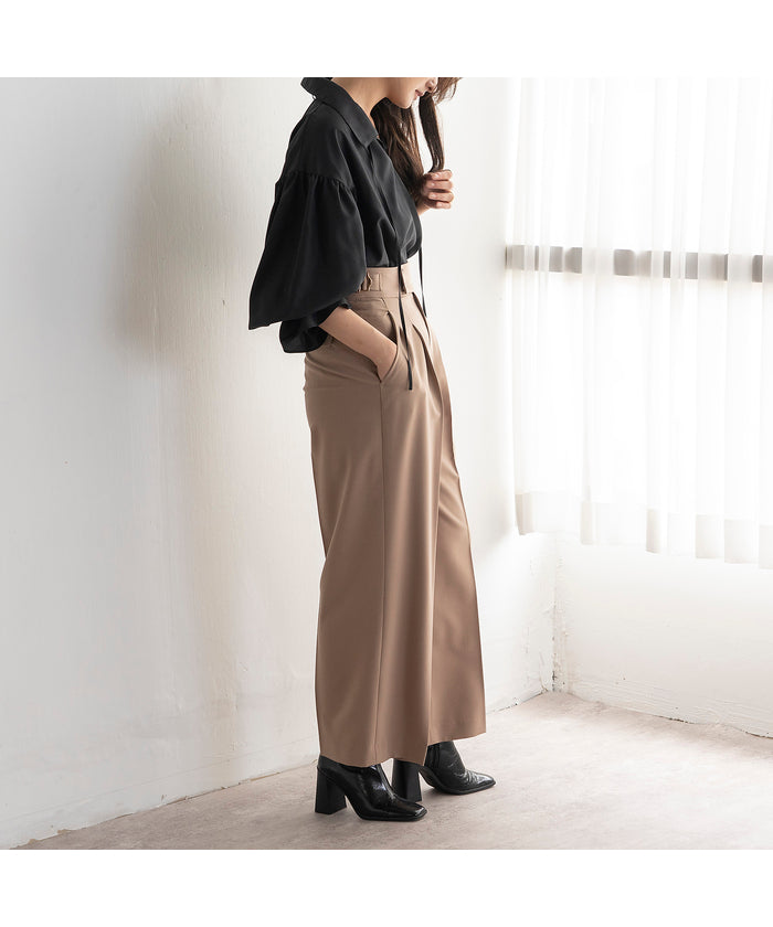 Soft and smooth fabric creates a beautiful silhouette and a sense of movement. Tucking in the top enhances the balance by utilizing the waist design.