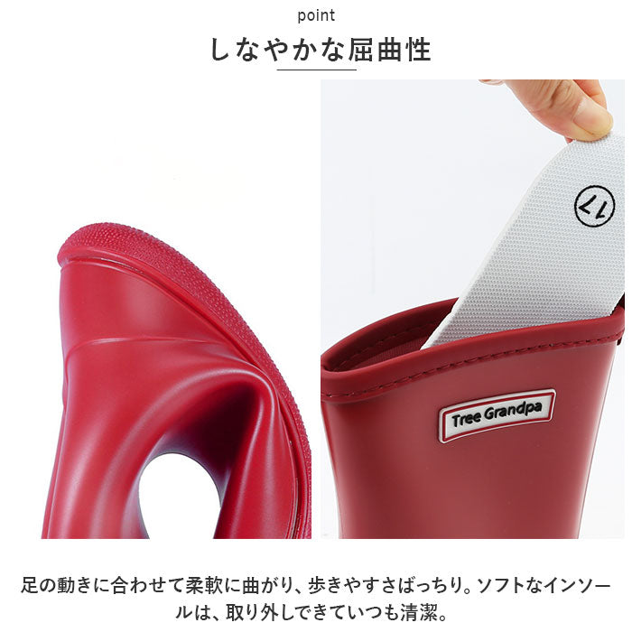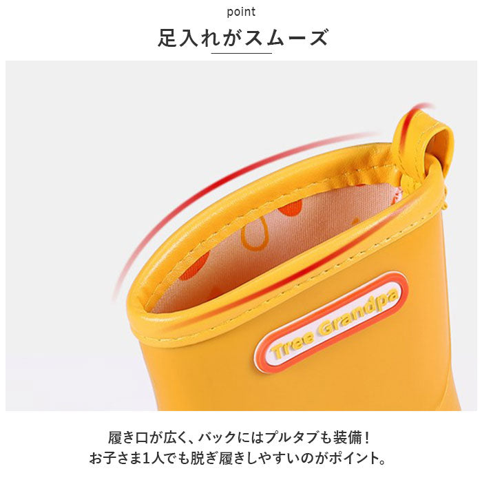 Even on gloomy rainy days, kids can go to school and out with energy! New kids' rain boots are now available. 【Simple short boots】 A one-color design that is easy to match with any outfit. Since they are ankle-length short boots, they pair perfectly with both skirts and pants. 【Smooth entry】 The opening is wide, and there is a pull tab at the back! It's easy for kids to put on and take off by themselves. 【Reduces foot strain】 The opening is made of soft PU material. It is designed to be less prone to chafing and discomfort even after a lot of walking. ◎【Flexible bending】 It bends flexibly according to the movement of the foot, ensuring ease of walking. The soft insole is removable and always keeps clean. 【Anti-slip effect】 The bottom has fine unevenness, making it less slippery even in wet places, providing peace of mind. 【Easy maintenance】 The surface is made of PVC material that is resistant to water and dirt. Just wipe it off quickly, and no troublesome maintenance is needed. 【Color variations to choose from】 A lineup of standard colors and colors that serve as accents for outfits ★ The logo design on the outside adds a nice touch.