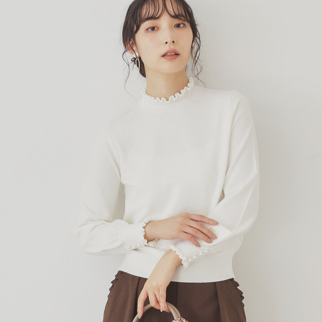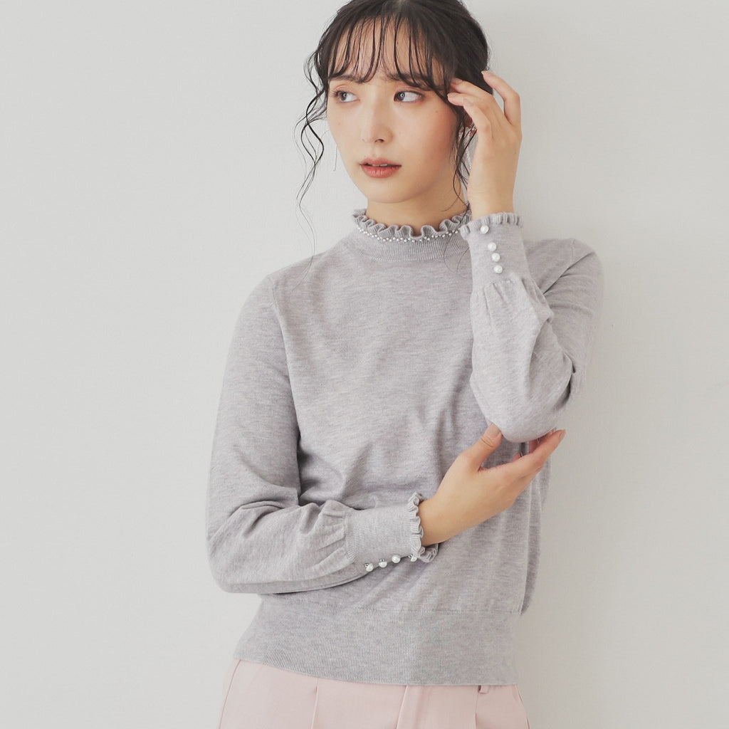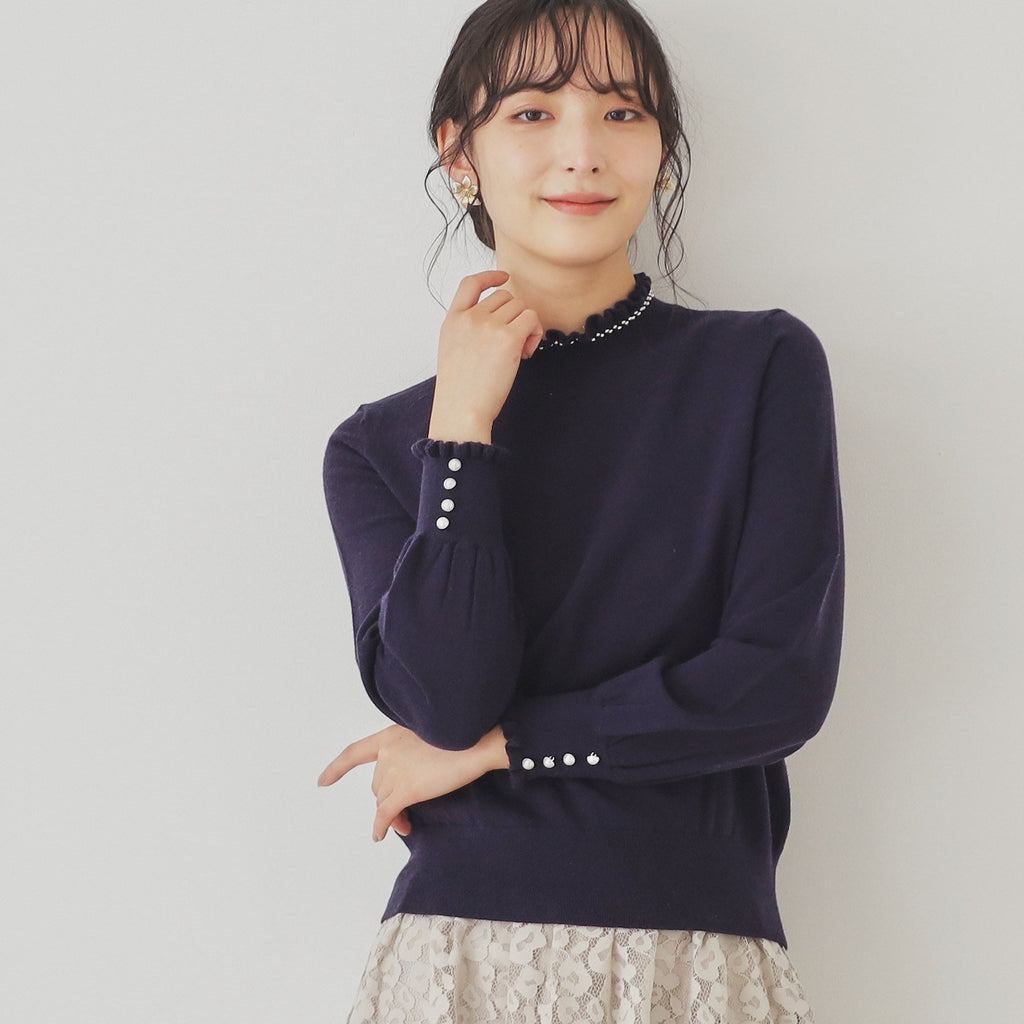 A glamorous petite craft knit woven with pearl-like details along the neckline.