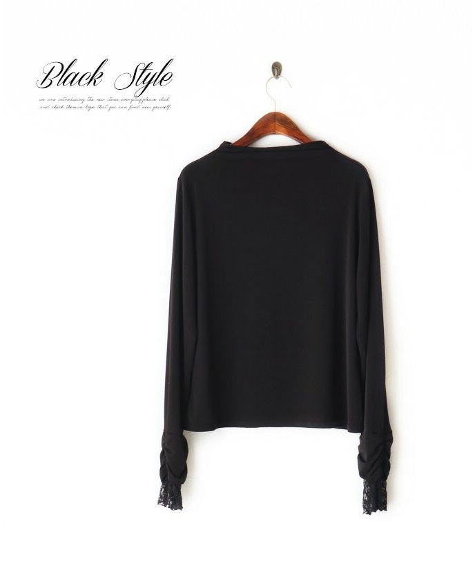 The crinkled volume of the shirring and the delicate lace create the impression of being layered in one piece.