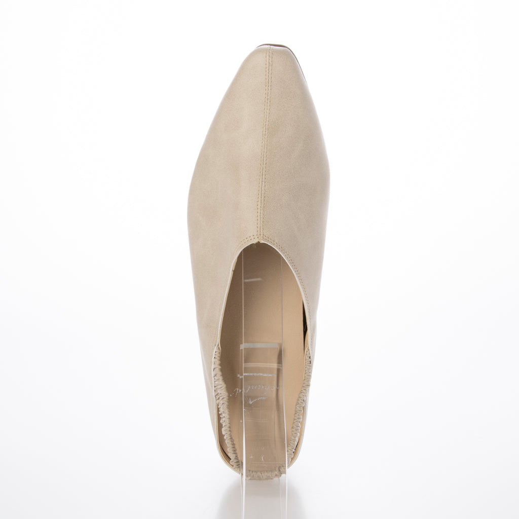 Mule shoes with a simple upper featuring a center seam and a pointed toe, finished stylishly.