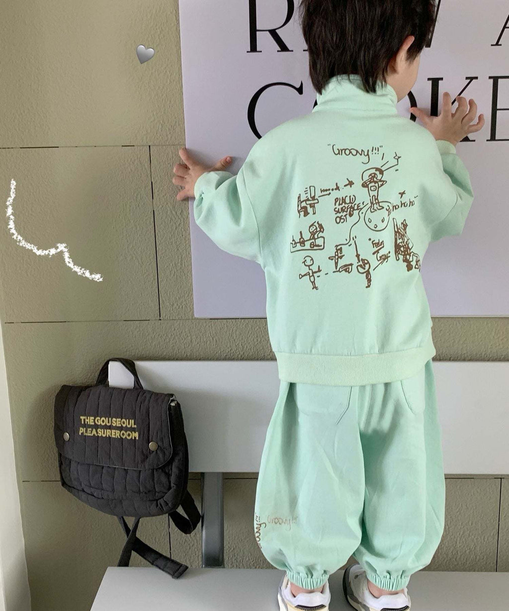 【100(cm)】 Body width 40.5 Length 37 Sleeve length 49 Waist 43 Hip 69 Pant length 52.5 Rise 25.5 Inseam 29.5 Thigh circumference 49 Hem circumference 20