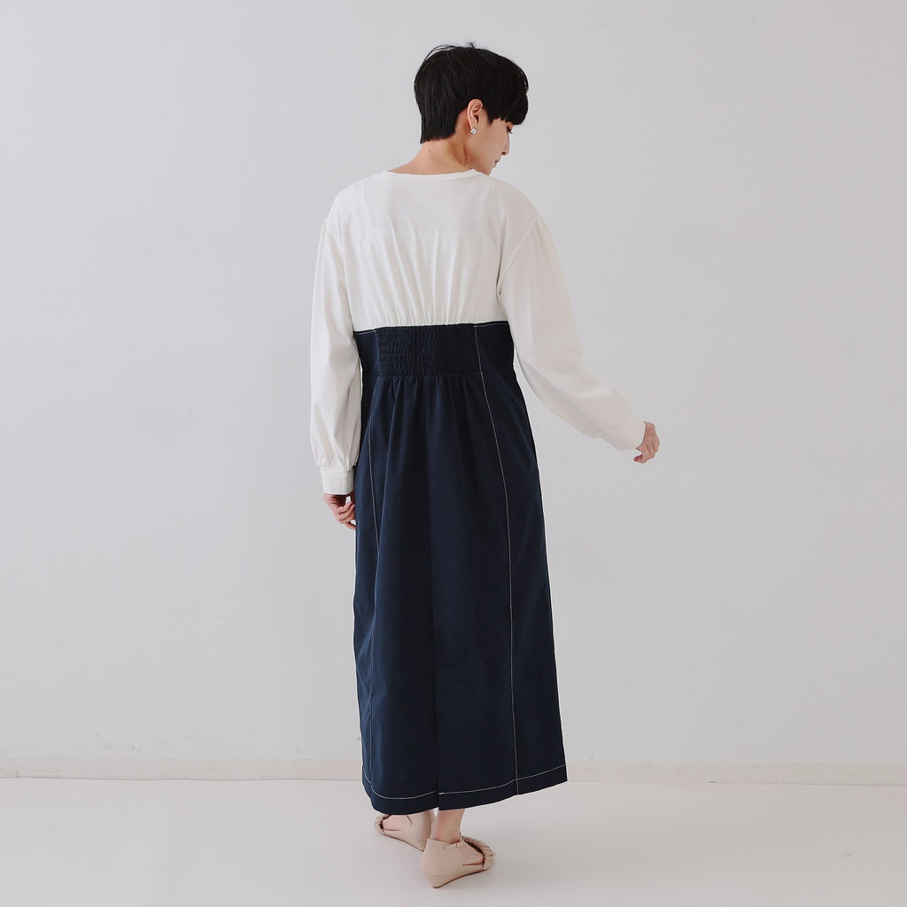 - The top part is made of cotton jersey material, while the dress part is made of polyester woven fabric.