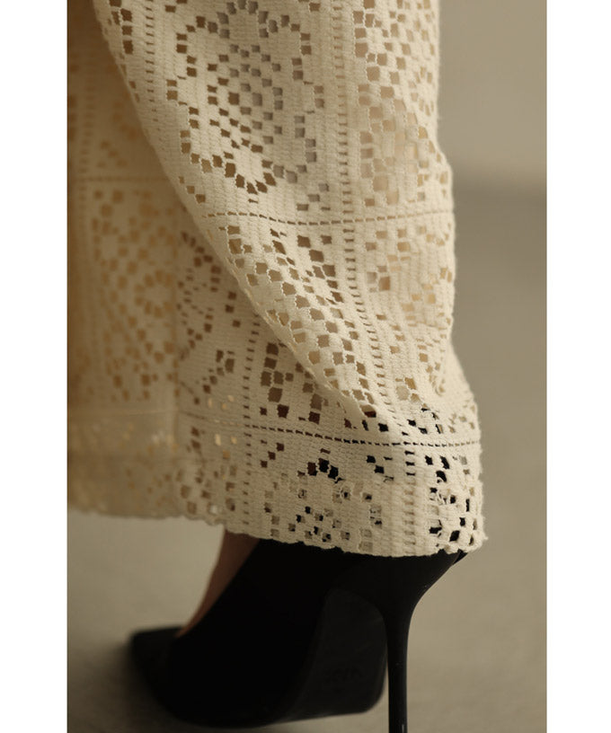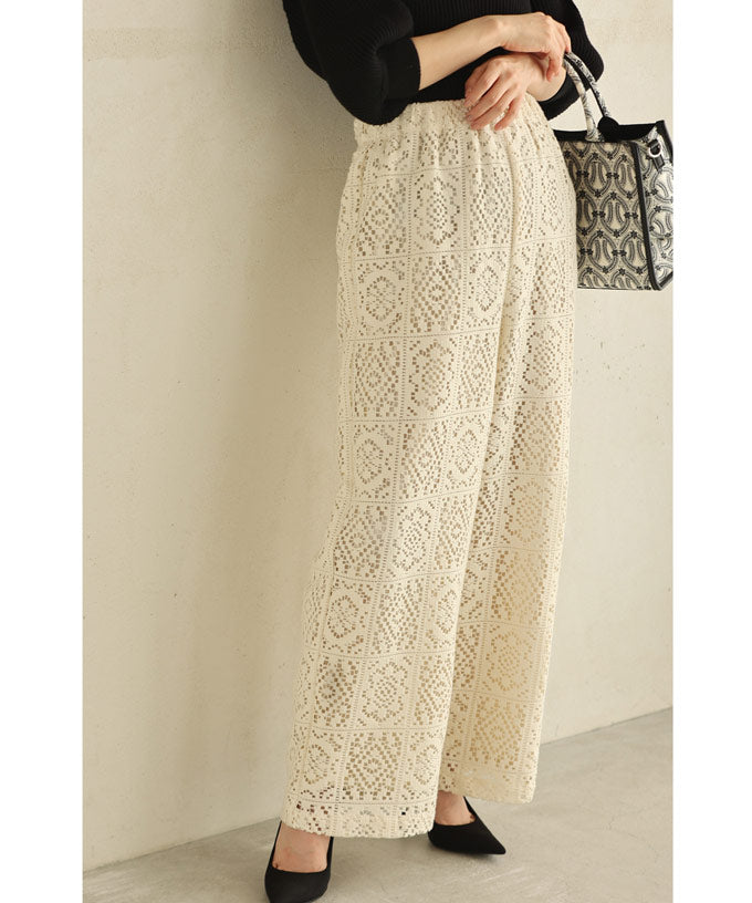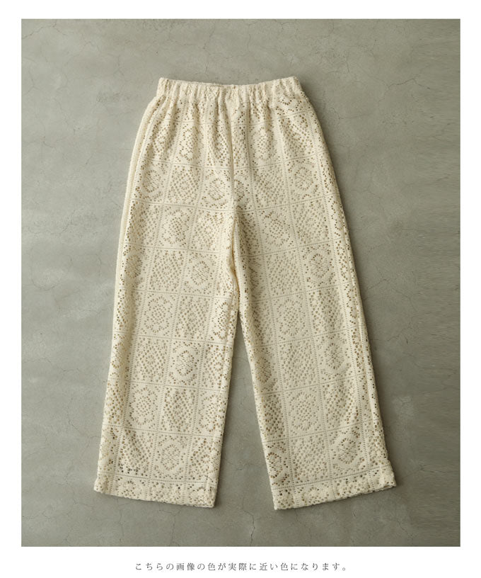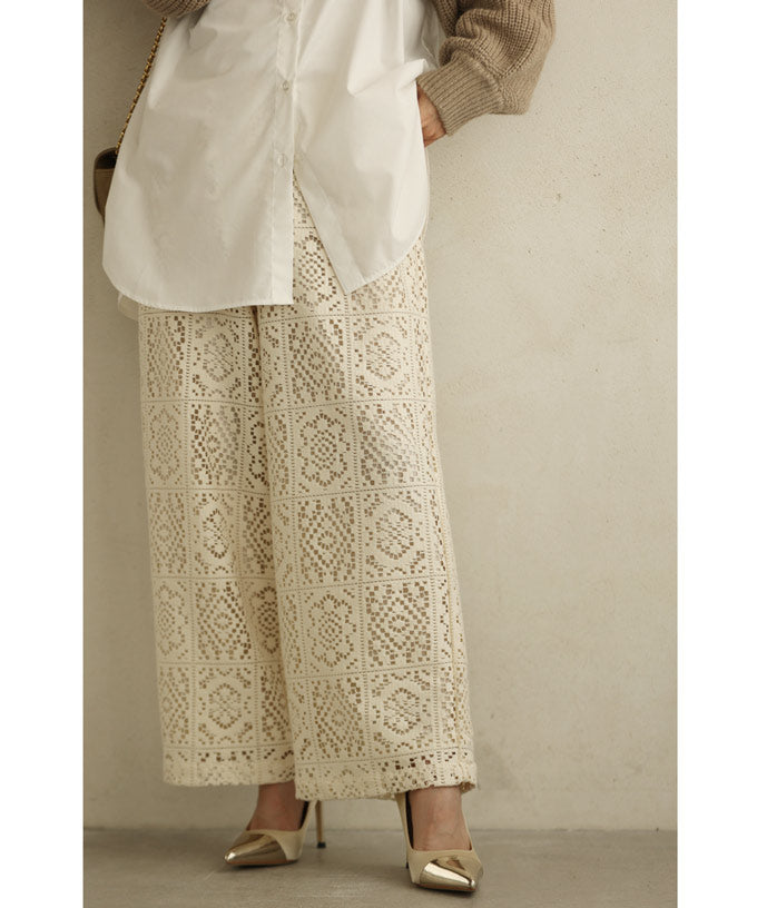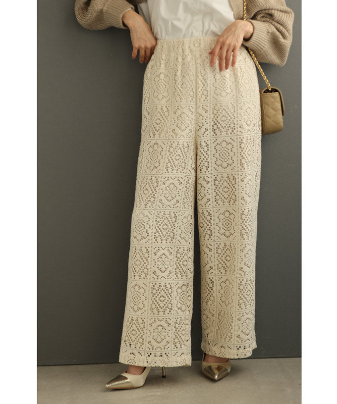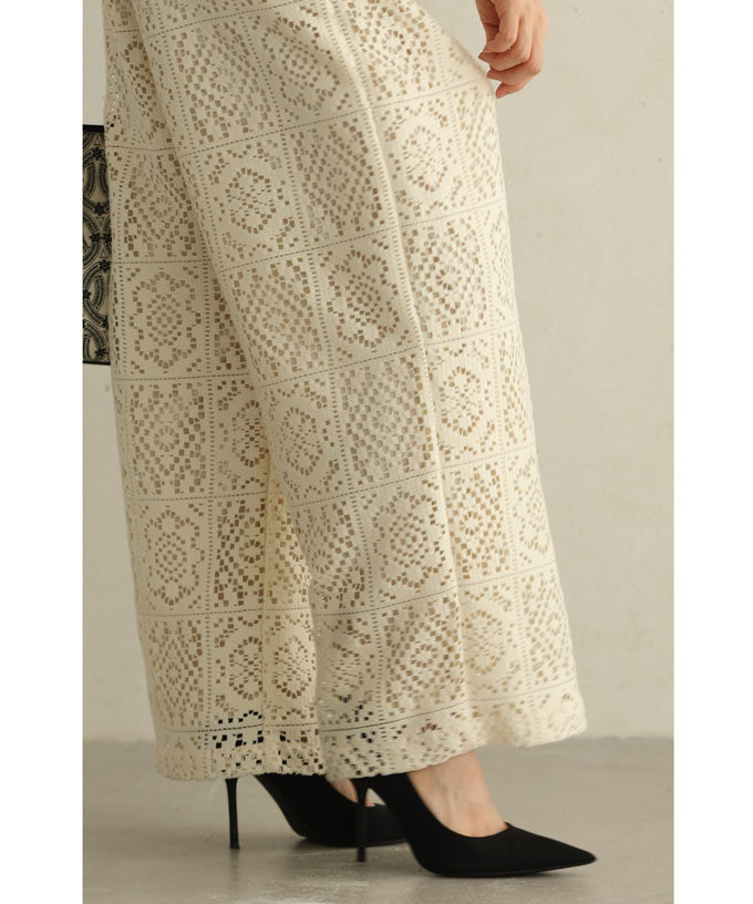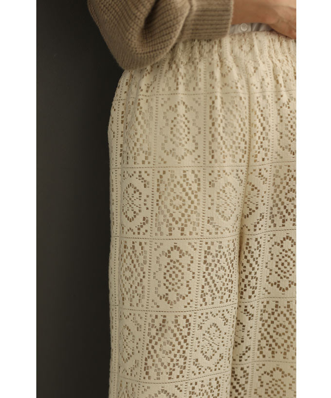 CAWAII CAWAII Majolica Tile Style Lace Wide Pants