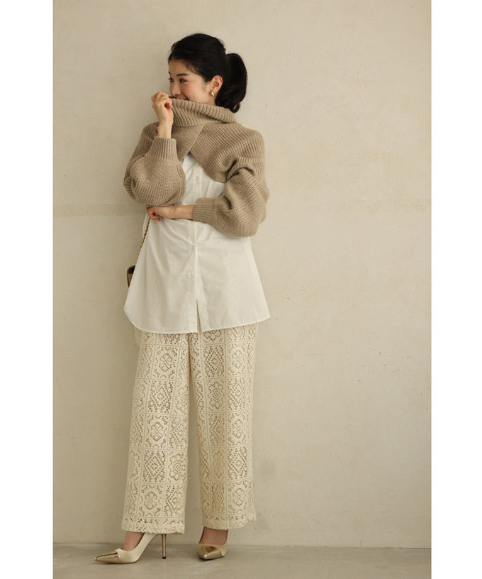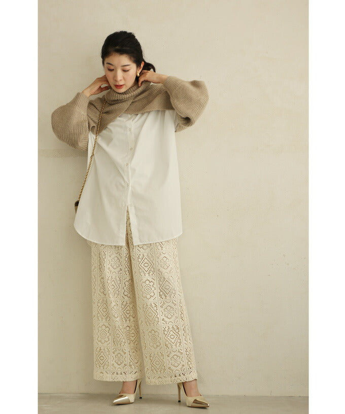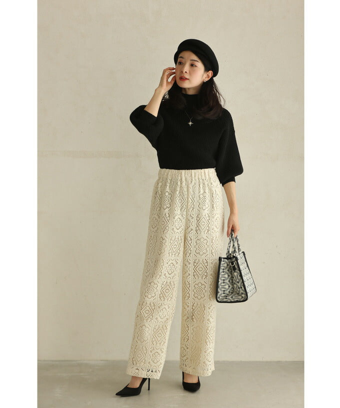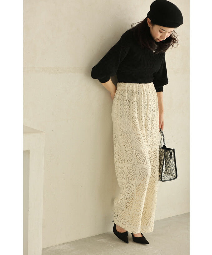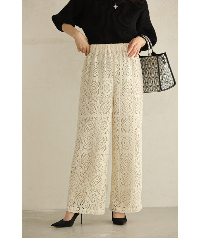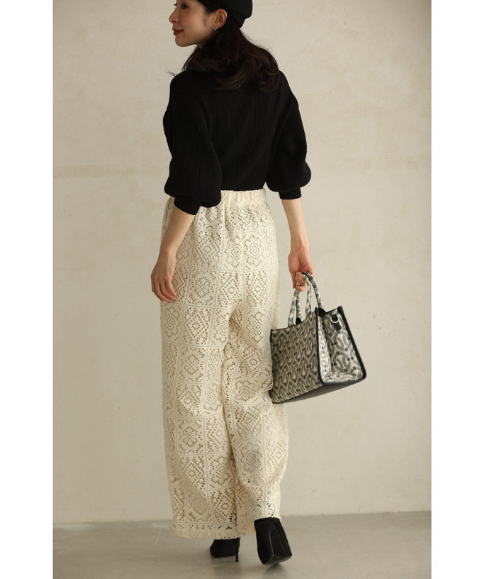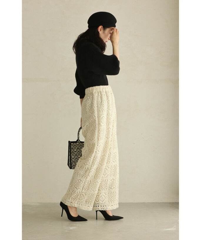 CAWAII CAWAII Majolica Tile Style Lace Wide Pants