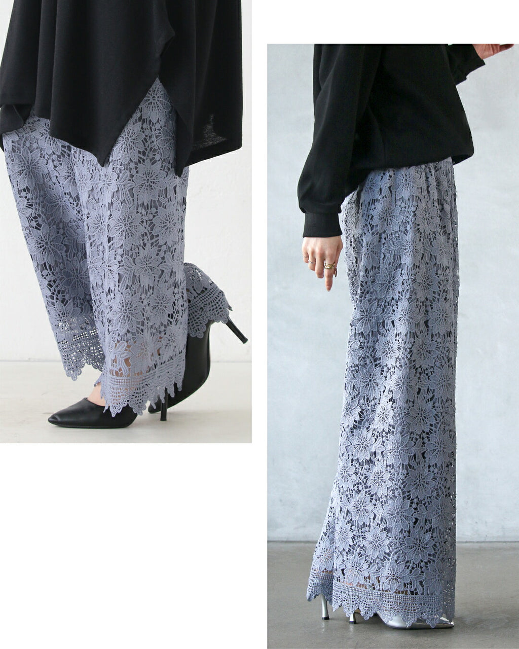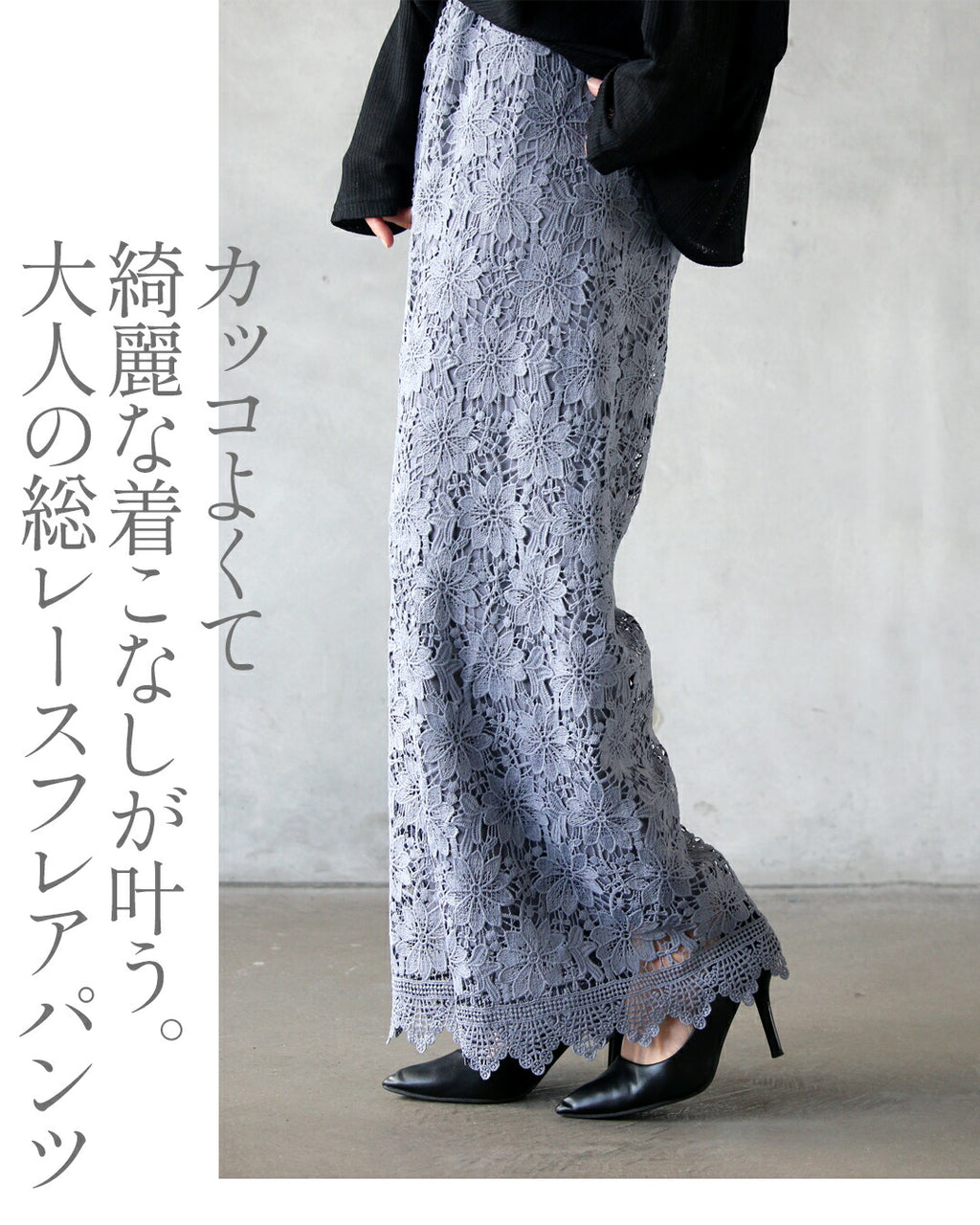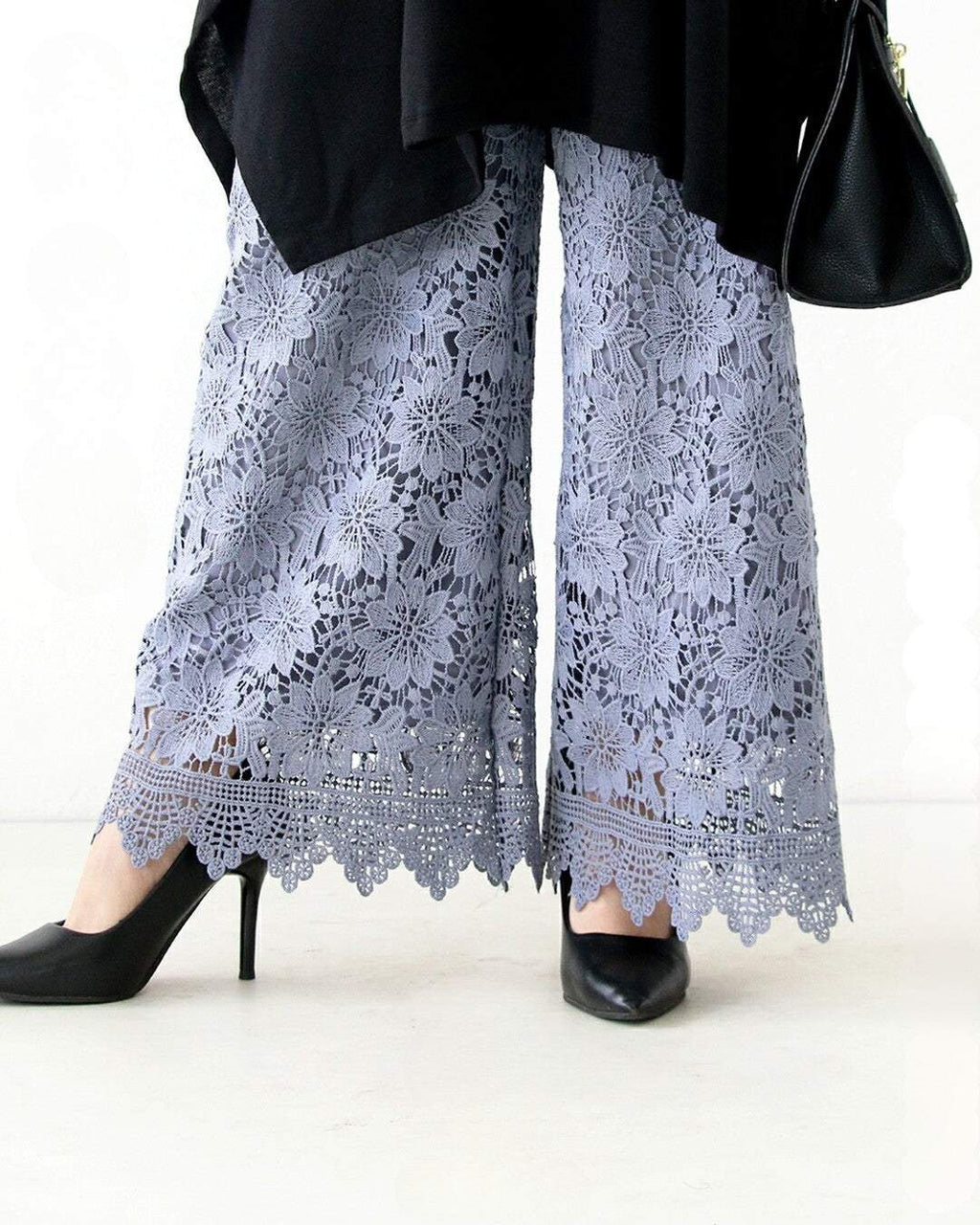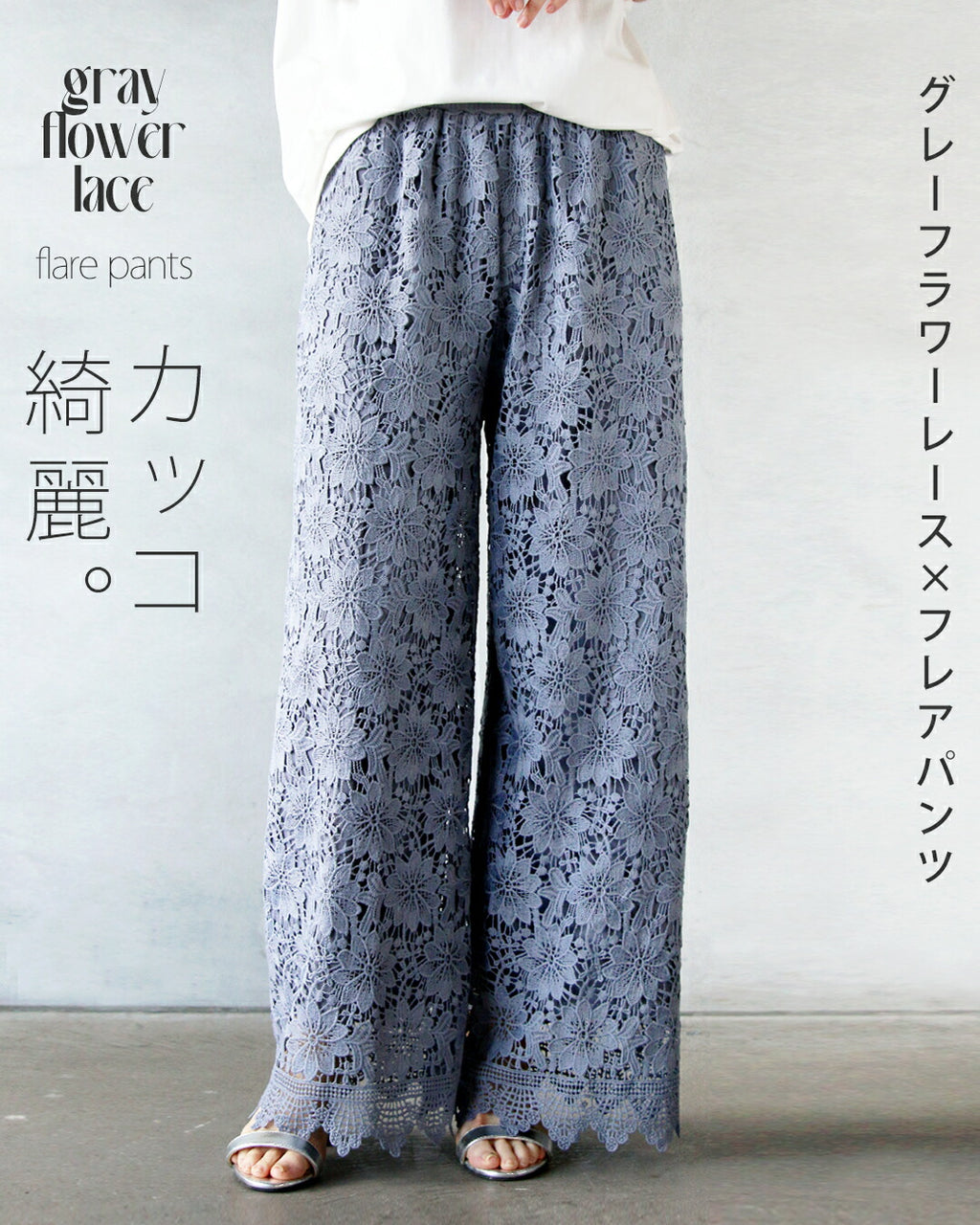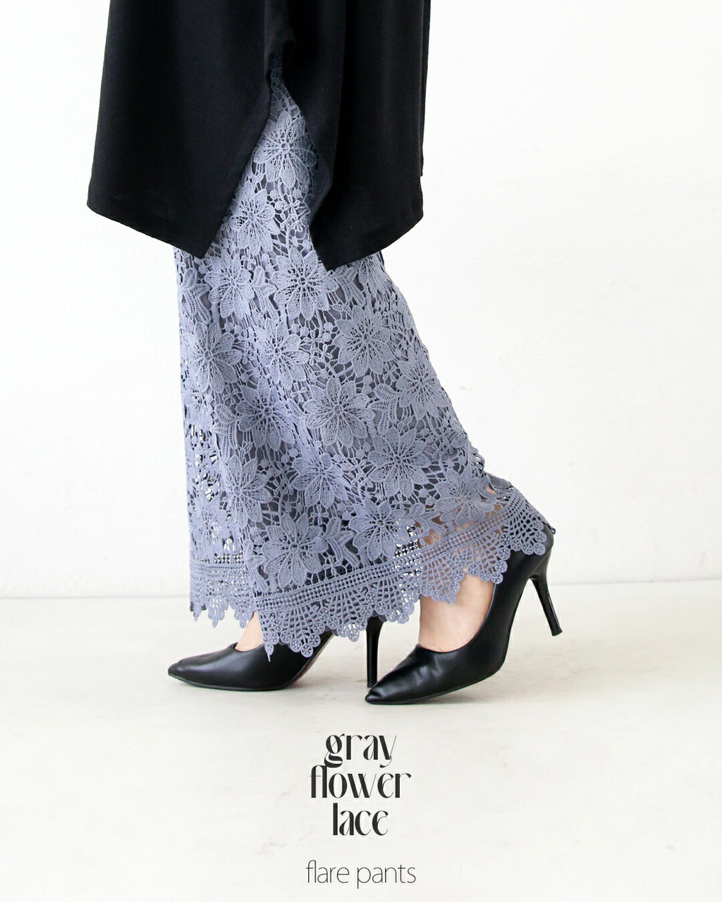 Adult OTONA Stylish Beautiful Gray Flower Lace × Flare Pants