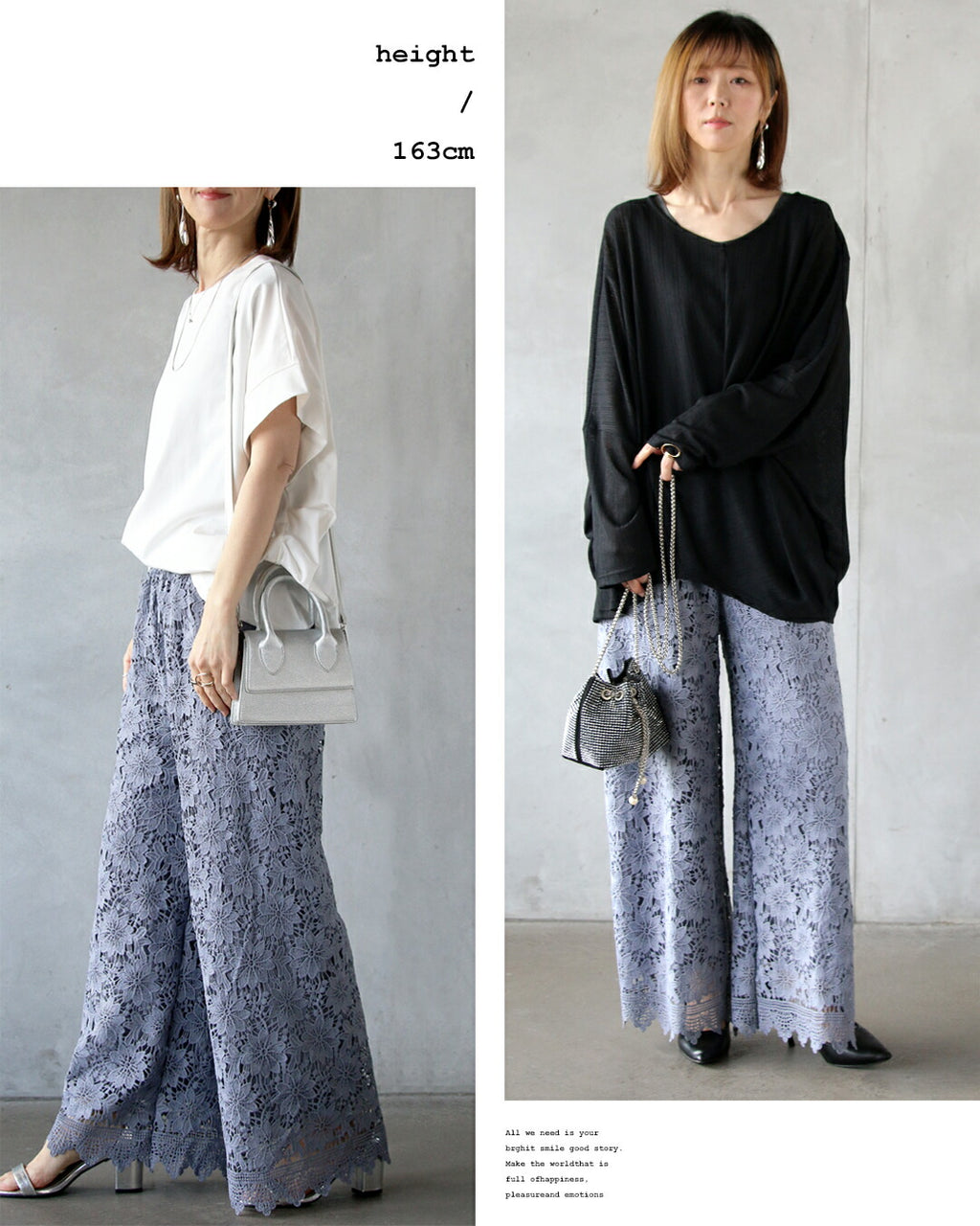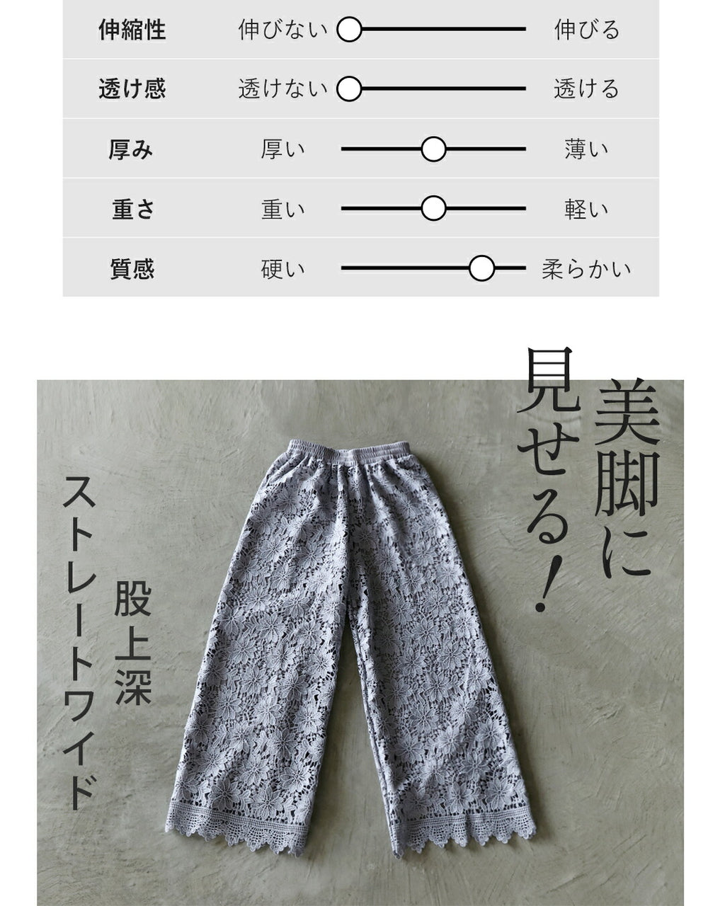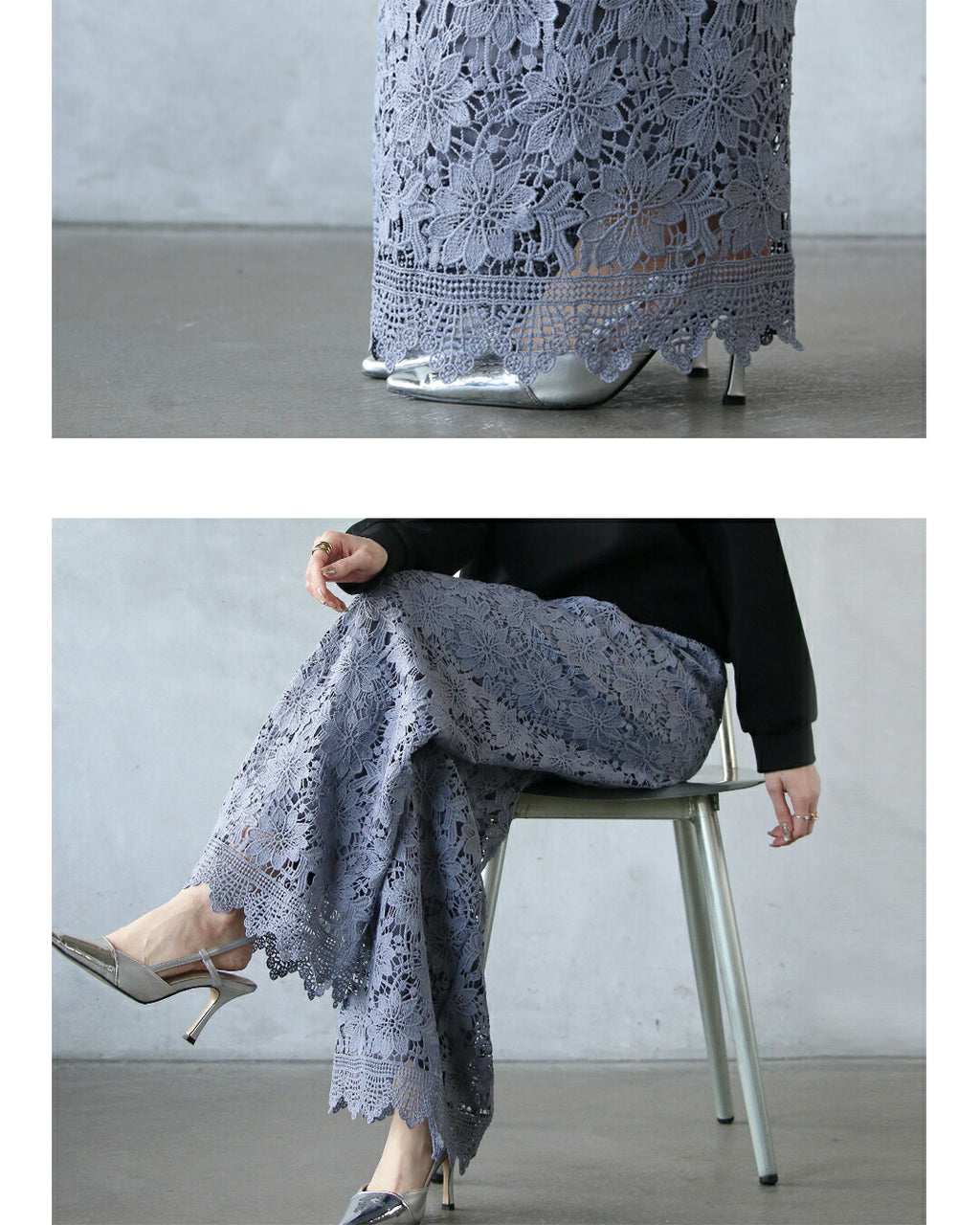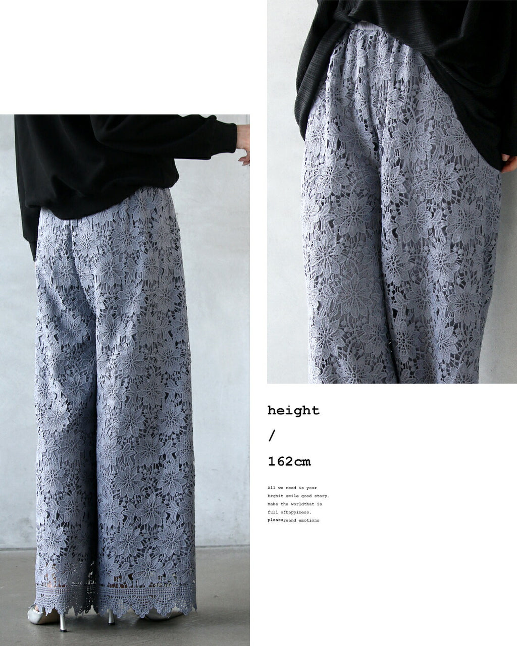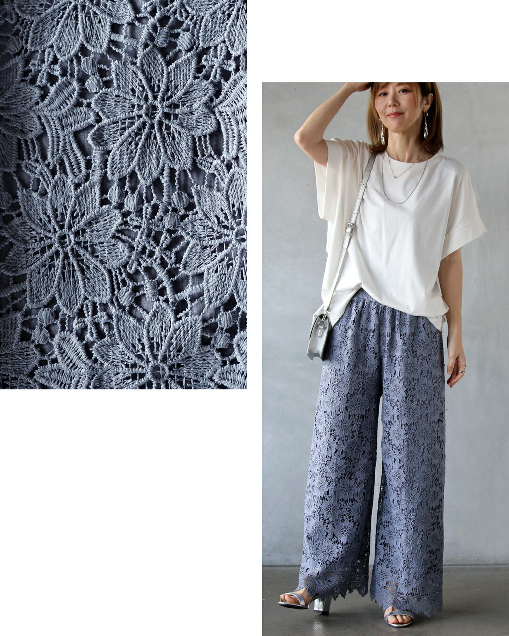 Adult OTONA Stylish Beautiful Gray Flower Lace × Flare Pants