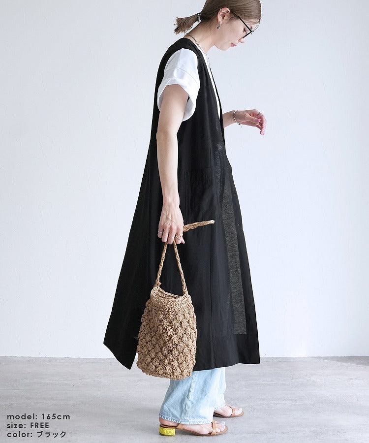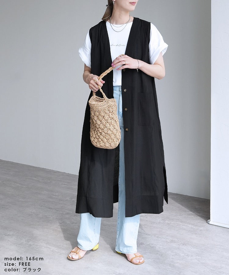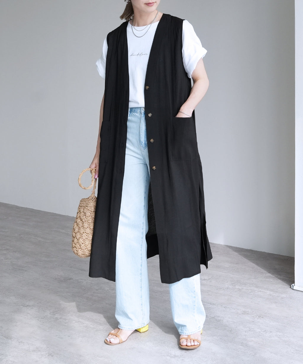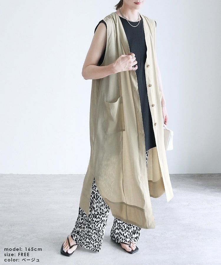 A sheer long gilet that styles effortlessly with just a light throw on♪