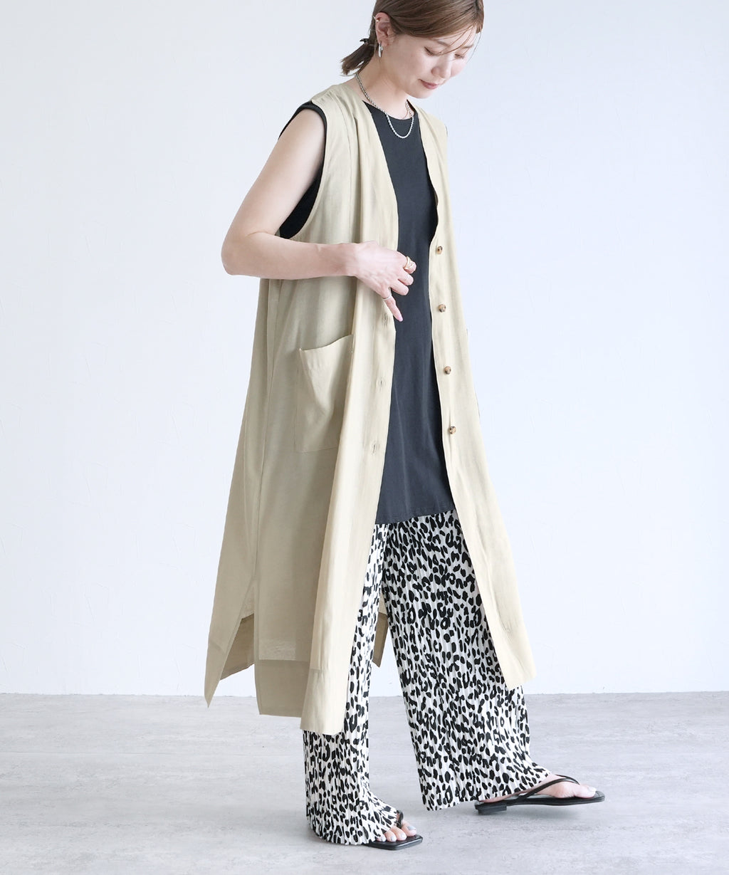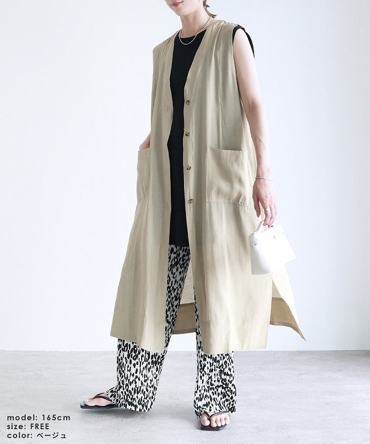 Just throw on a sheer long gilet ◎ It adds a trendy feel that's in this year!