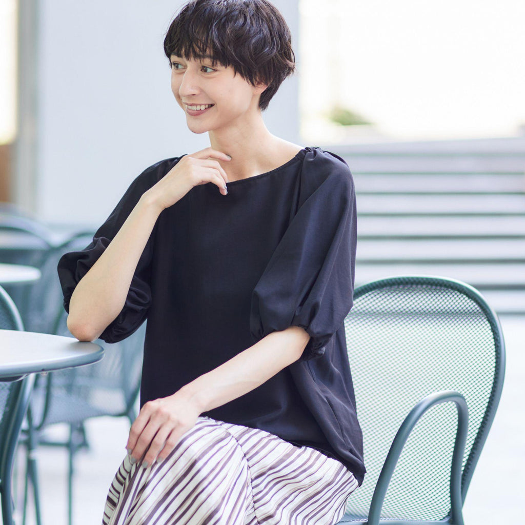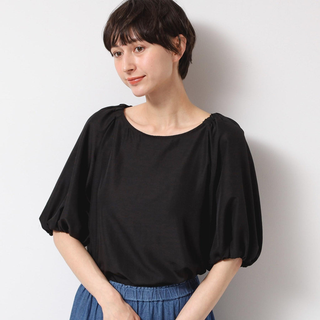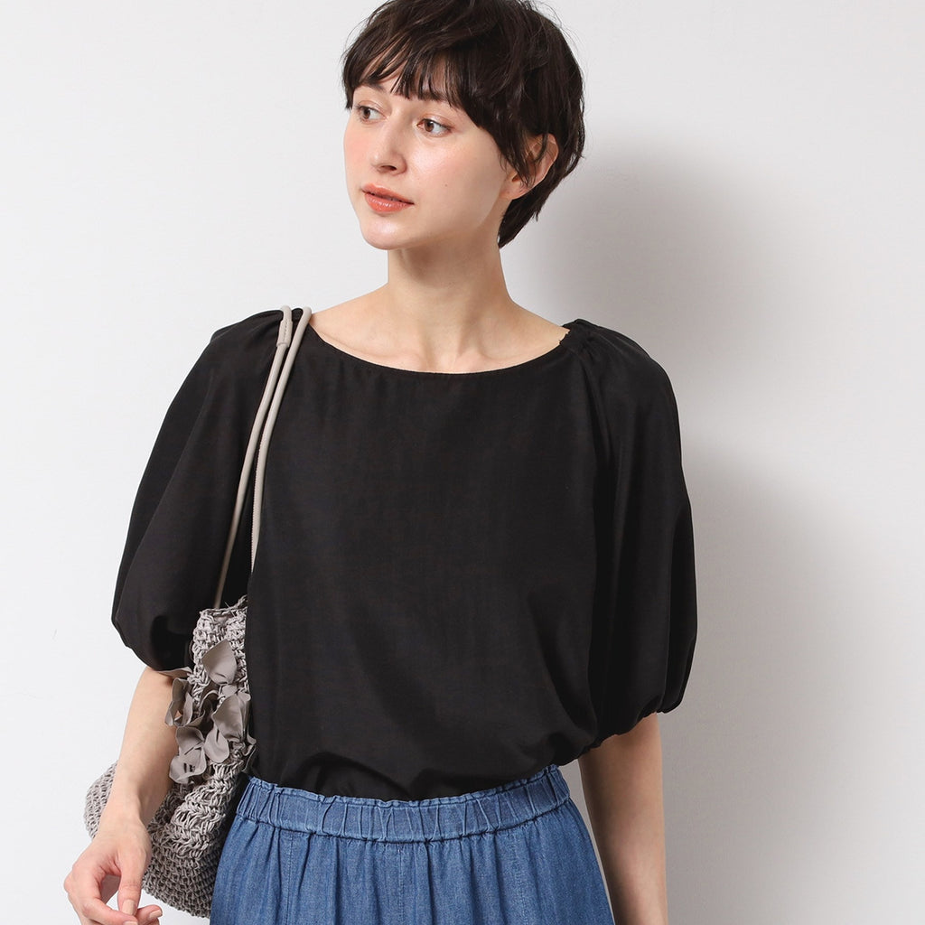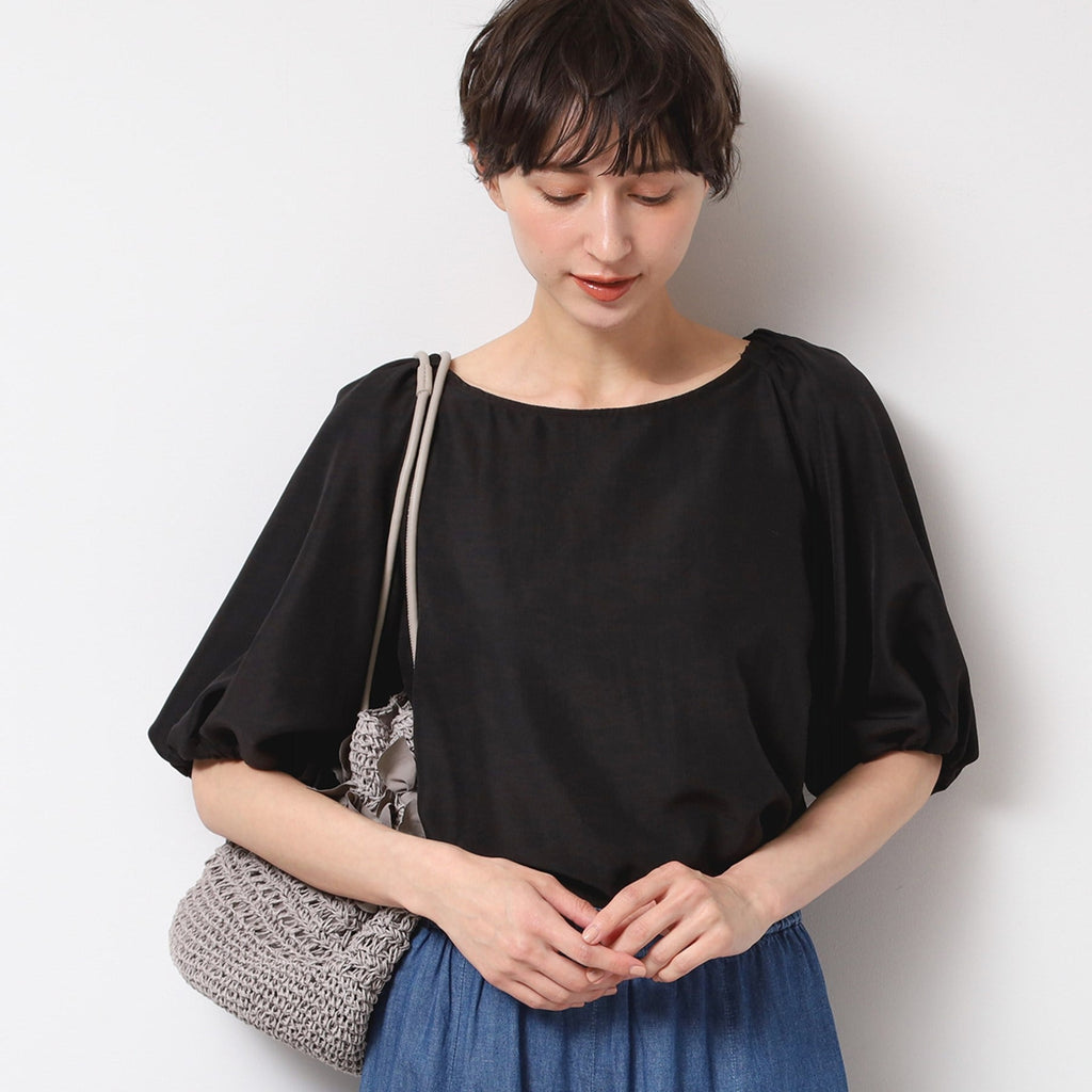 Dessin Dessin 【Washable】 Boat Neck Five-Quarter Sleeve Volume Blouse