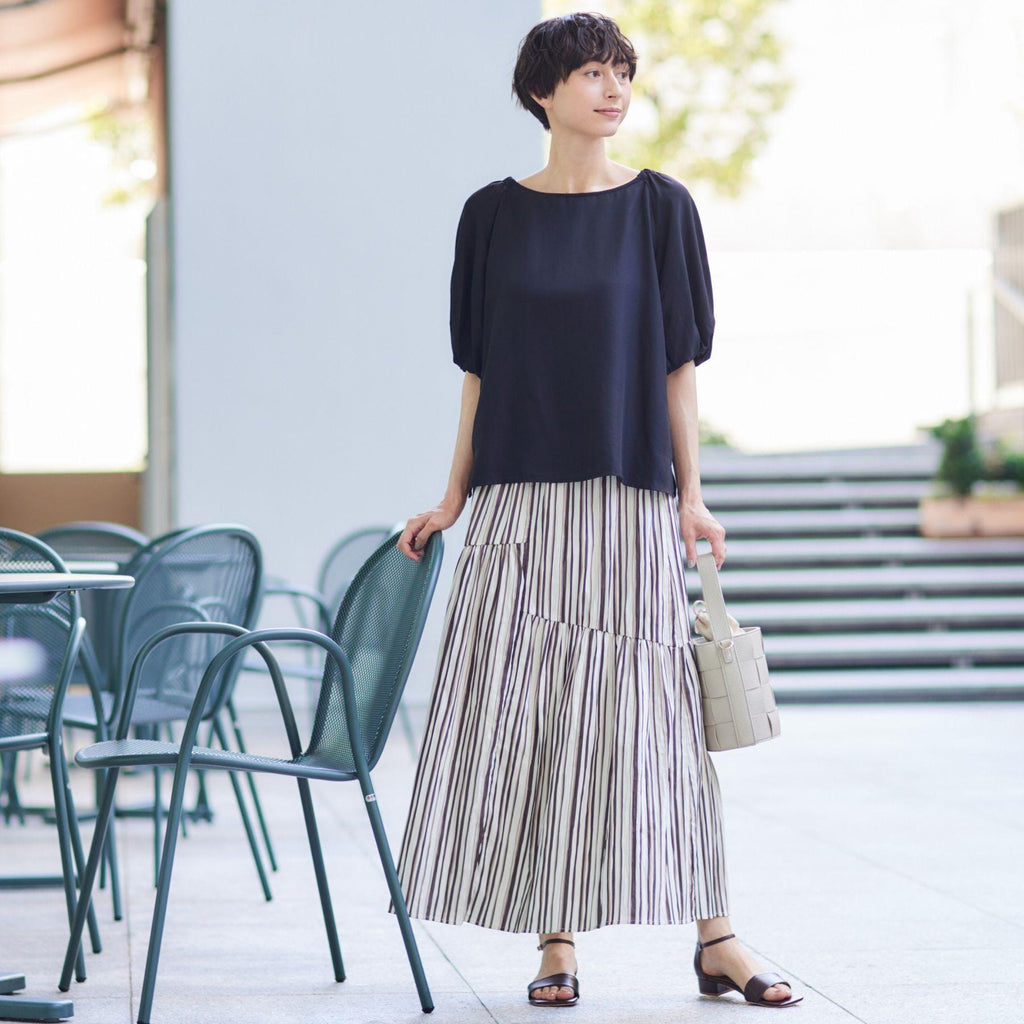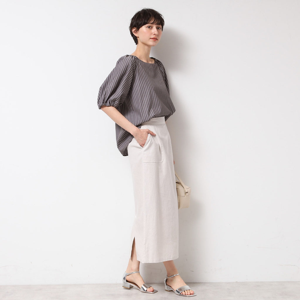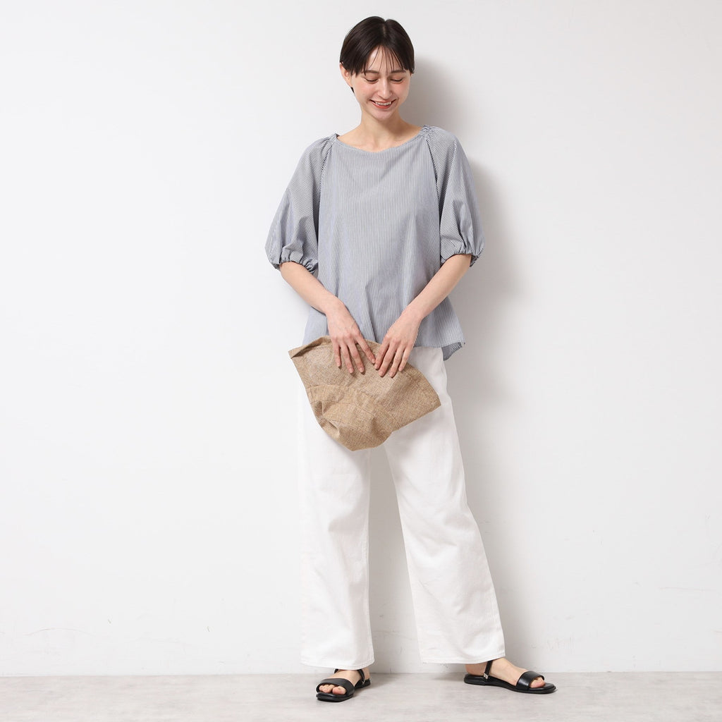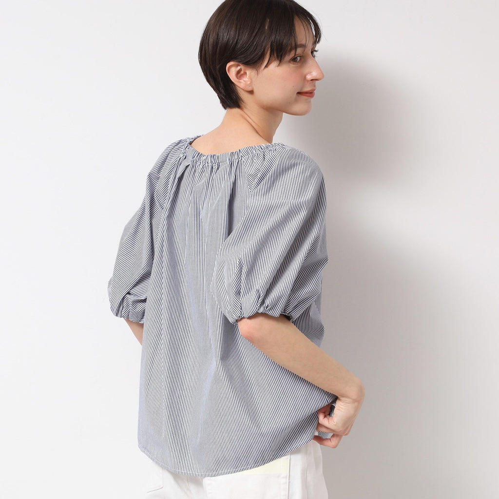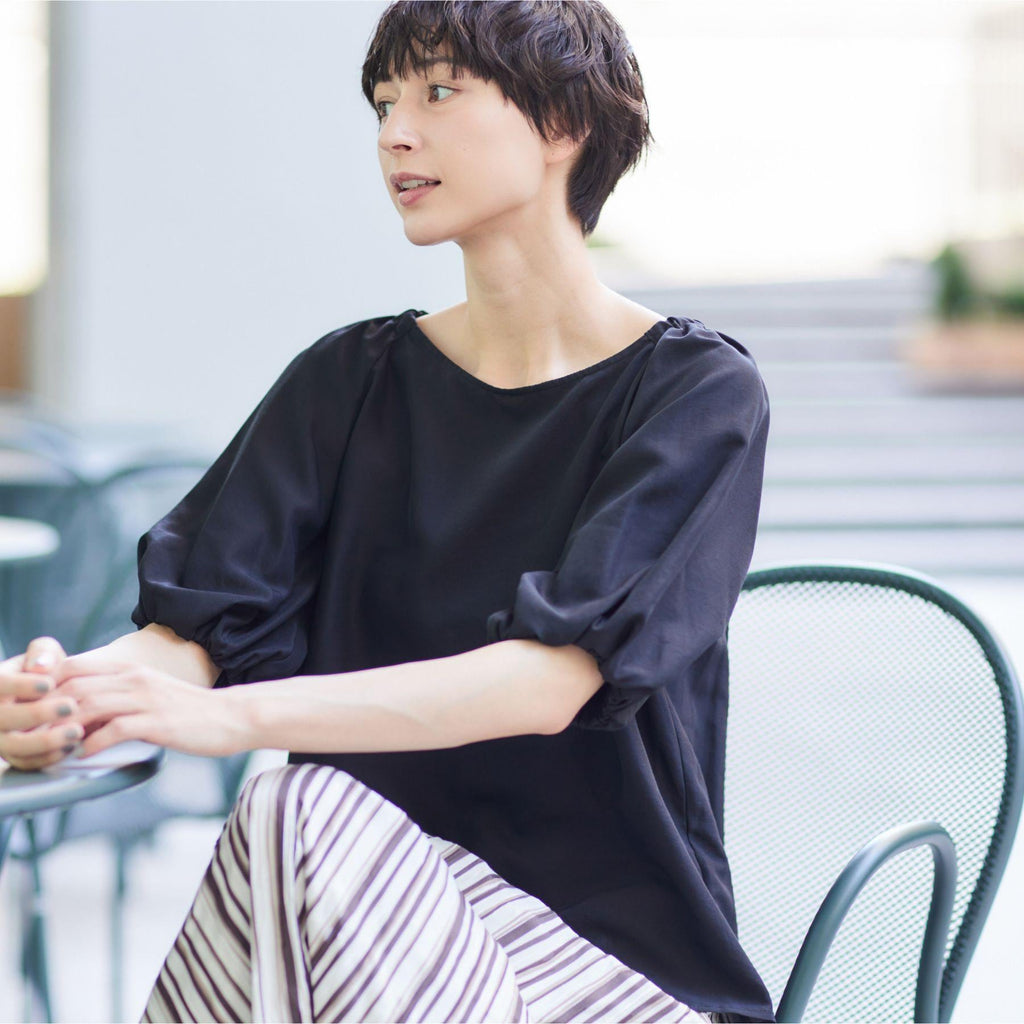 Dessin Dessin 【Washable】 Boat Neck Five-Quarter Sleeve Volume Blouse