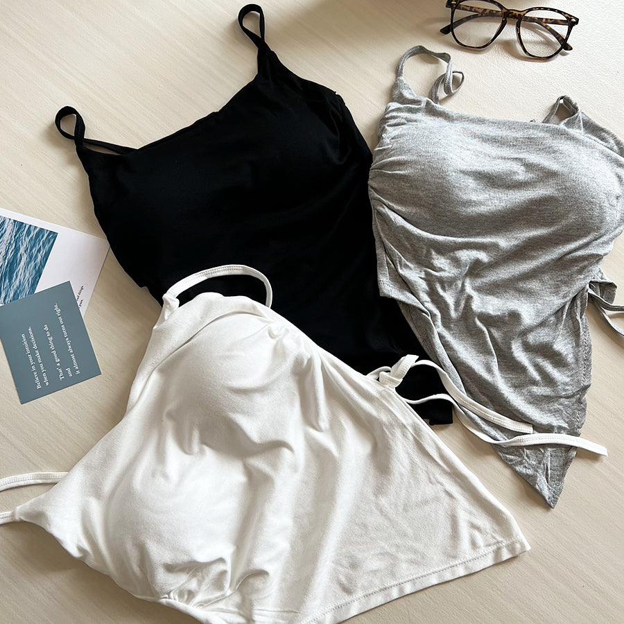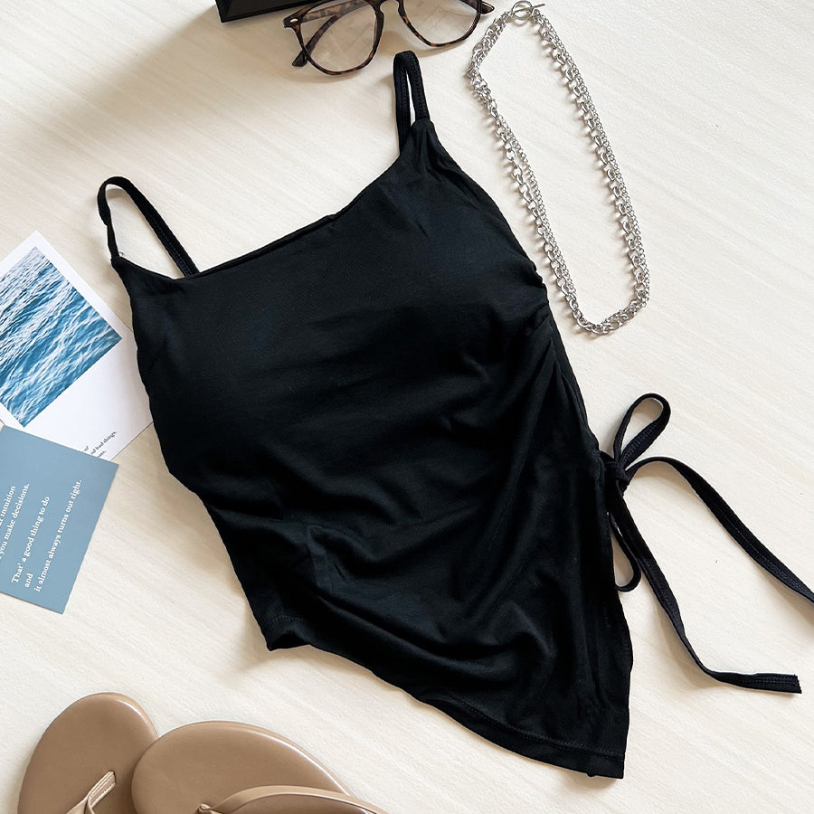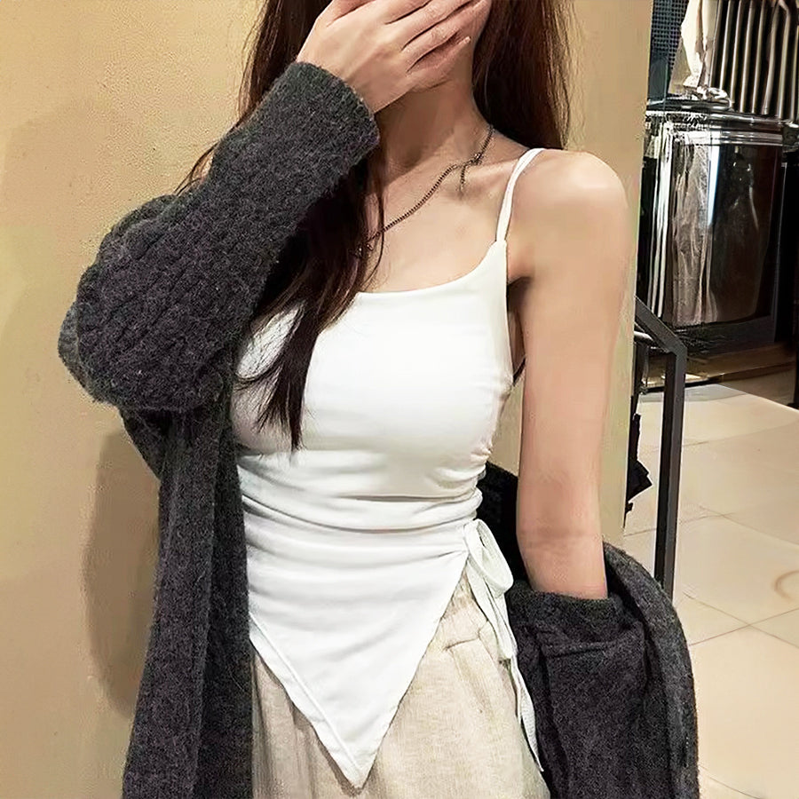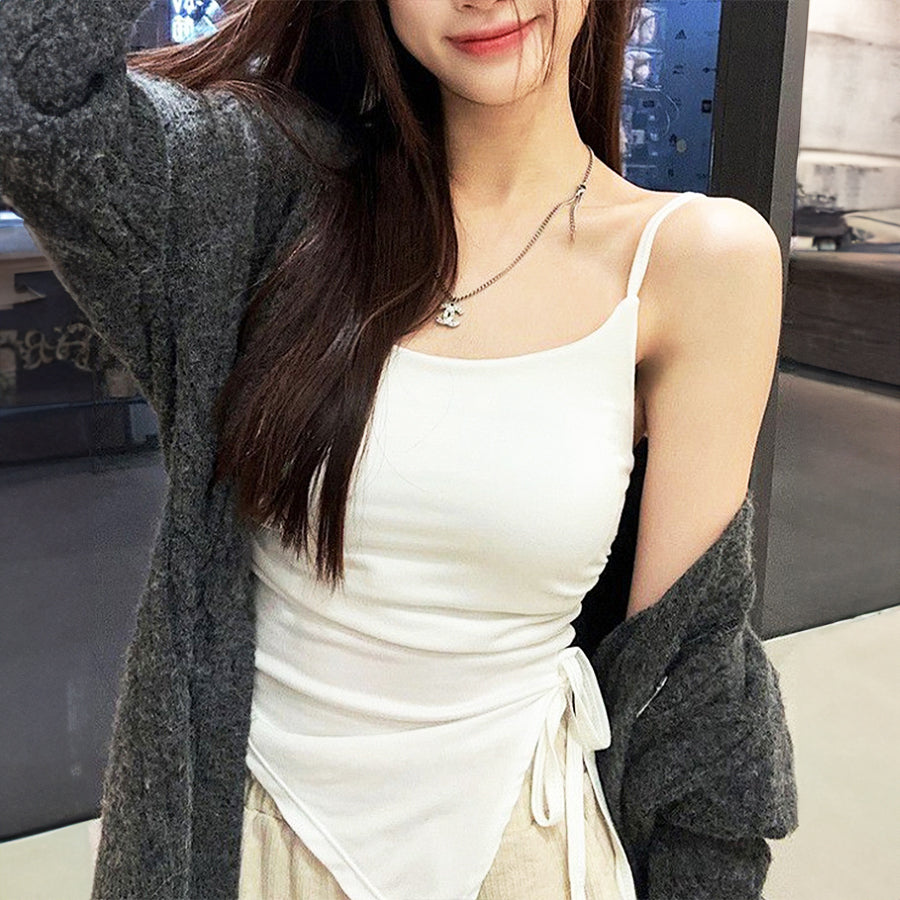 Cupped camisole asymmetrical solid adult casual Korean Korean fashion