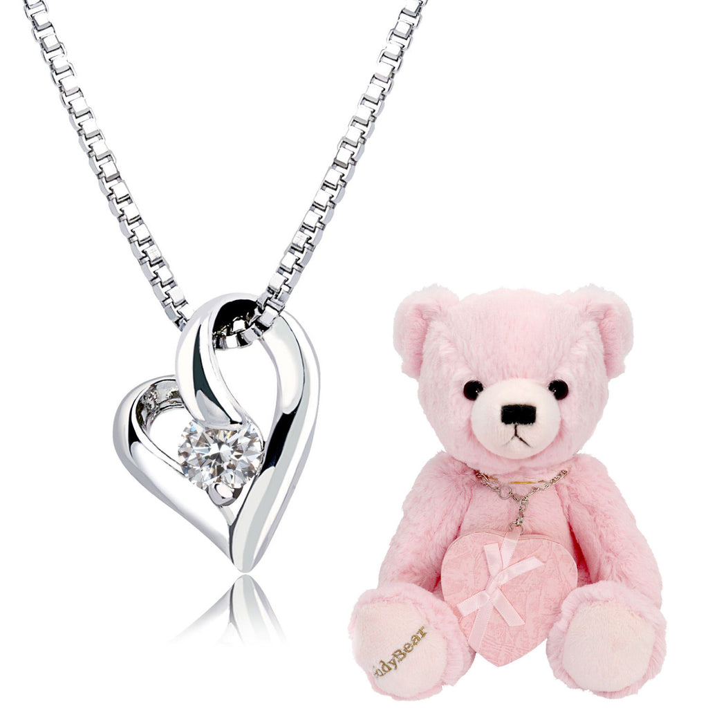 Actual size Size: Heart approximately 11mm×7mm, Cubic Zirconia approximately 3mm, Venetian chain (0.8mm), Length 40cm (+ 5cm adjuster), Teddy bear approximately 180mm×140mm, Notes: Included items: Teddy bear, dedicated gift bag, heart-shaped jewelry box