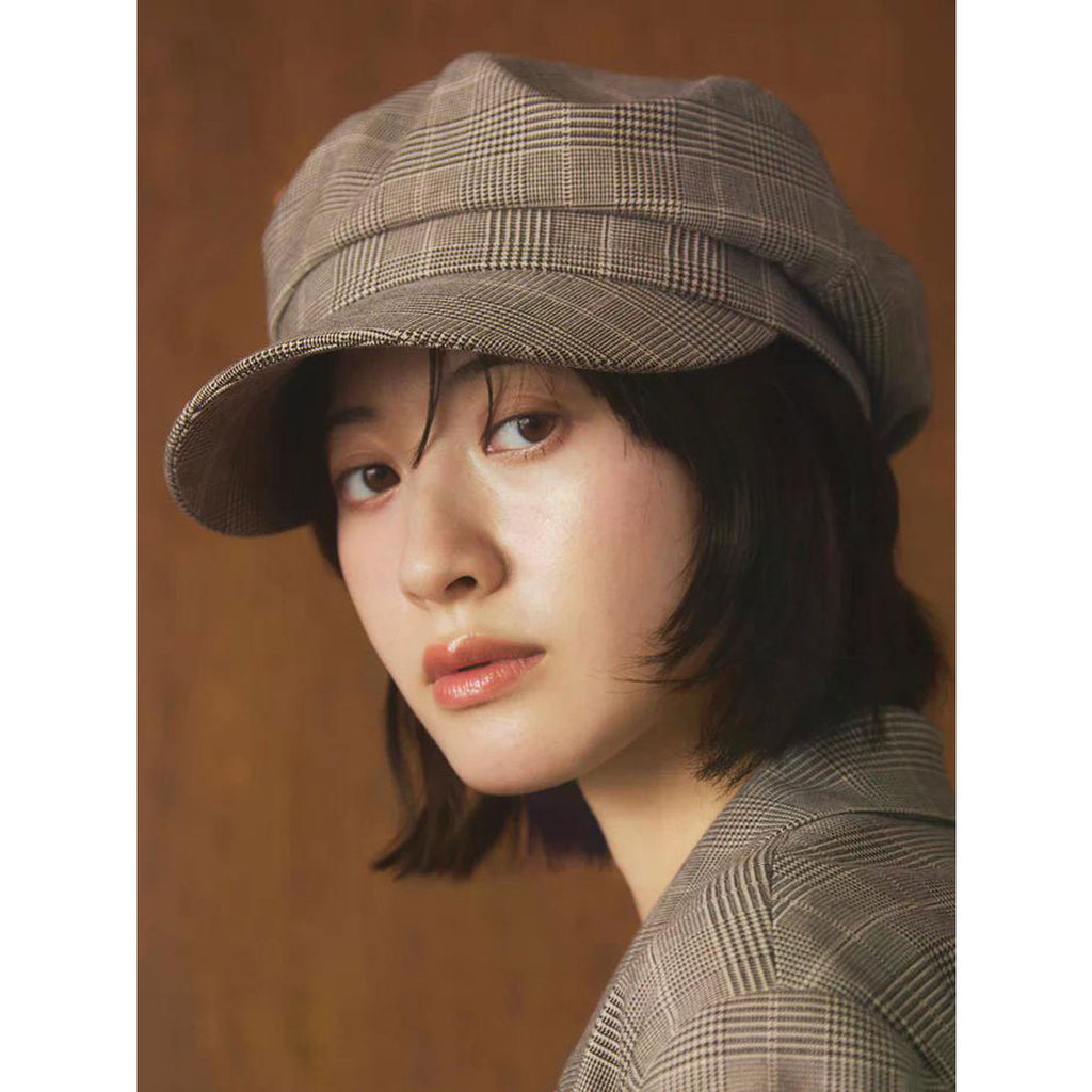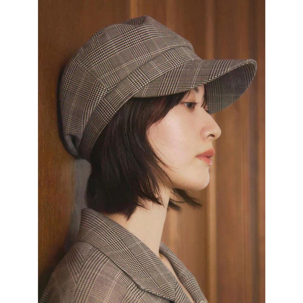 A classic Glen check cap that catches the eye, serving as an accent in styling. Its rounded silhouette creates a traditional atmosphere just by wearing it. It is a highly versatile item that blends well with casual and elegant outfits.