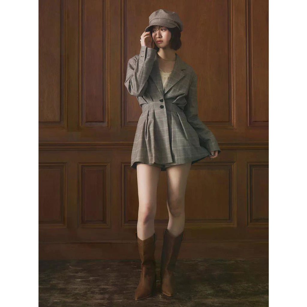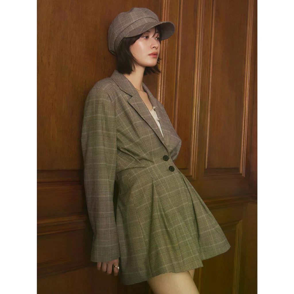 Using a Glen check fabric with a refined gloss and firm firmness, it adds a seasonal touch for autumn and winter while creating a presence that sharply enhances your coordination.