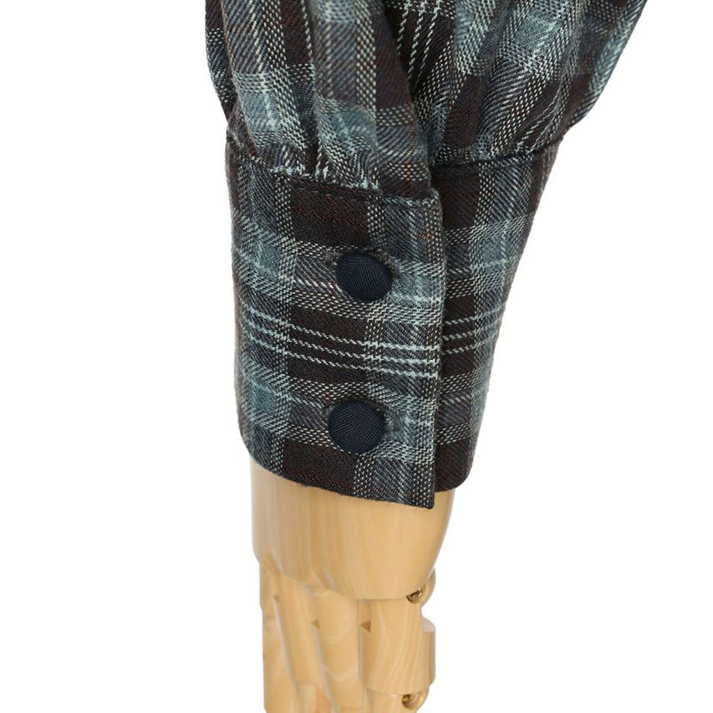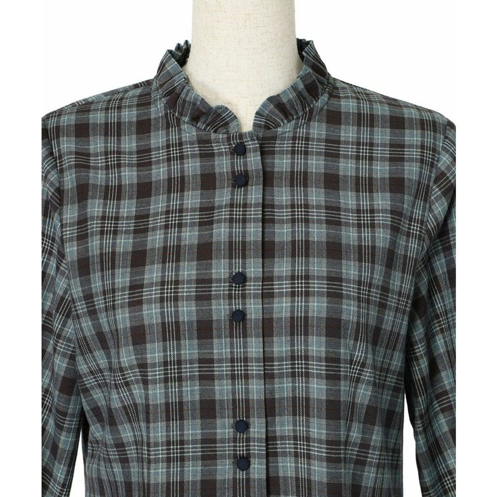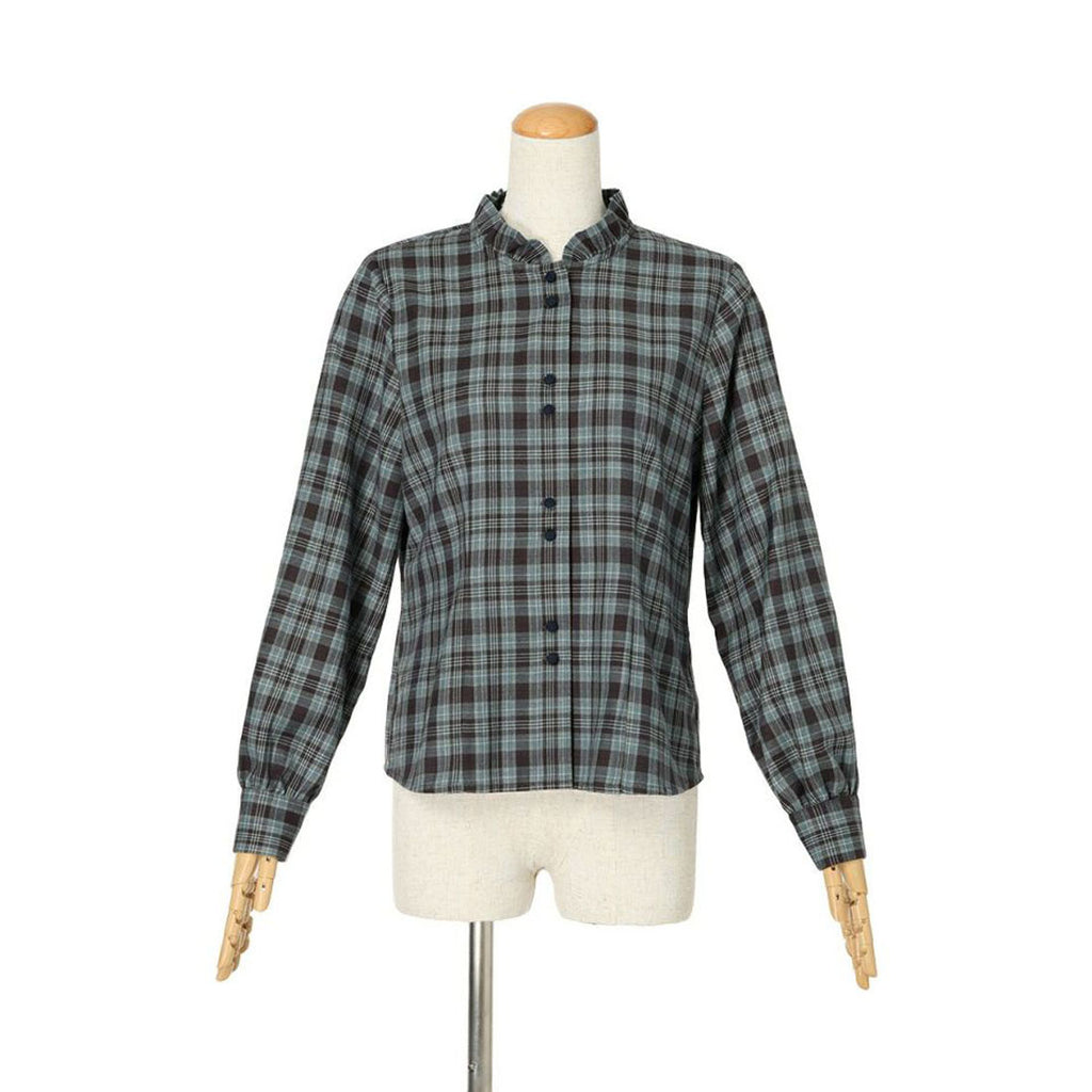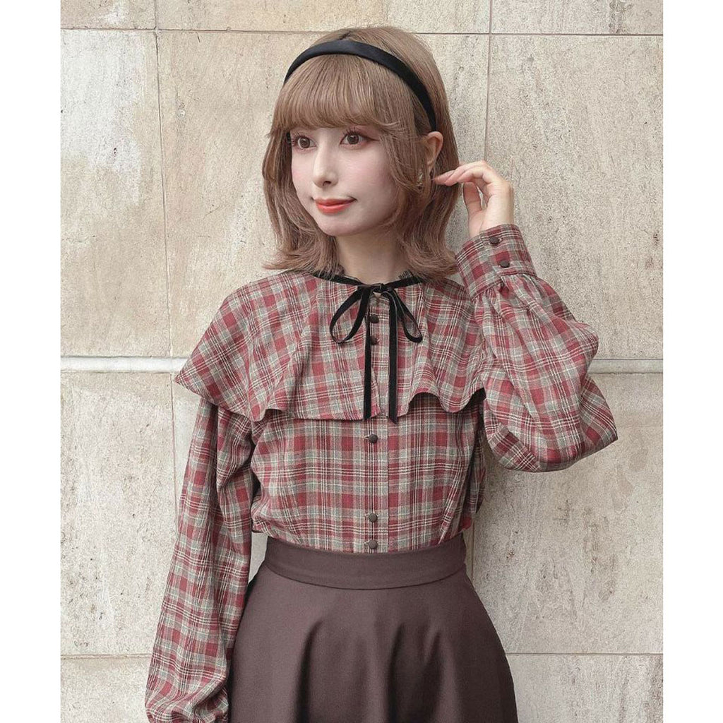 A cape-attached blouse with a vintage check fabric that creates an elegant look.