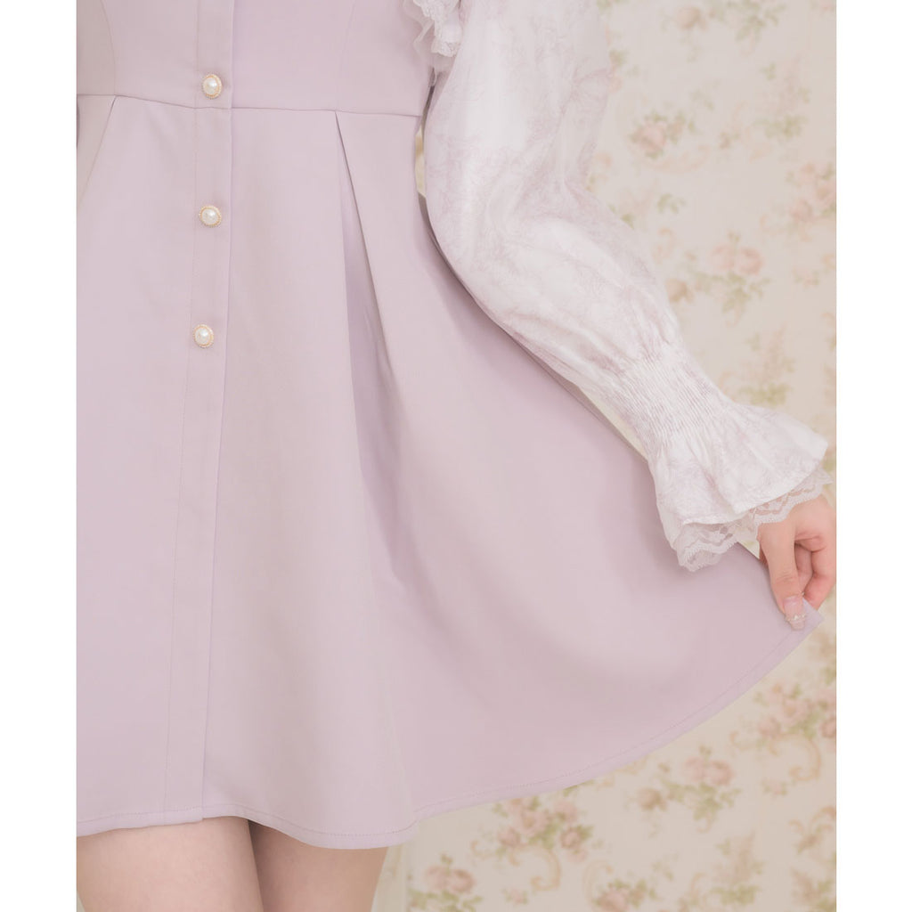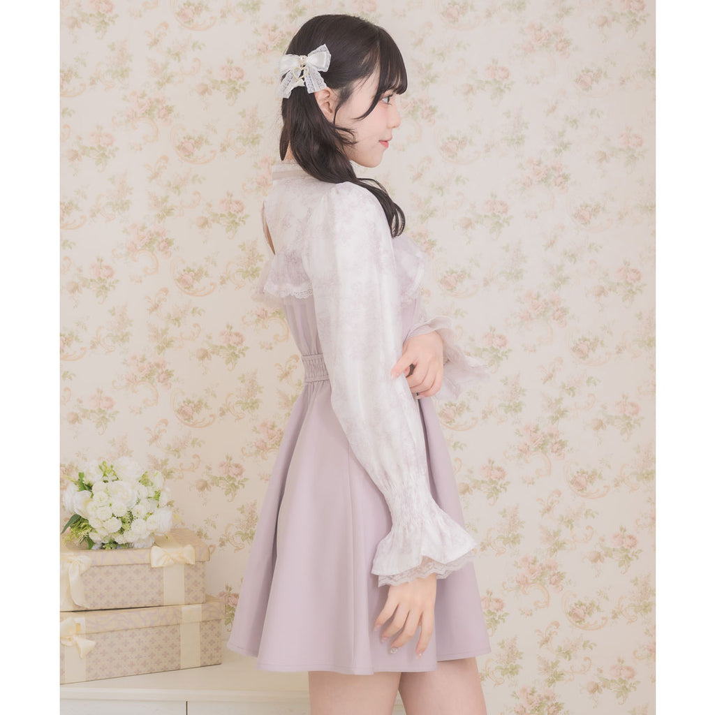 Material 素材:表地:ポリエステル95% ポリウレタン5% 別地:ポリエステル100% チュール:ポリエステル100% レーステープ:ポリエステル100% 裏地:ポリエステル100%