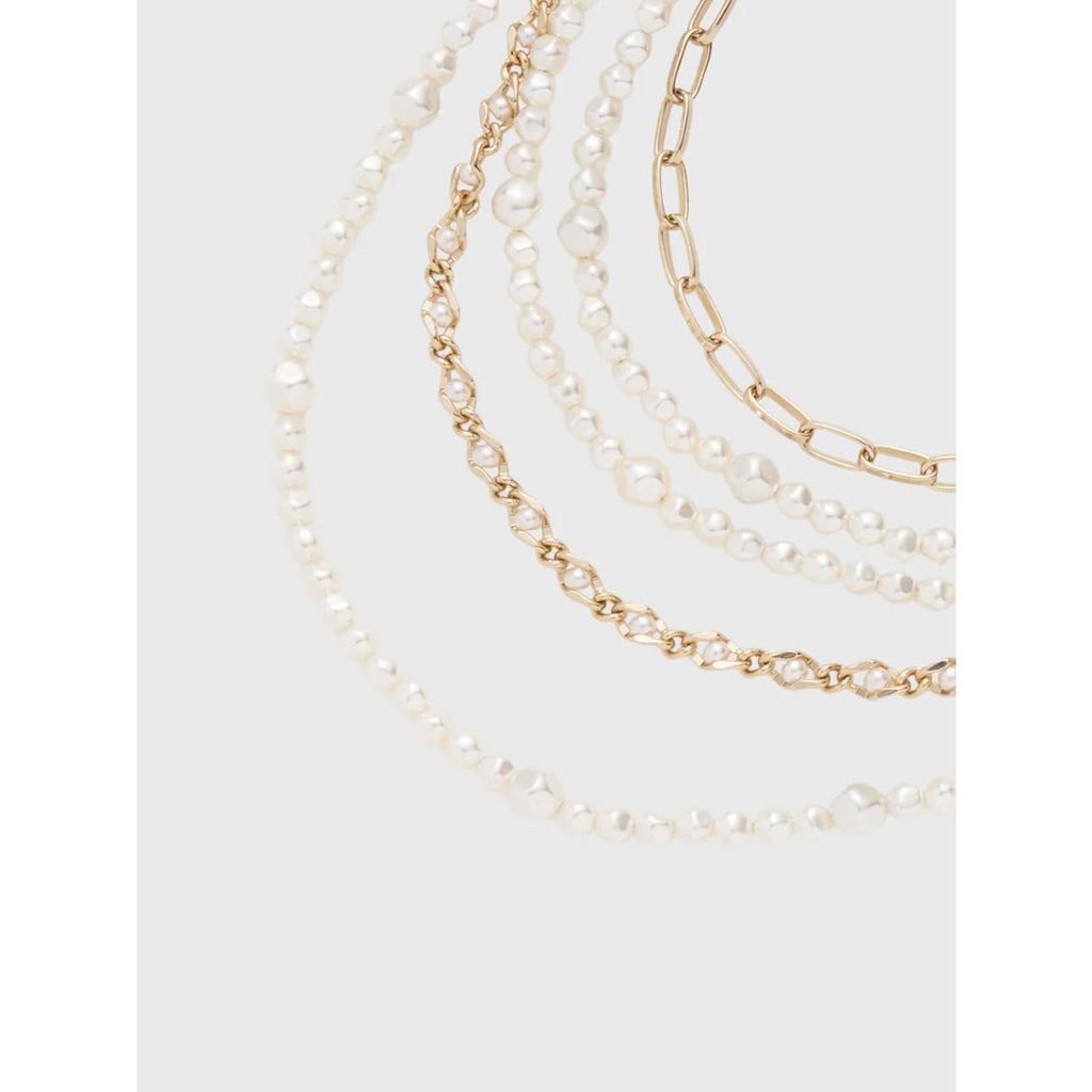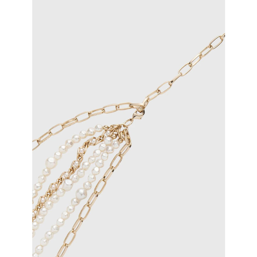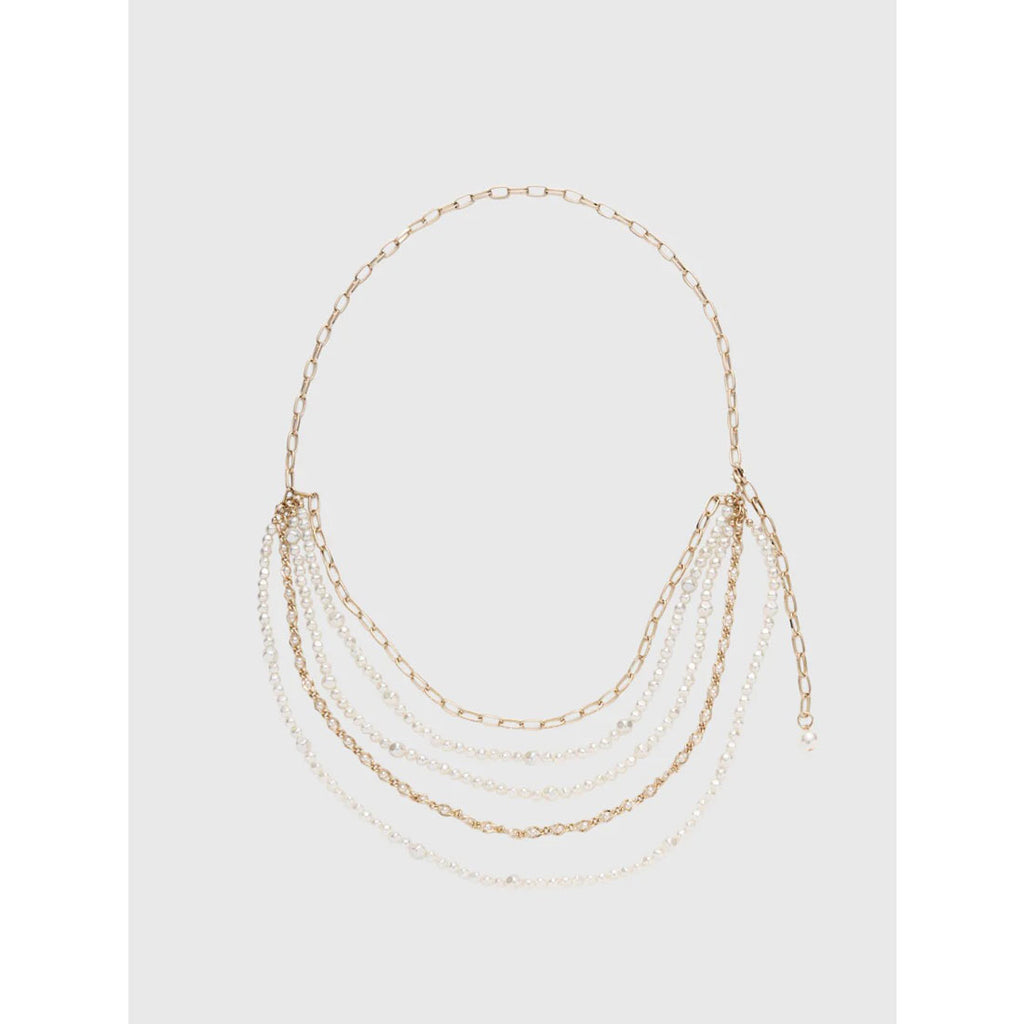 A combination of glossy metal chain and elegant pearls. Light and easy to wear, comfortable for long hours. Made with luxurious materials, making it a versatile item that can be incorporated into any season.