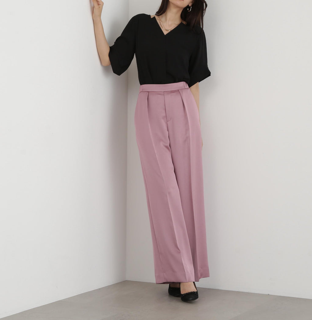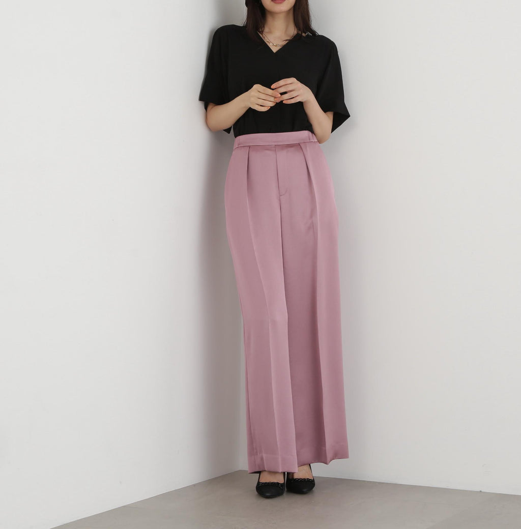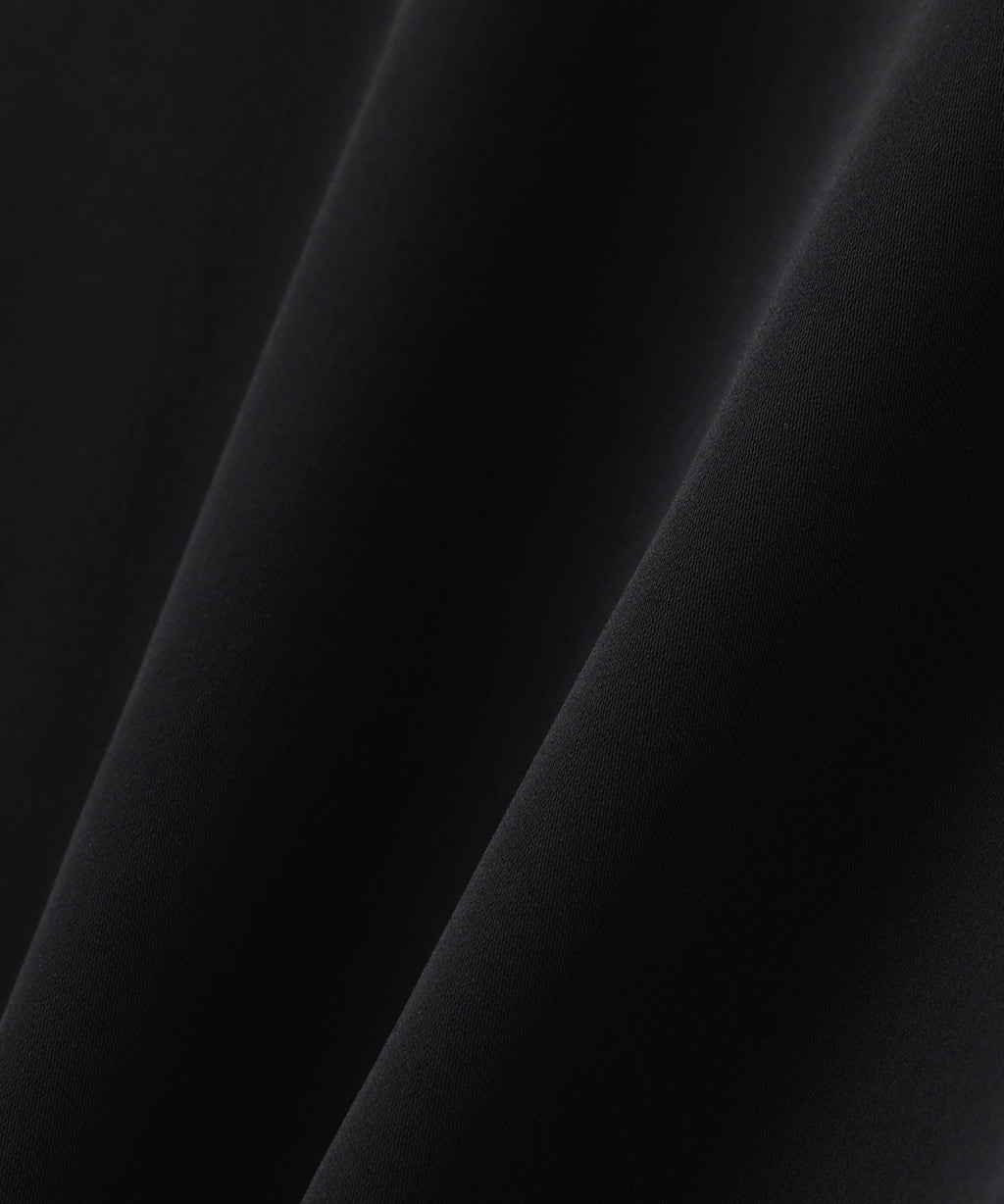 Moderately textured matte-faced satin. It has slight stretch and is resistant to wrinkles, making it a highly versatile material. The light colors are also less see-through, so you can wear it with confidence.