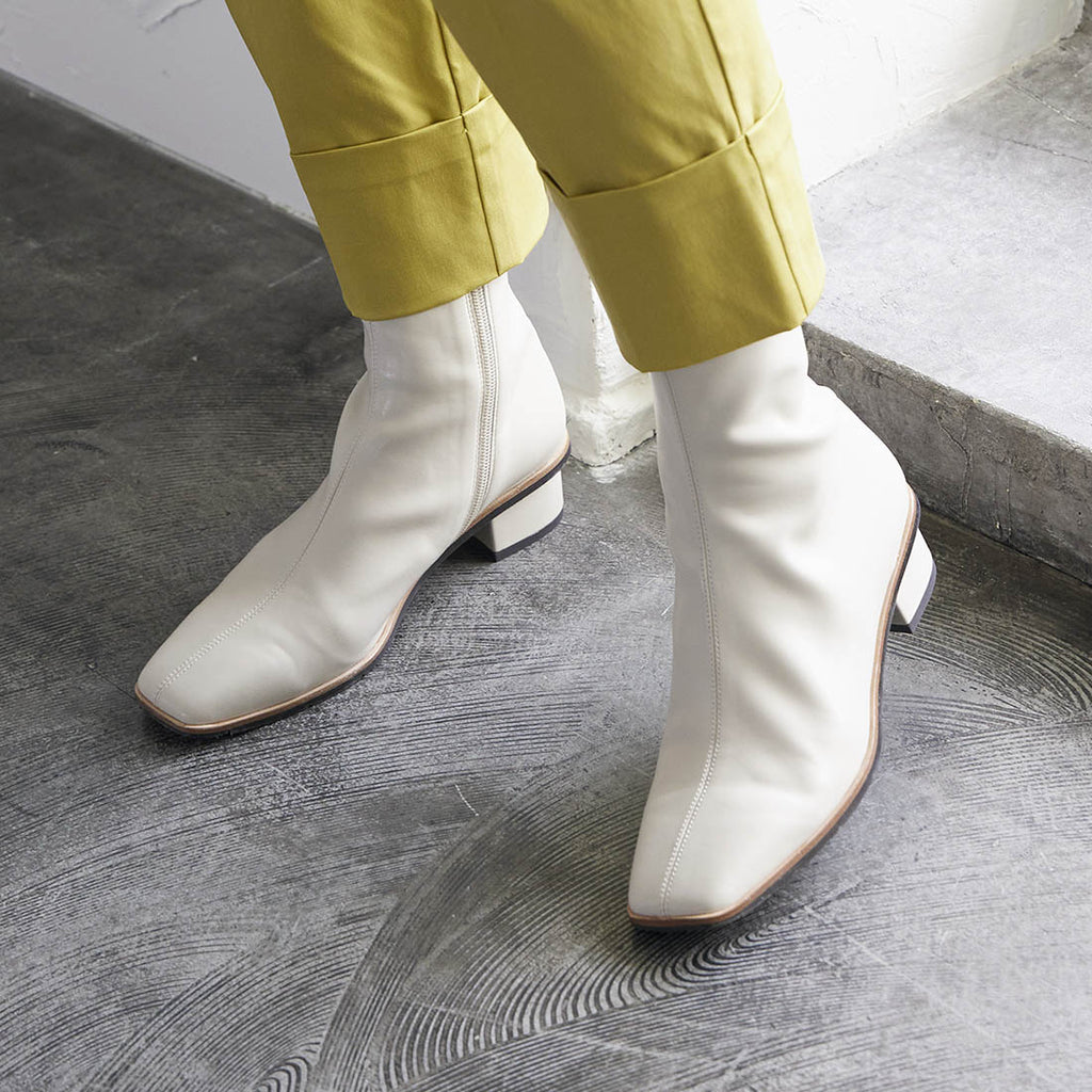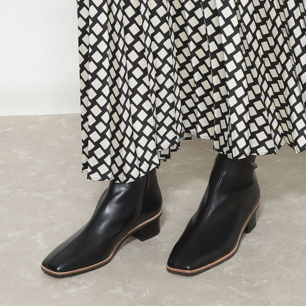 Usual size: 23.5cm or 24.0cm / Width: 2E / Foot characteristics: High instep, Greek style, different sizes on the left and right Even with simple square toe boots, the center line makes your feet look neat. The deep dark brown color can be used from the peak season to early spring when it is still chilly ◎ The heel is also low at 3.5cm, so it seems good for going out. I get cold easily, so I want to wear thick socks, so the size up to 24.0cm was just right.