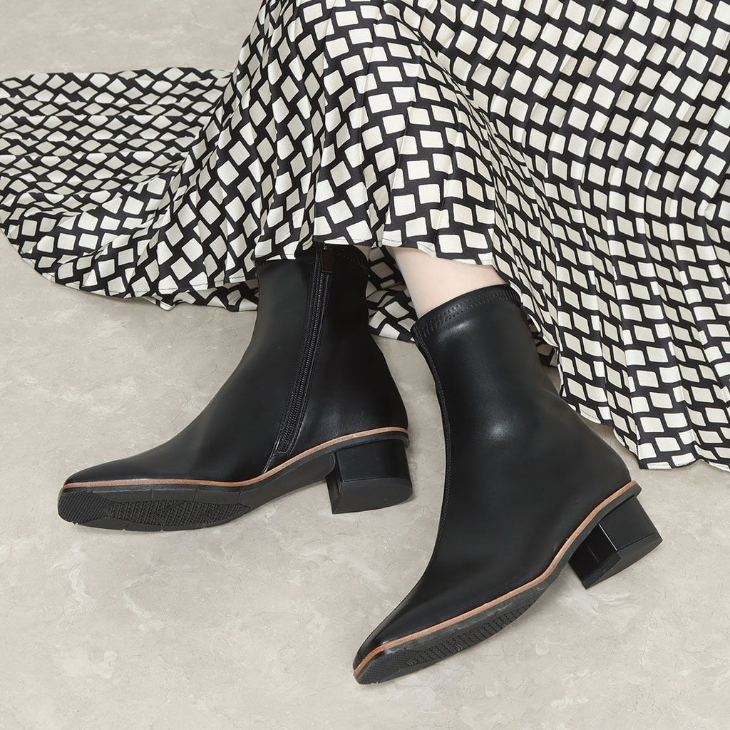 I'm happy that they are soft and light to wear. The size 23.5cm was just right. It seems a little cramped to wear thick socks in winter, so it would be better to wear something a little thinner. The tight shaft fits the foot and the heel is low, so it's very stable. It seems like it would be good for days when you walk a lot. The chic black color goes with any outfit, from smart to casual, and it seems like it would be useful in a variety of situations.
