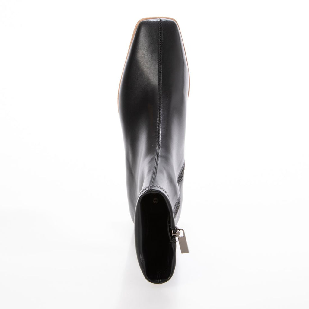 A pair of square toe short boots with a beautiful, stylish and sophisticated silhouette.
