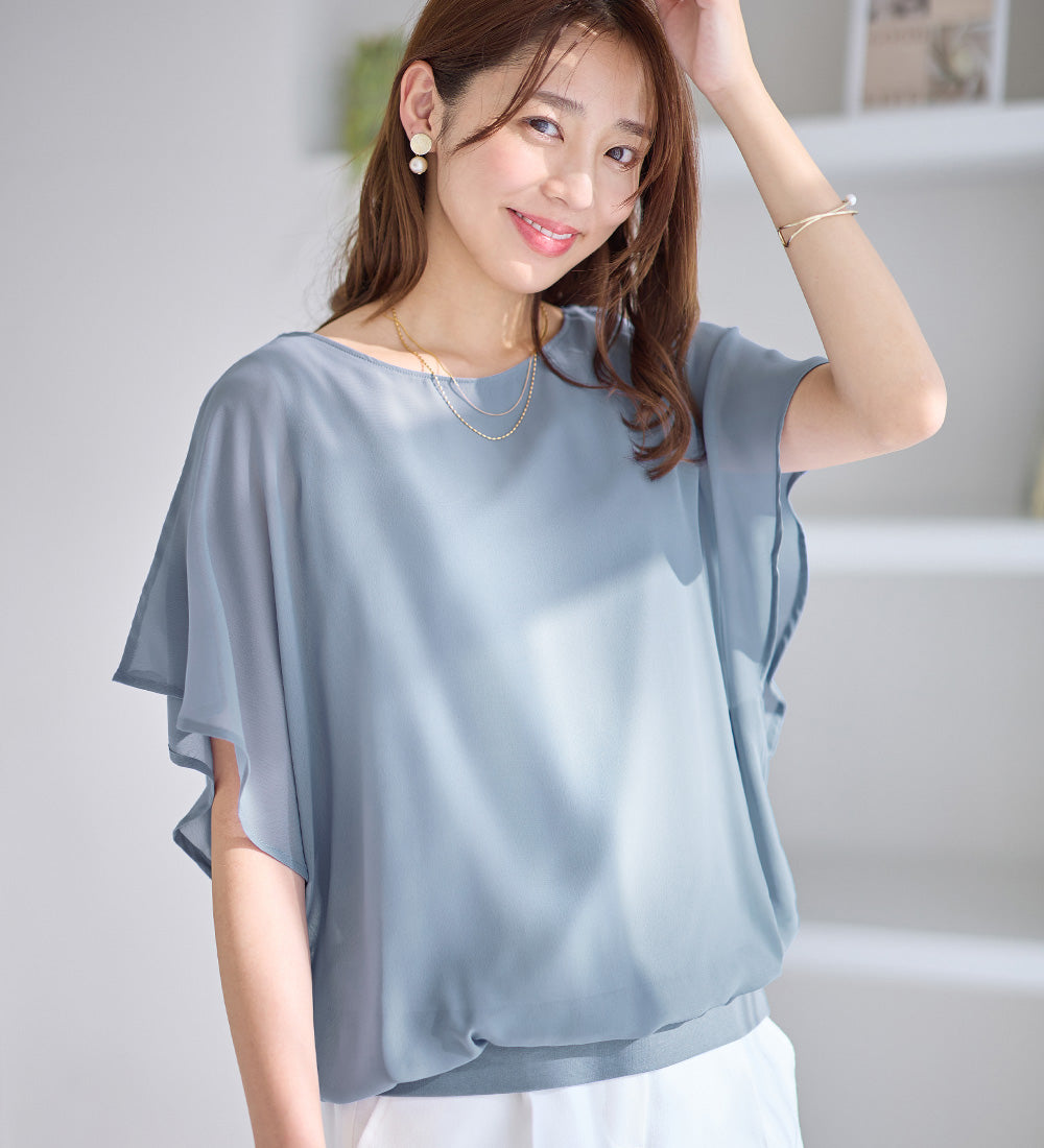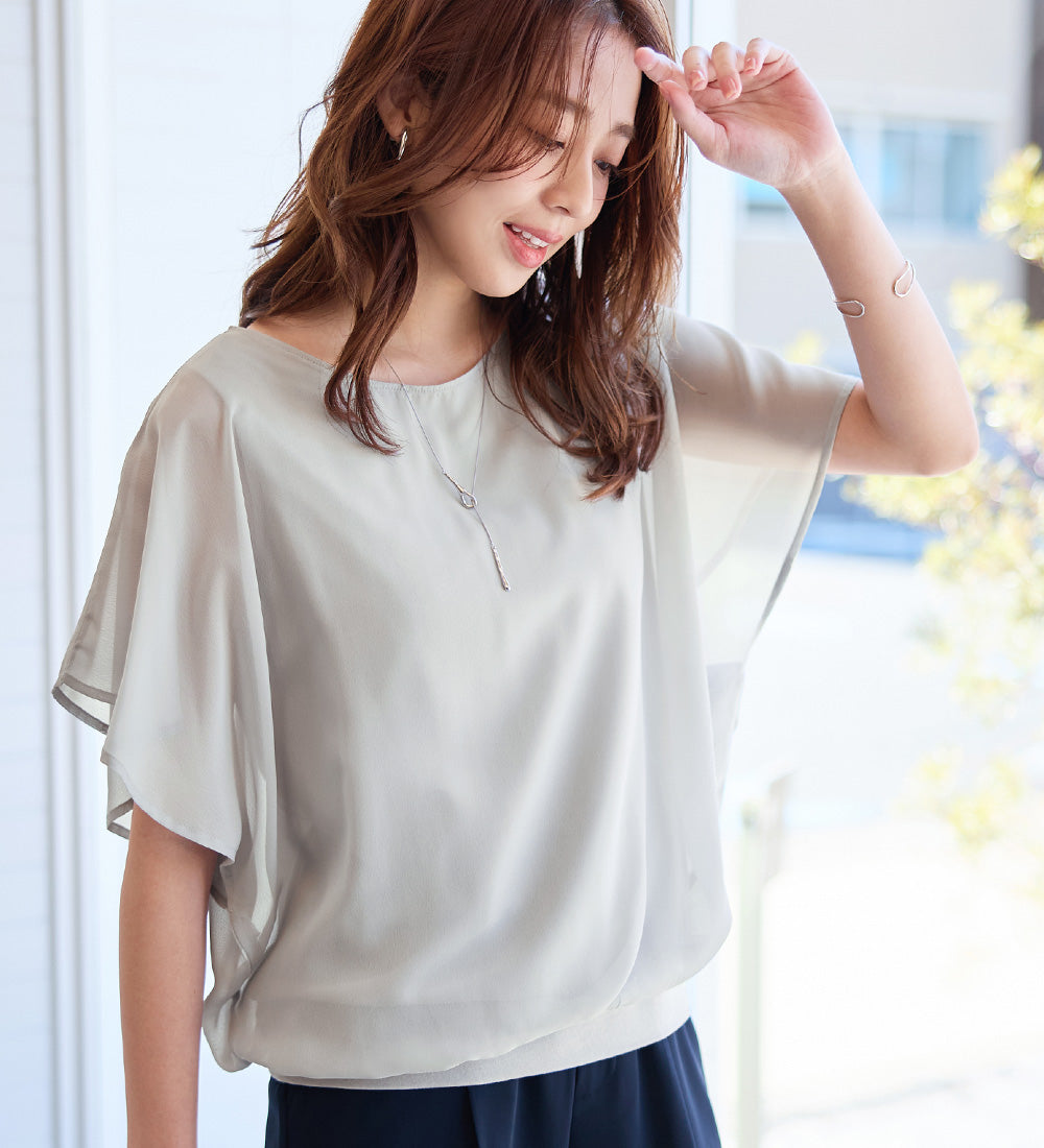 【Contact cooling sensation】 Cut and sewn lining Dolman blouse