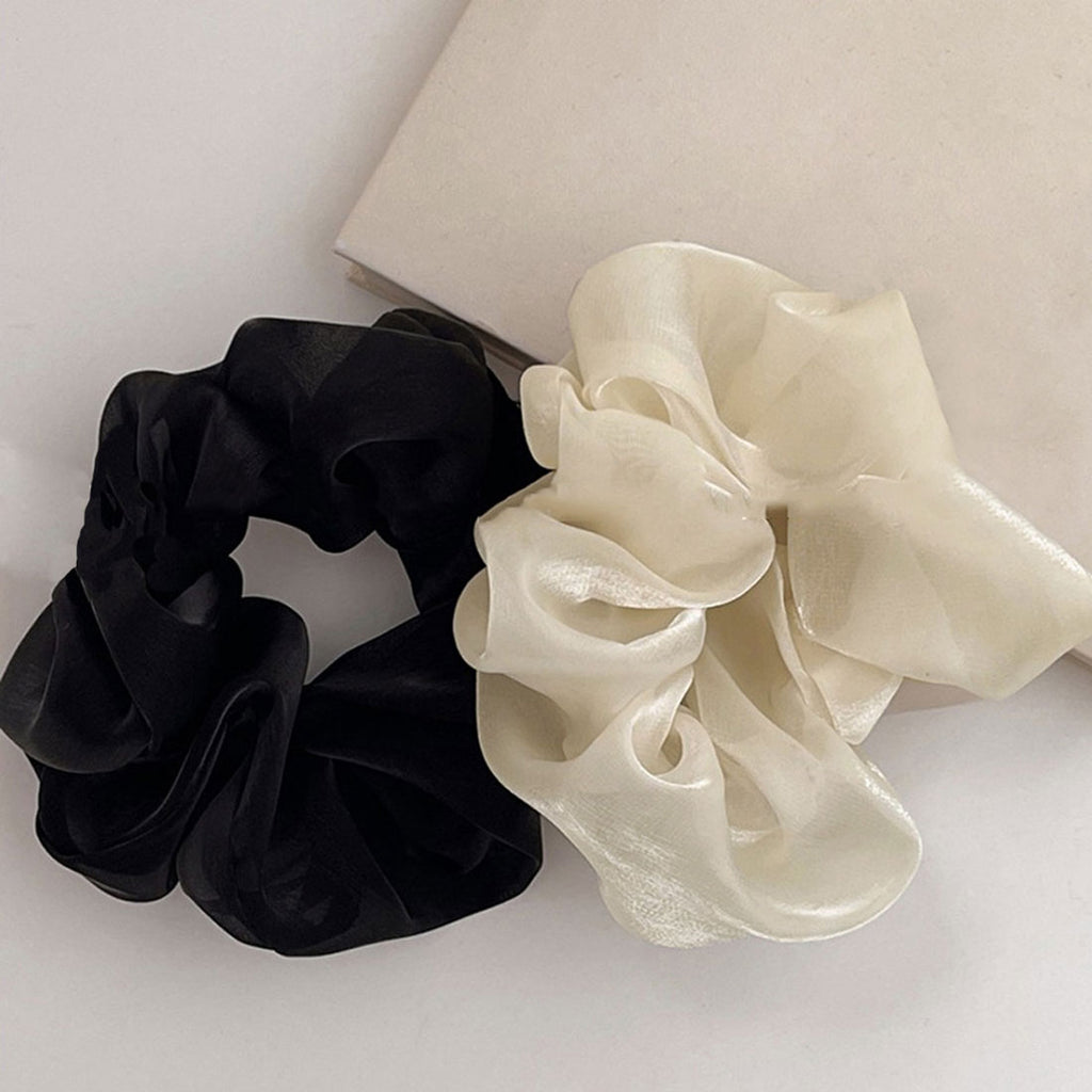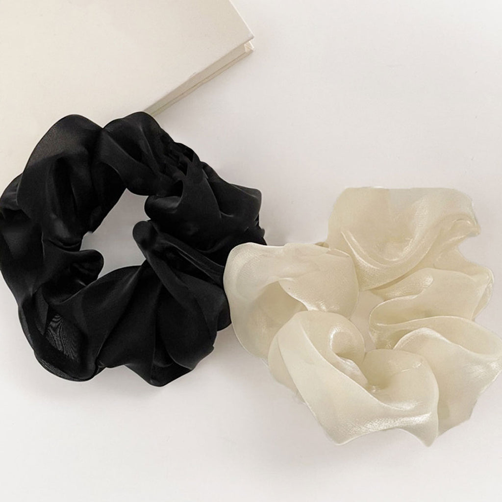 This is a scrunchie available in two colors, ivory and black, with a moderate glossy finish.
