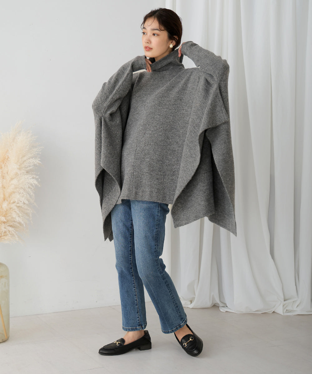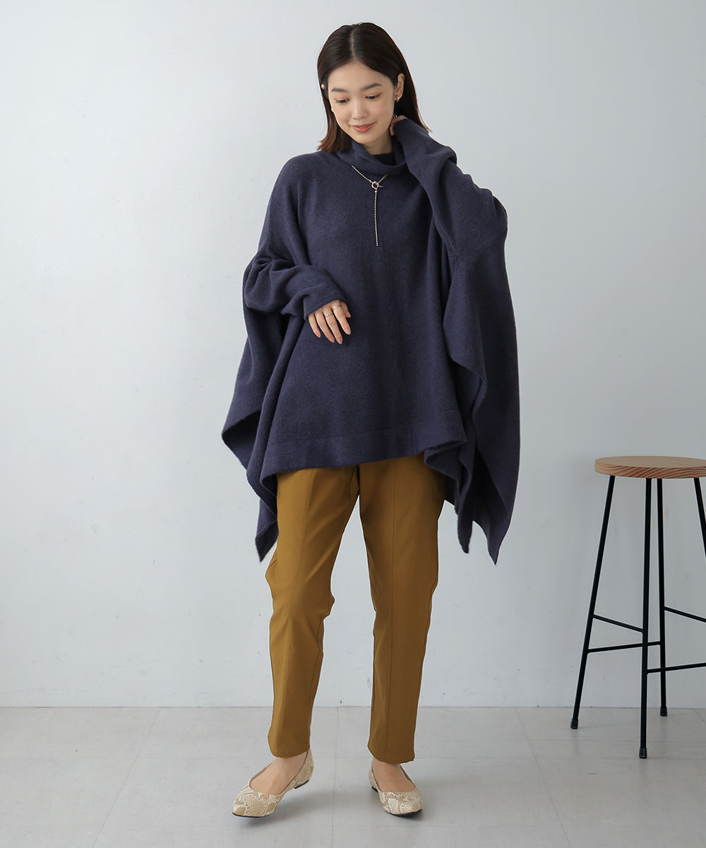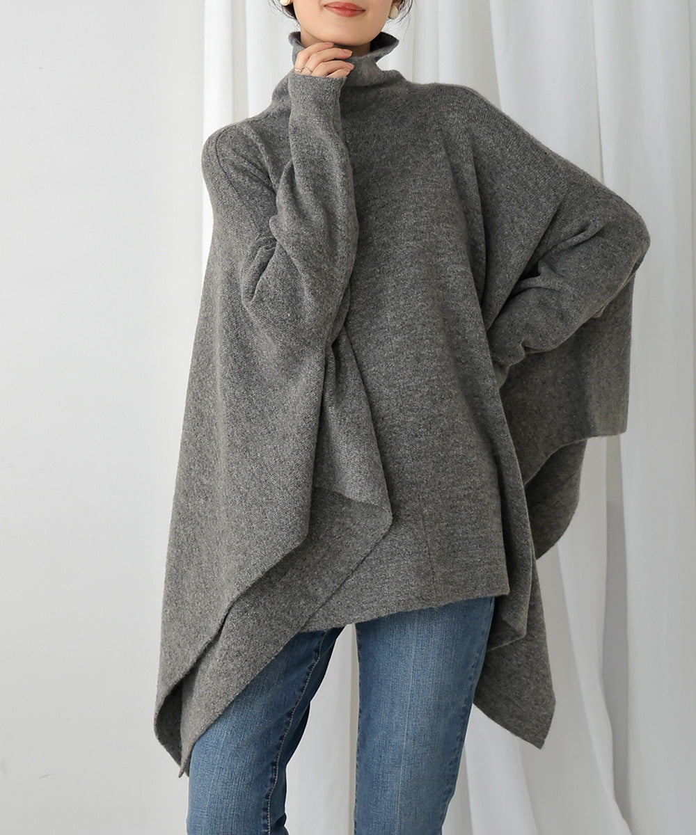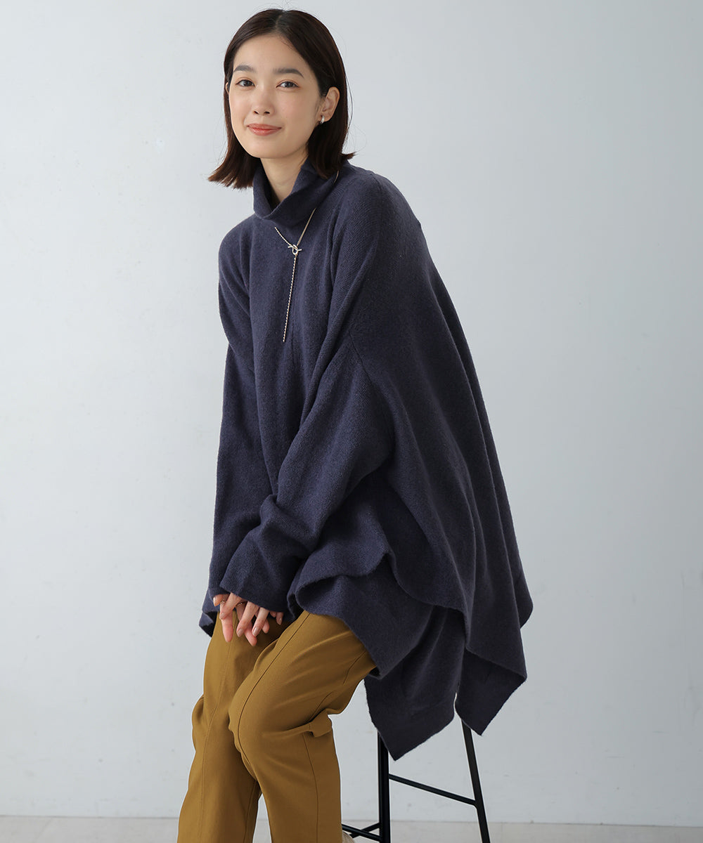 It has a relaxed and comfortable fit. The turtleneck and the deep side slits give it a trendy design.