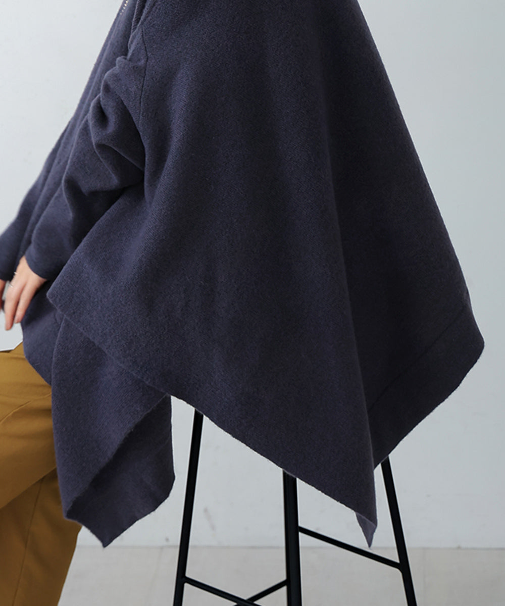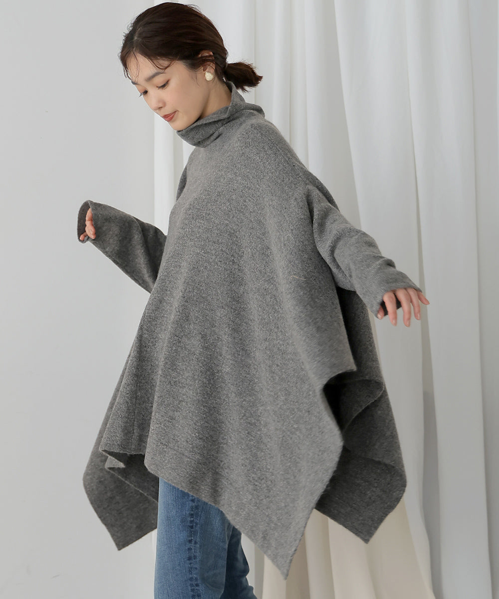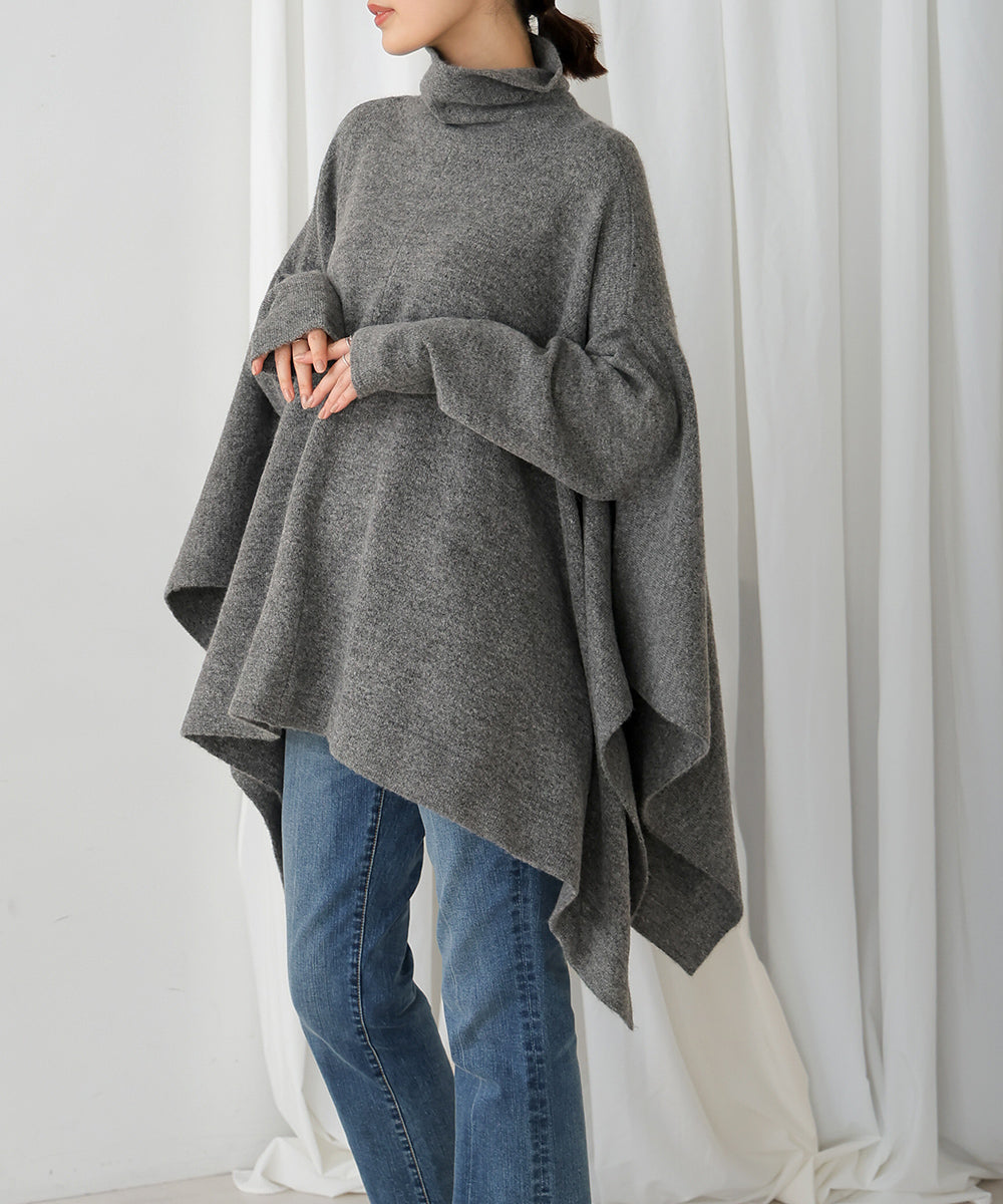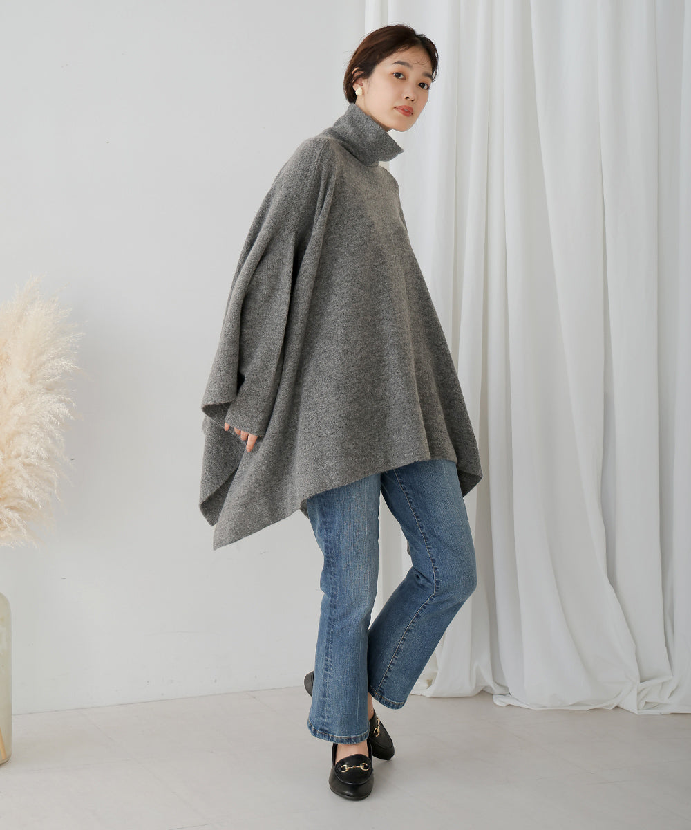It has a relaxed and comfortable fit. The turtleneck and the deep side slits give it a trendy design.