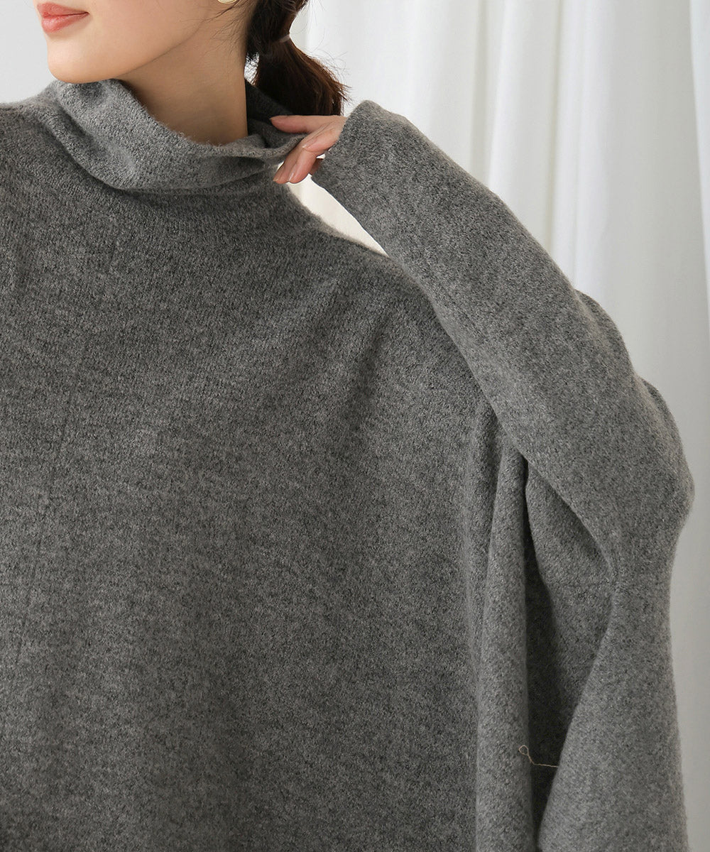With every movement, the body of the garment sways, creating a sense of fullness and expressing both the essence of knitwear and femininity in a striking piece.