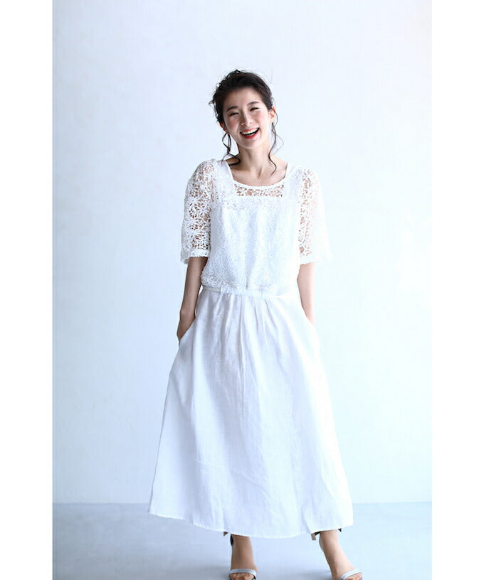 The calculated square neck guards against any peek of underwear whether you bend down or raise your arms. You can enjoy the lace dress with peace of mind◎