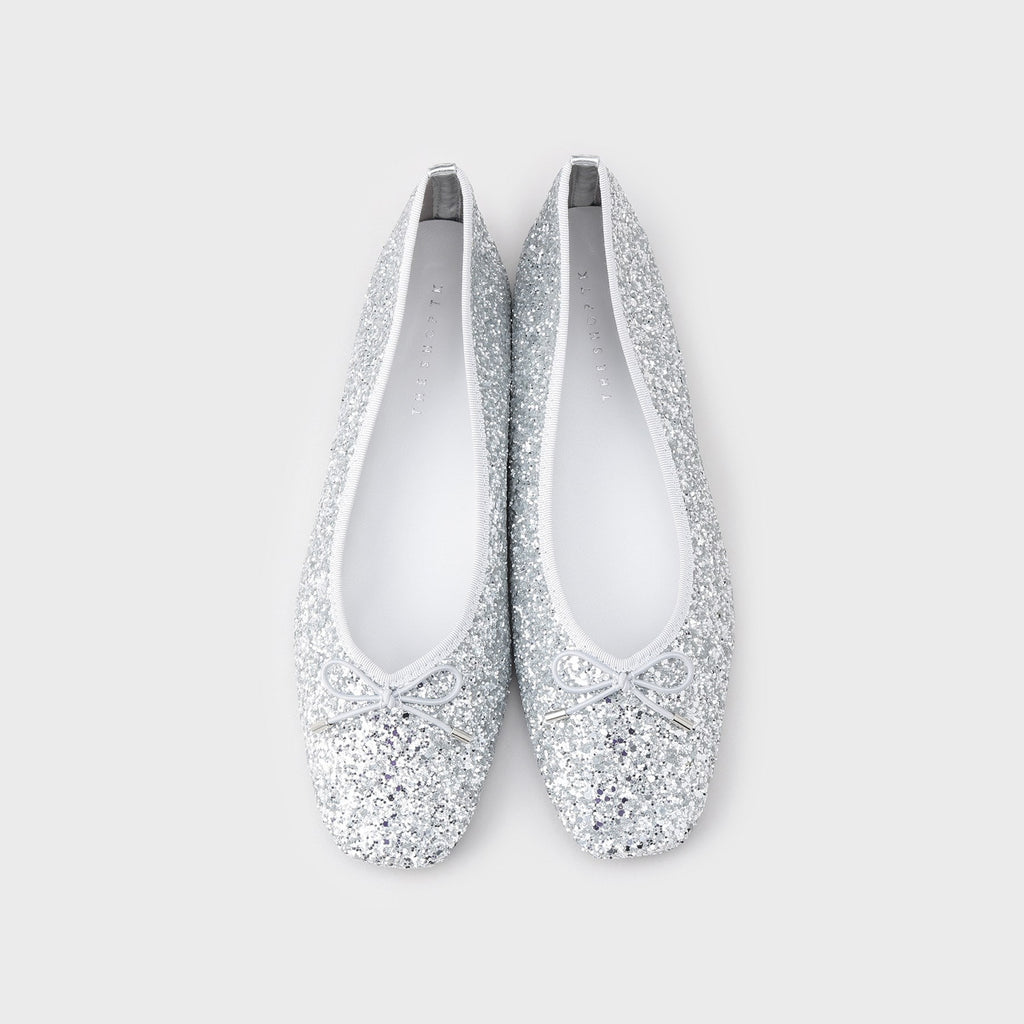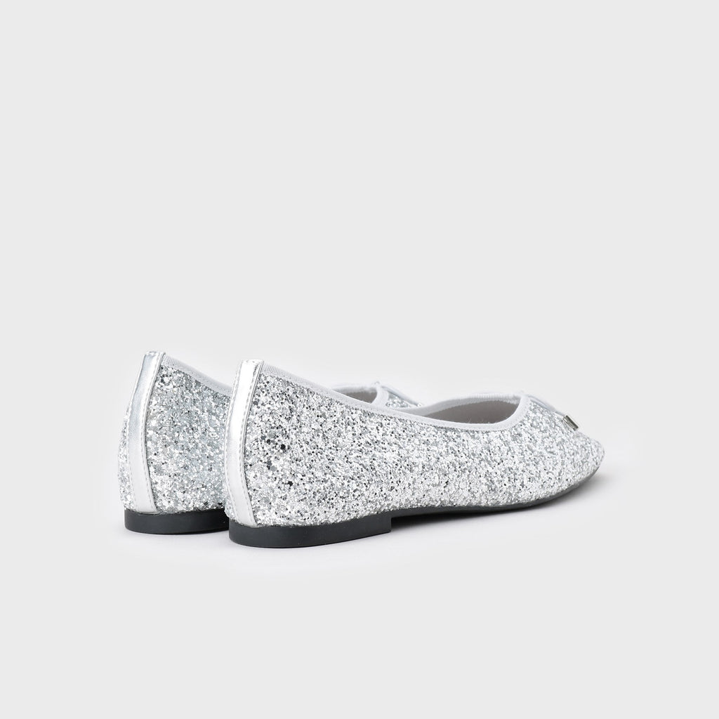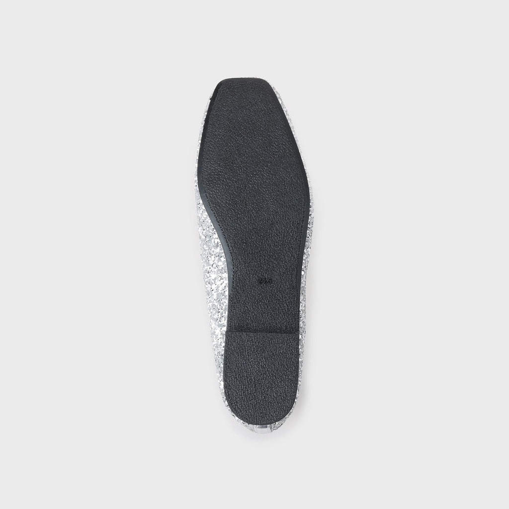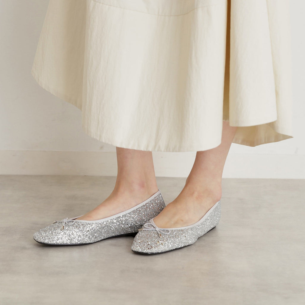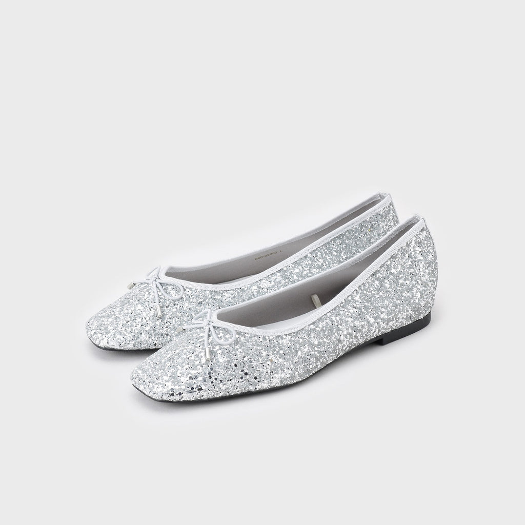 The ballet shoes with glitter and a square toe design are a very attractive and trendy pair.
