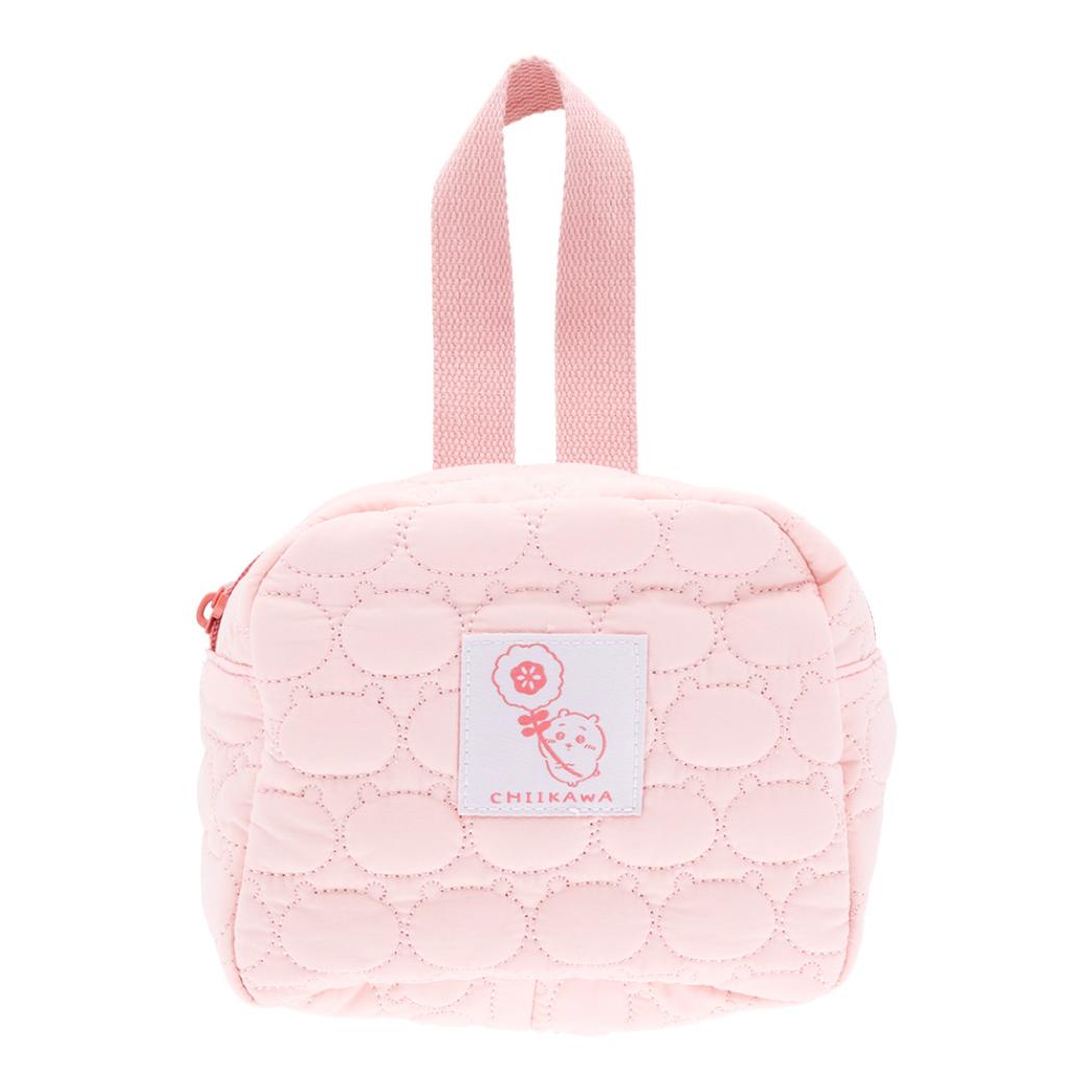 This is a convenient gusseted [キルティング持ち手付きポーチ].