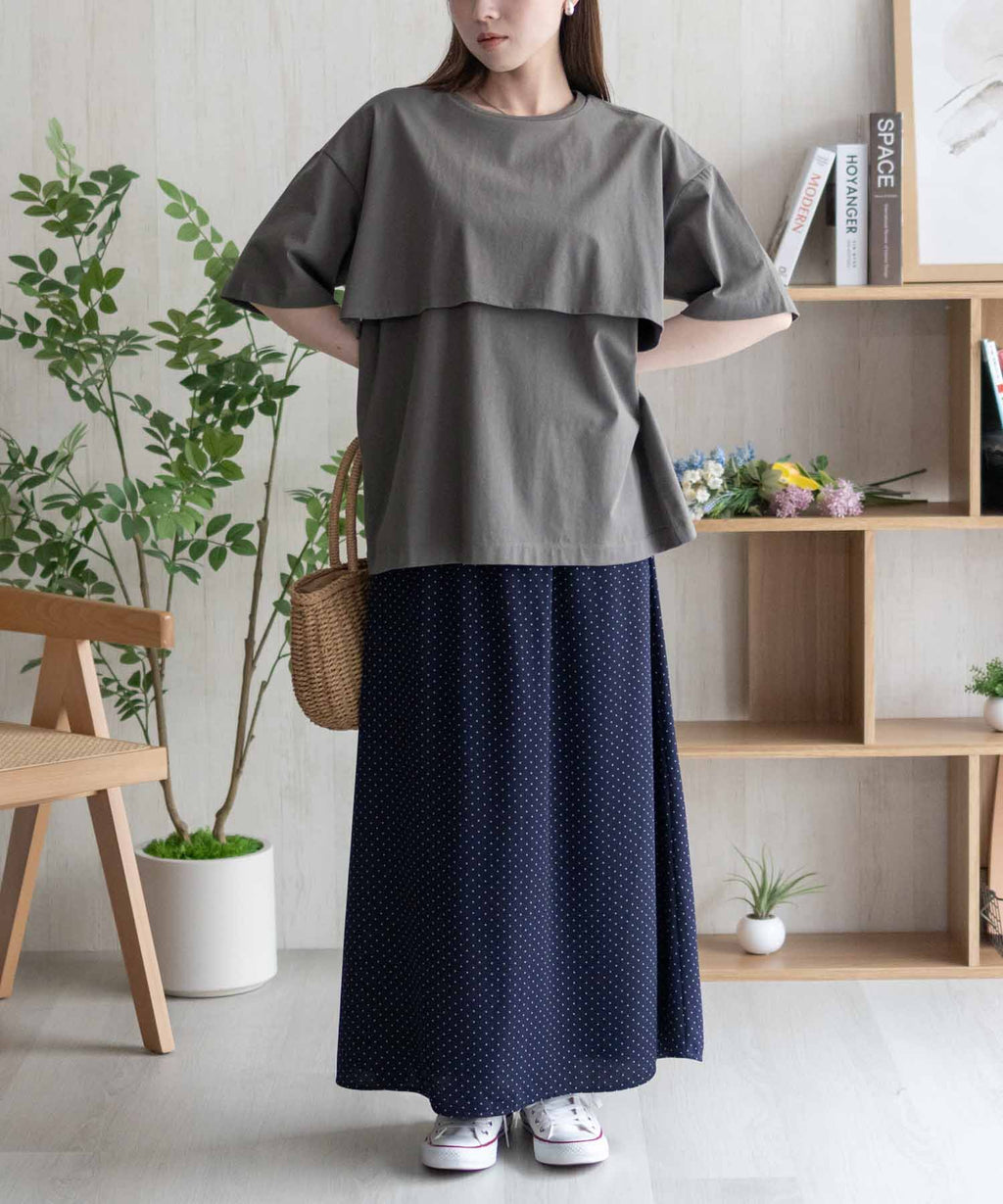 The main body is a silk-like cut-and-sew made of 100% cotton.