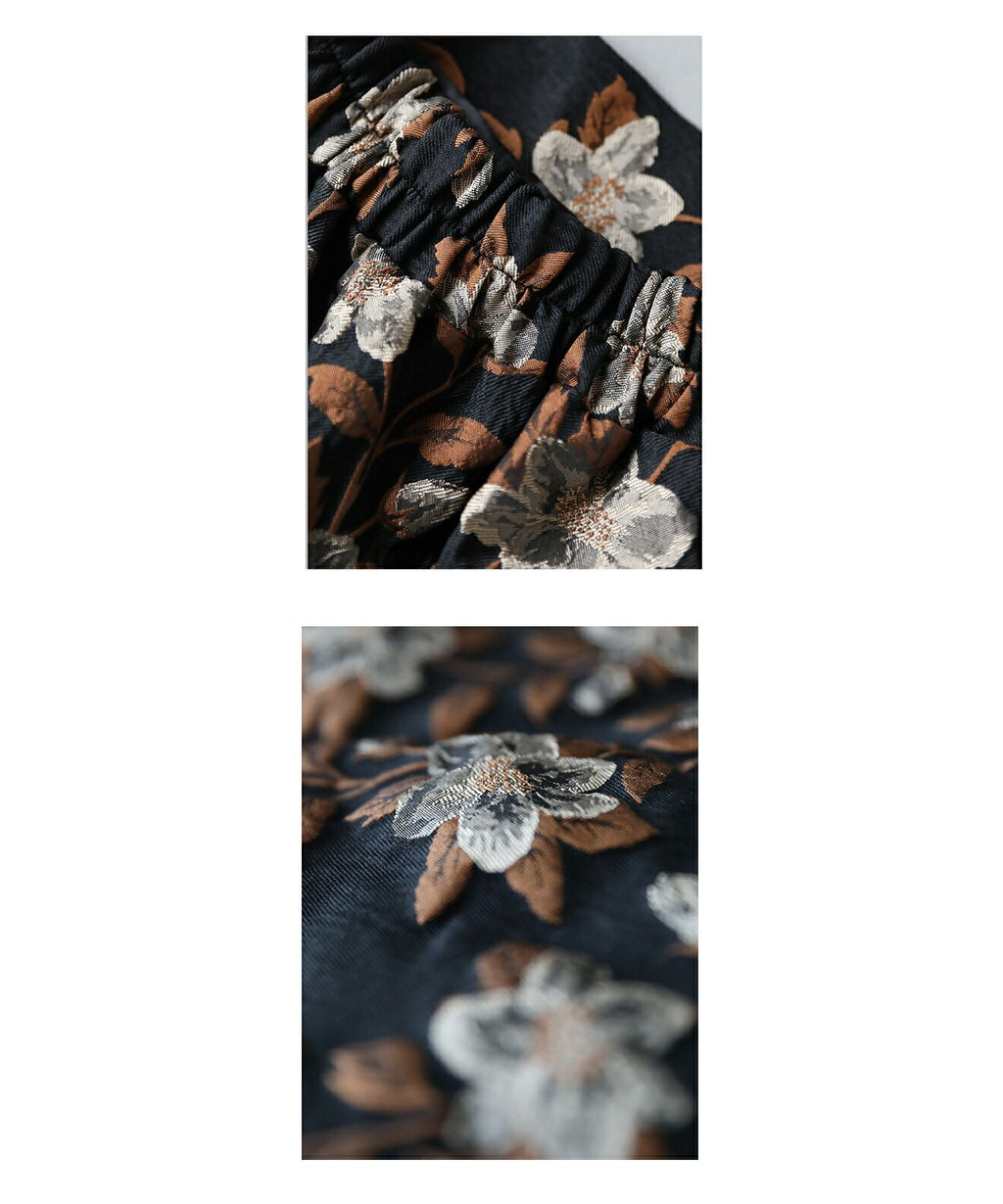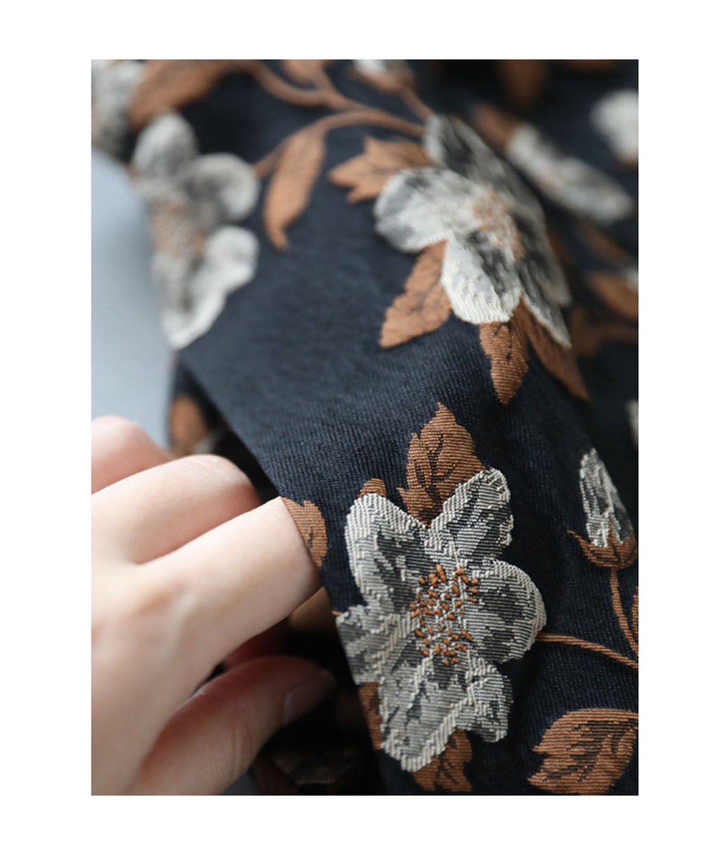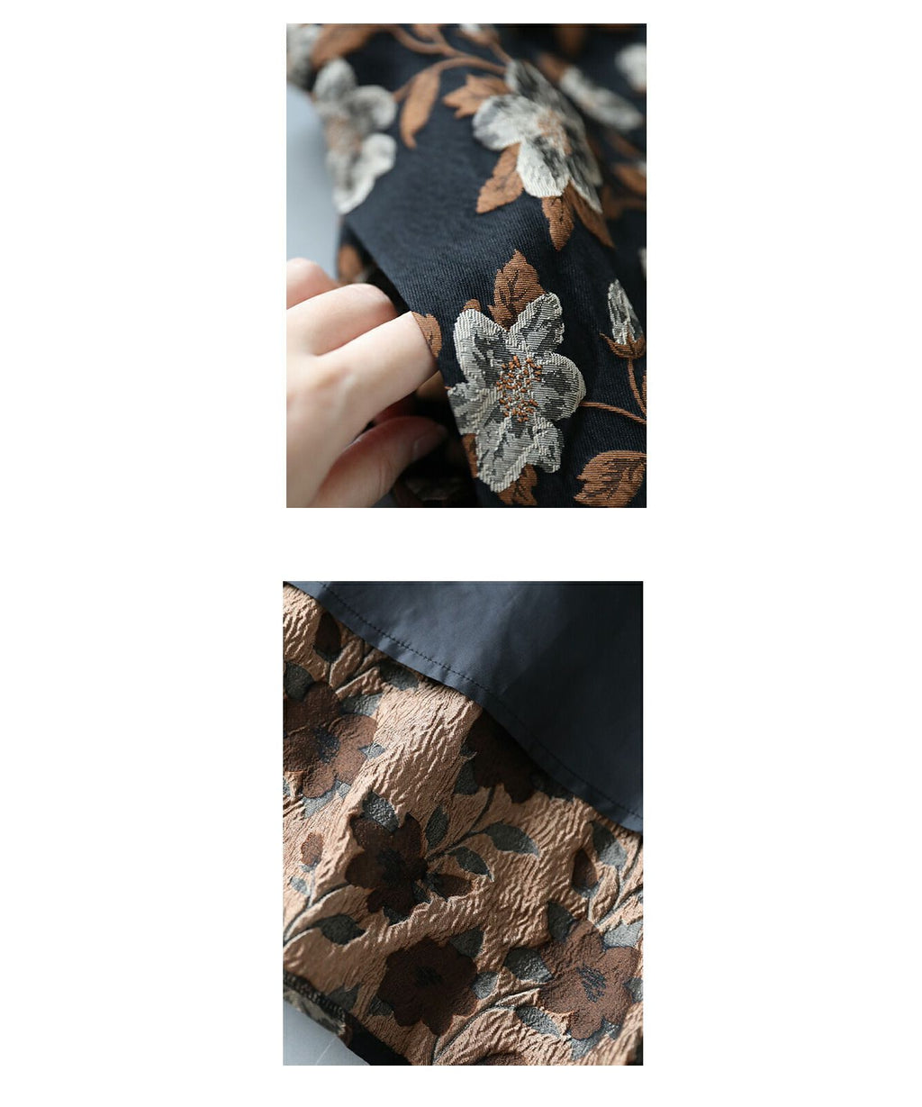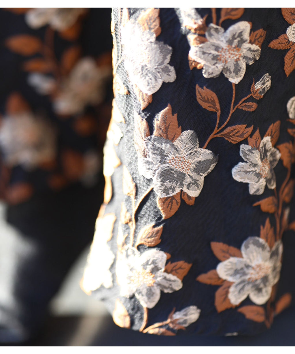 ■ High-end jacquard weaving that looks expensive The luxurious feel that cannot be achieved with print design is attractive. The shimmering gloss as you move creates a beautiful woven pattern with luster, and the flowers that emerge in the light make it very glamorous. Additionally, the three-dimensional floral pattern that appears elevates the coordination to a more luxurious level.
