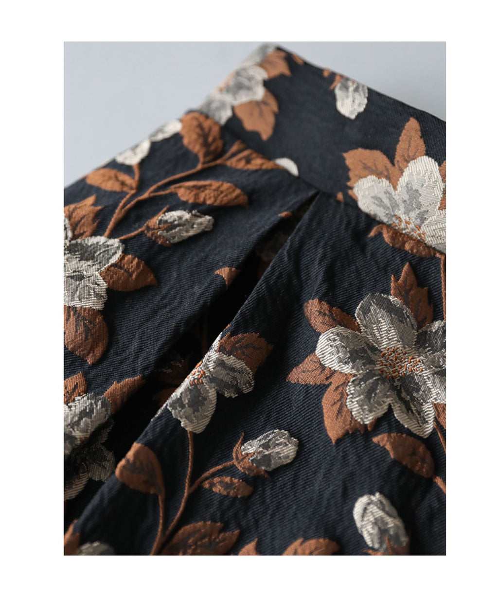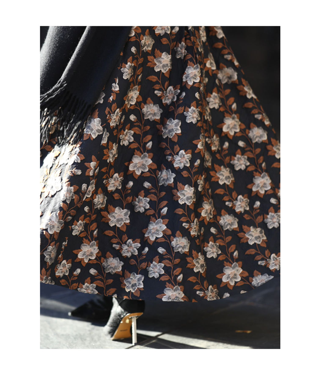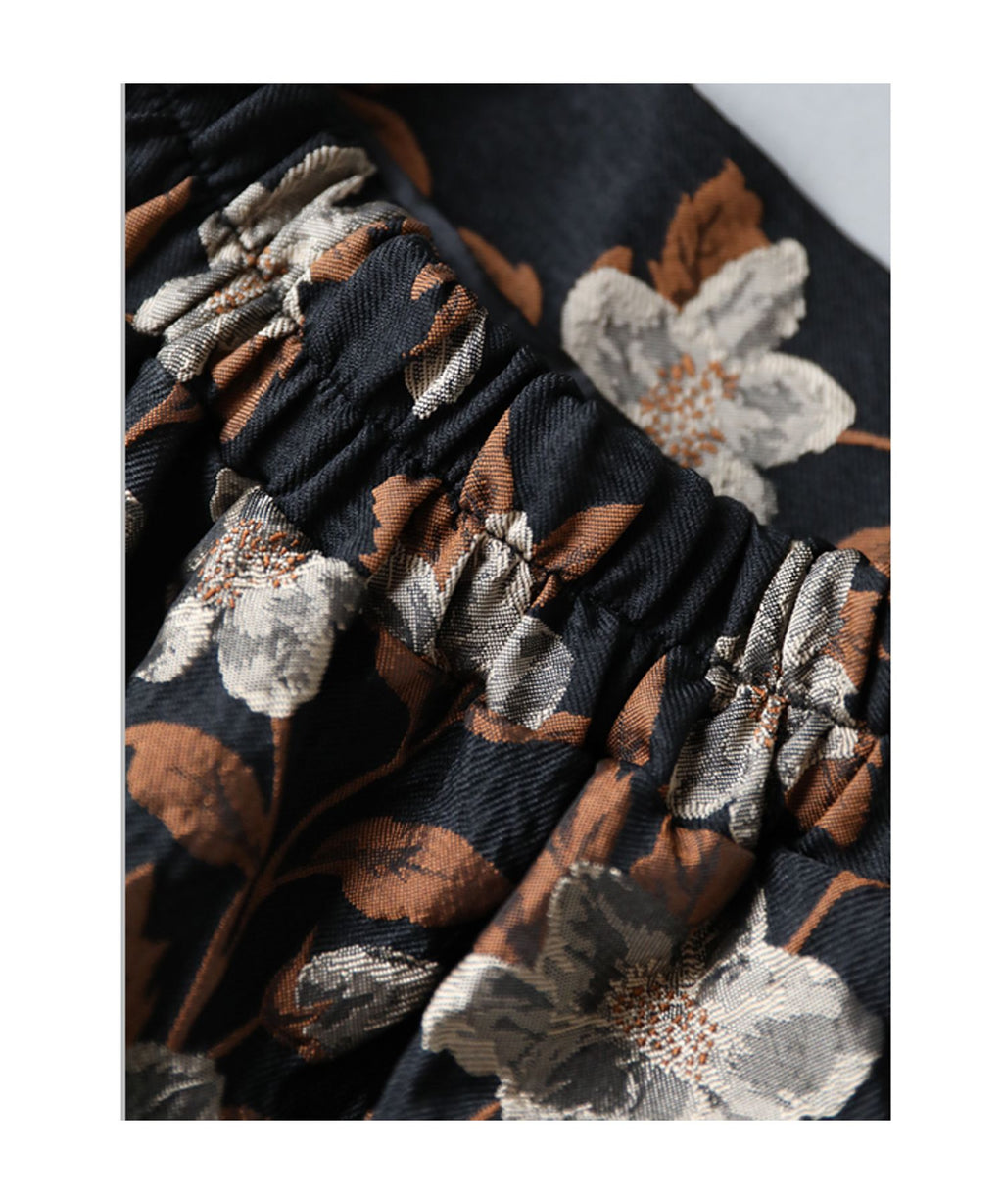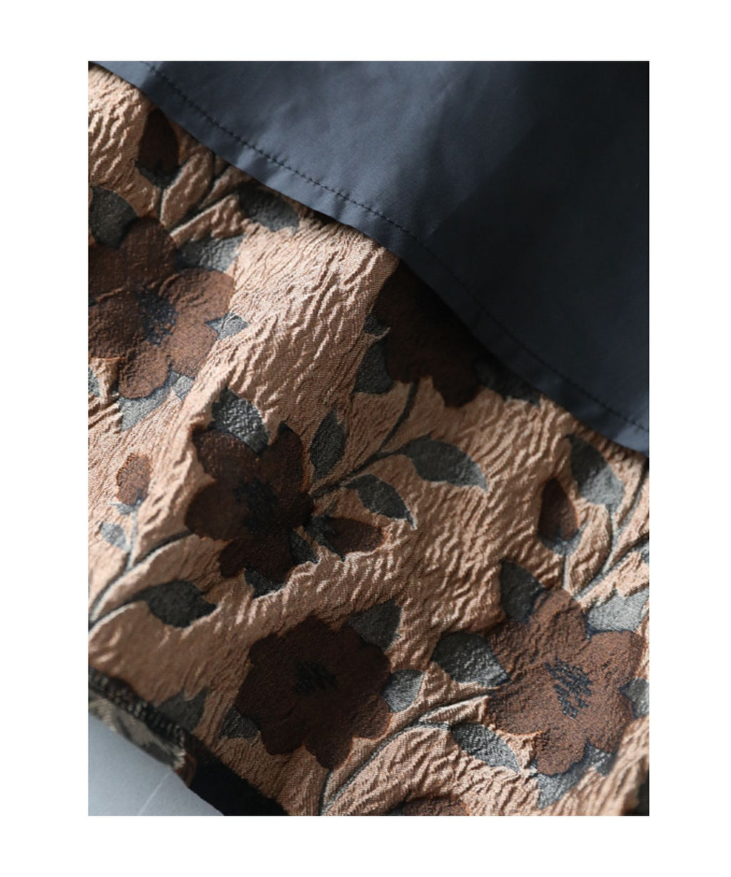 ■ High-end jacquard weaving that looks expensive The luxurious feel that cannot be achieved with print design is attractive. The shimmering gloss as you move creates a beautiful woven pattern with luster, and the flowers that emerge in the light make it very glamorous. Additionally, the three-dimensional floral pattern that appears elevates the coordination to a more luxurious level.