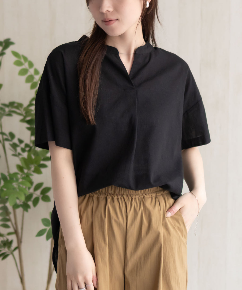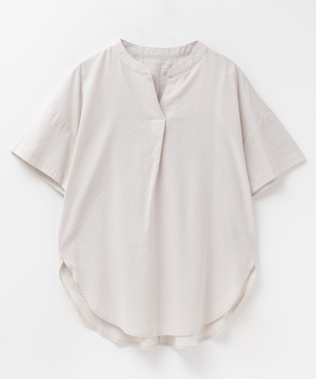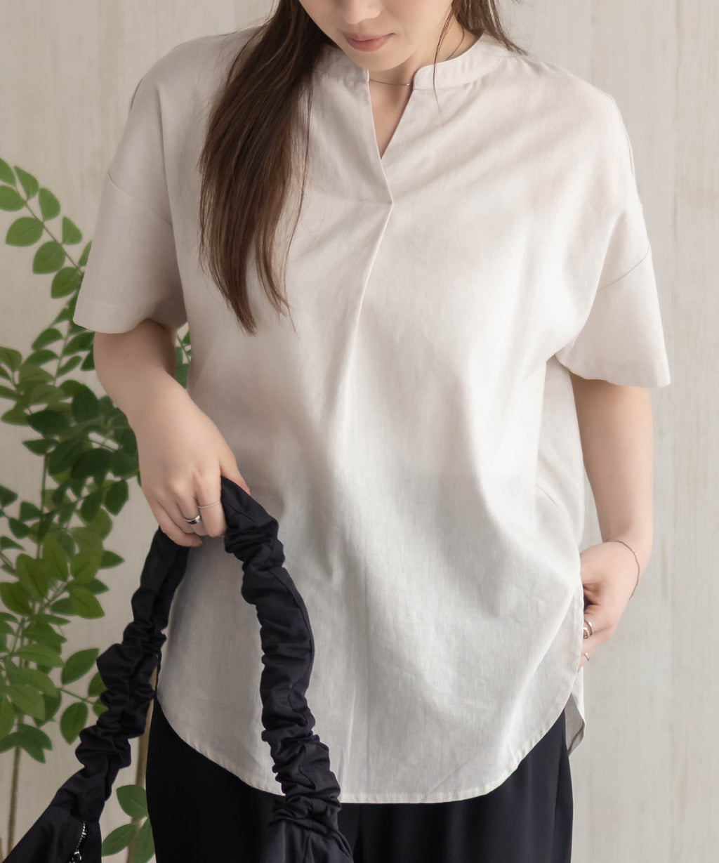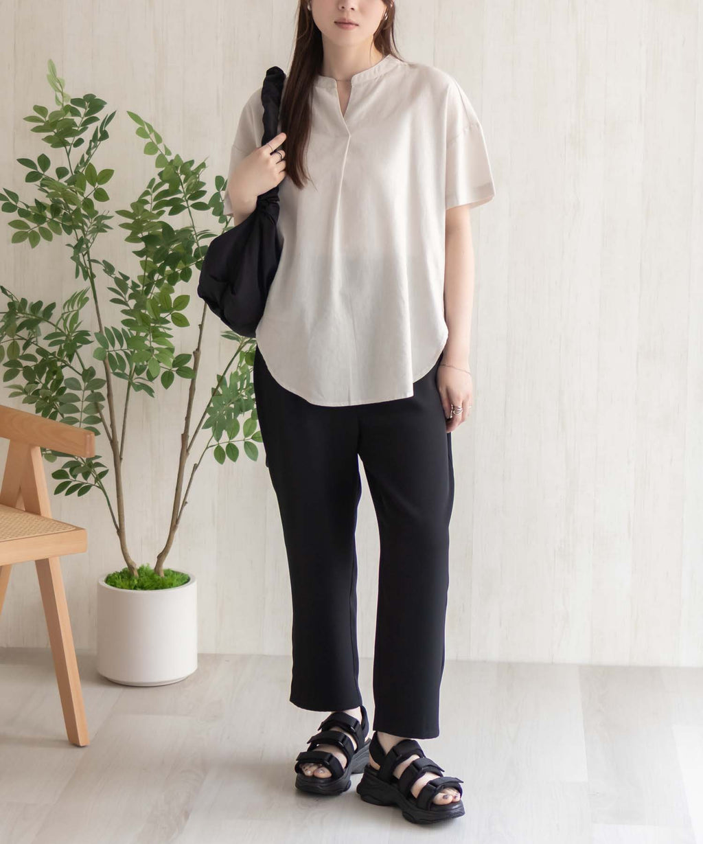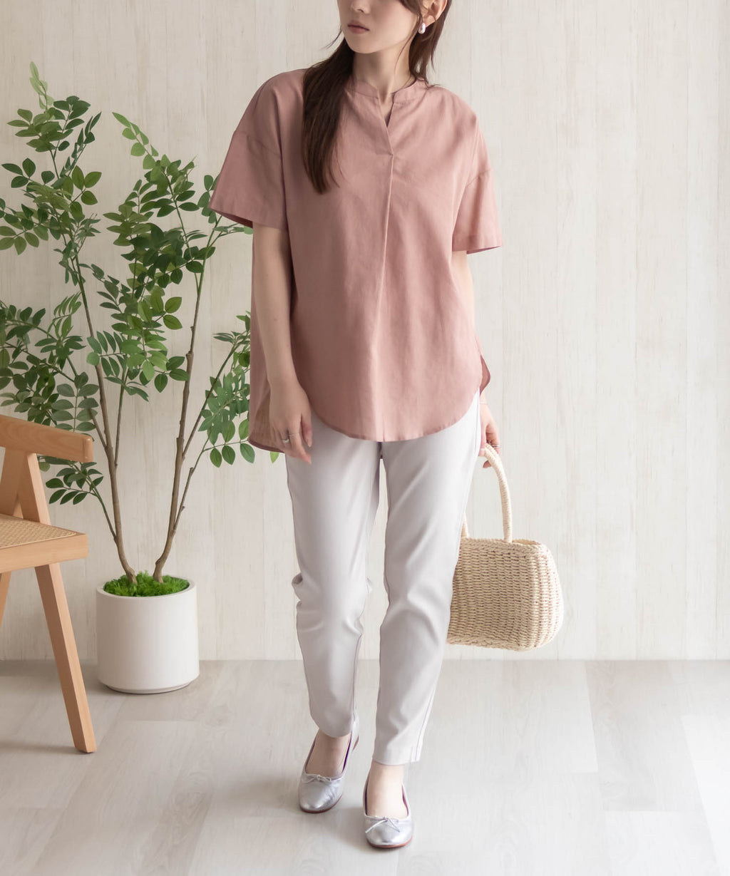 Made with a linen blend fabric, it can be worn coolly with just the right amount of thickness.