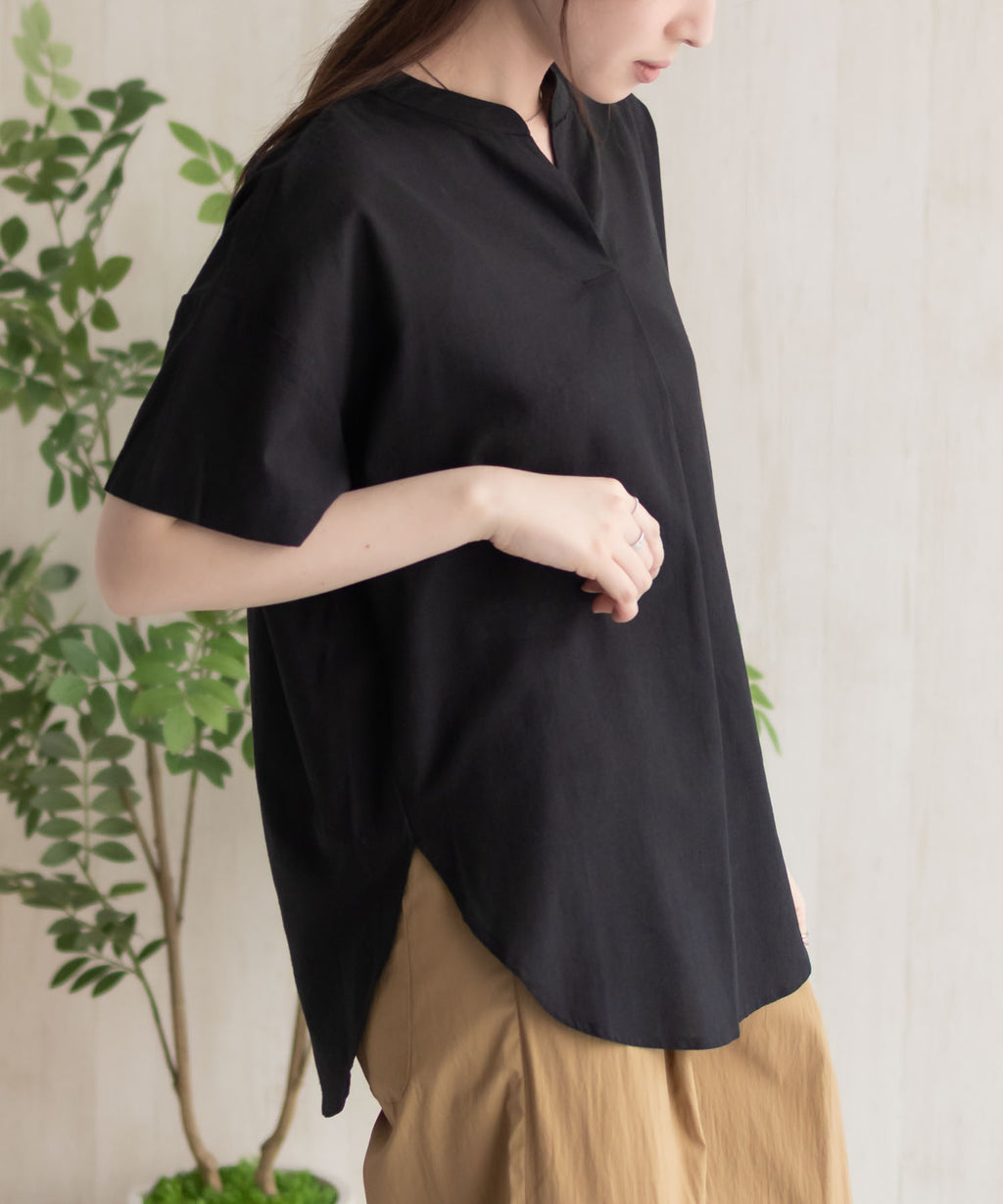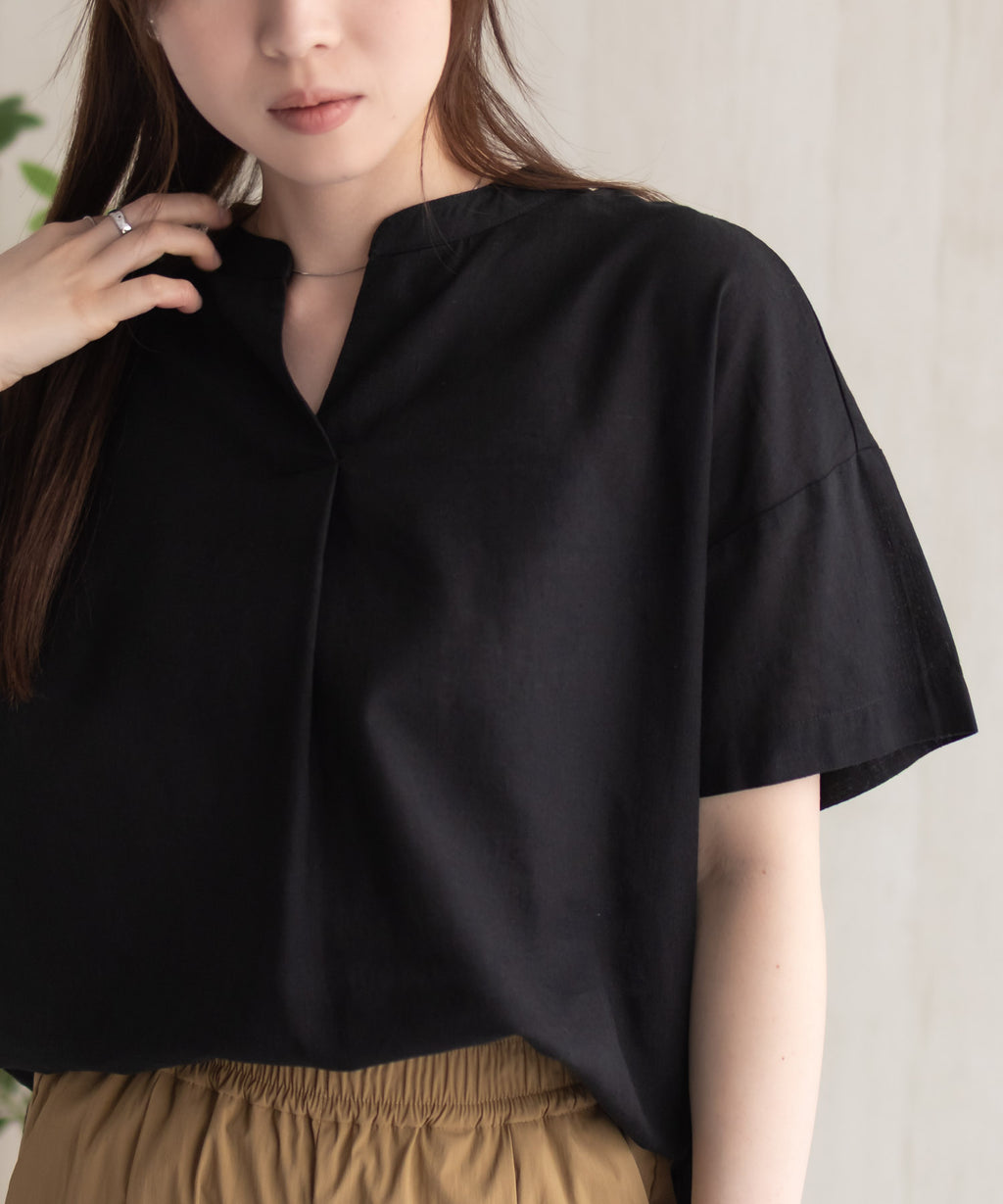 This is a piece that can be worn coolly even in hot seasons with its longer short sleeves.