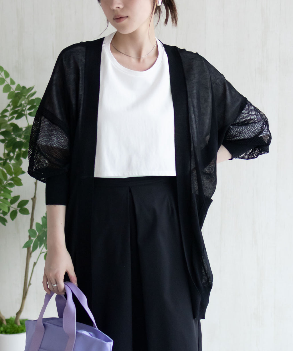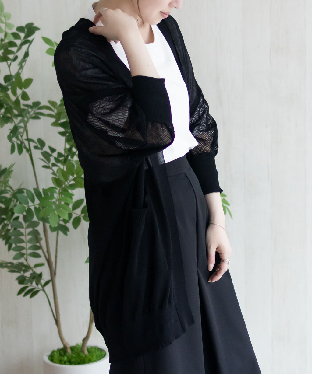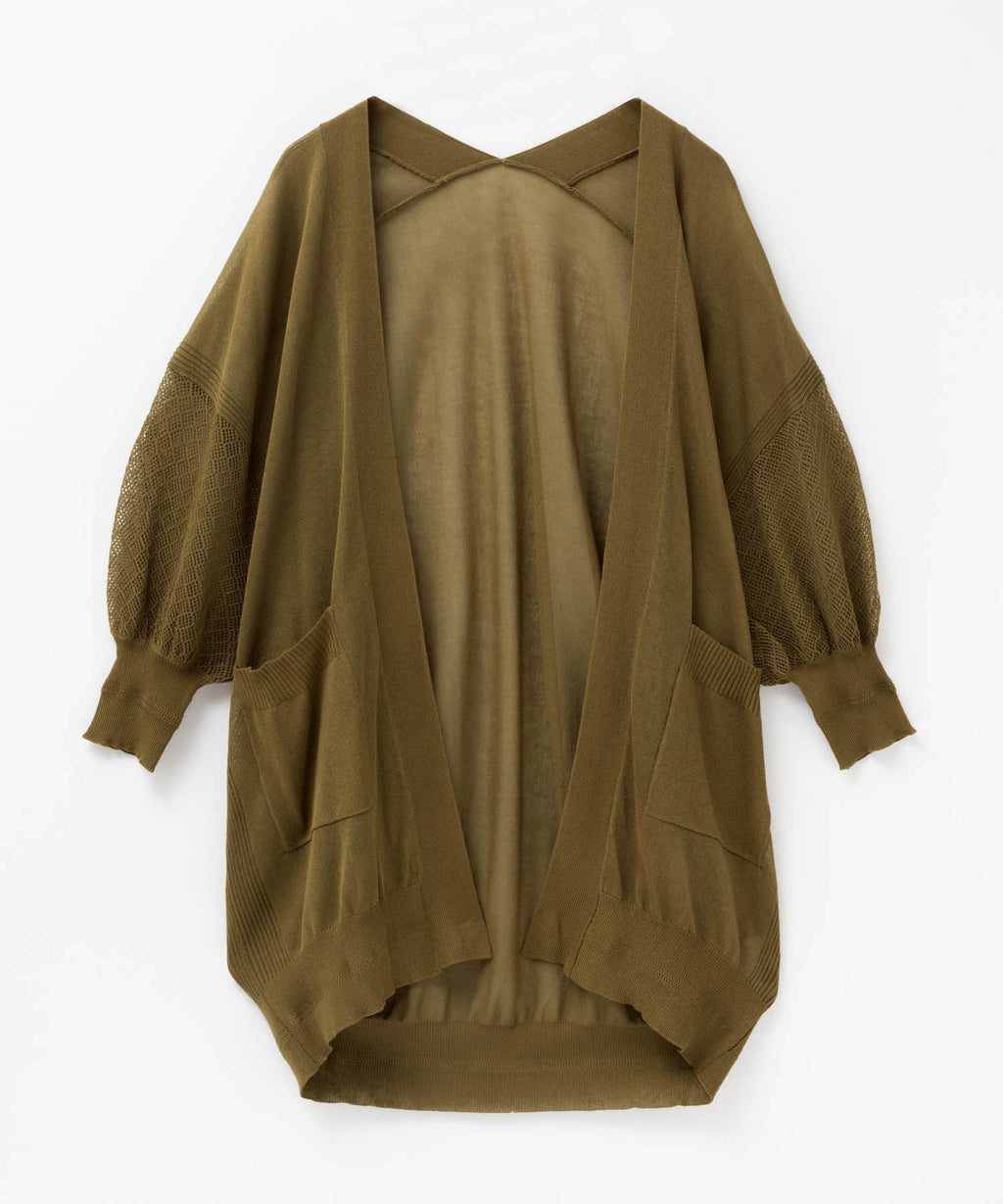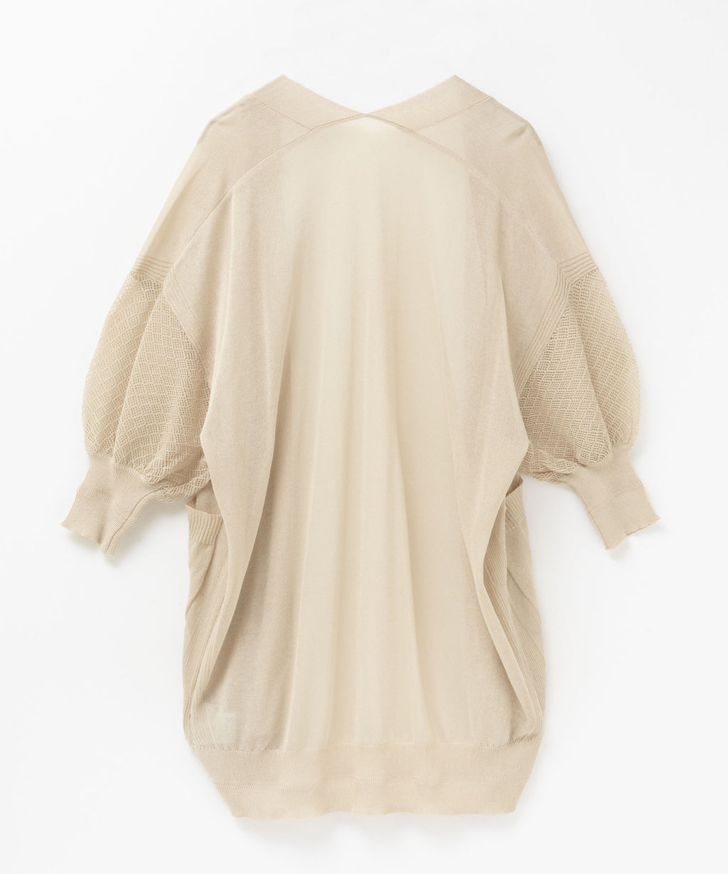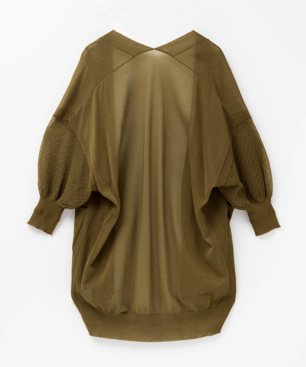 The volume of the sleeves and the lace-like pattern are the highlights.