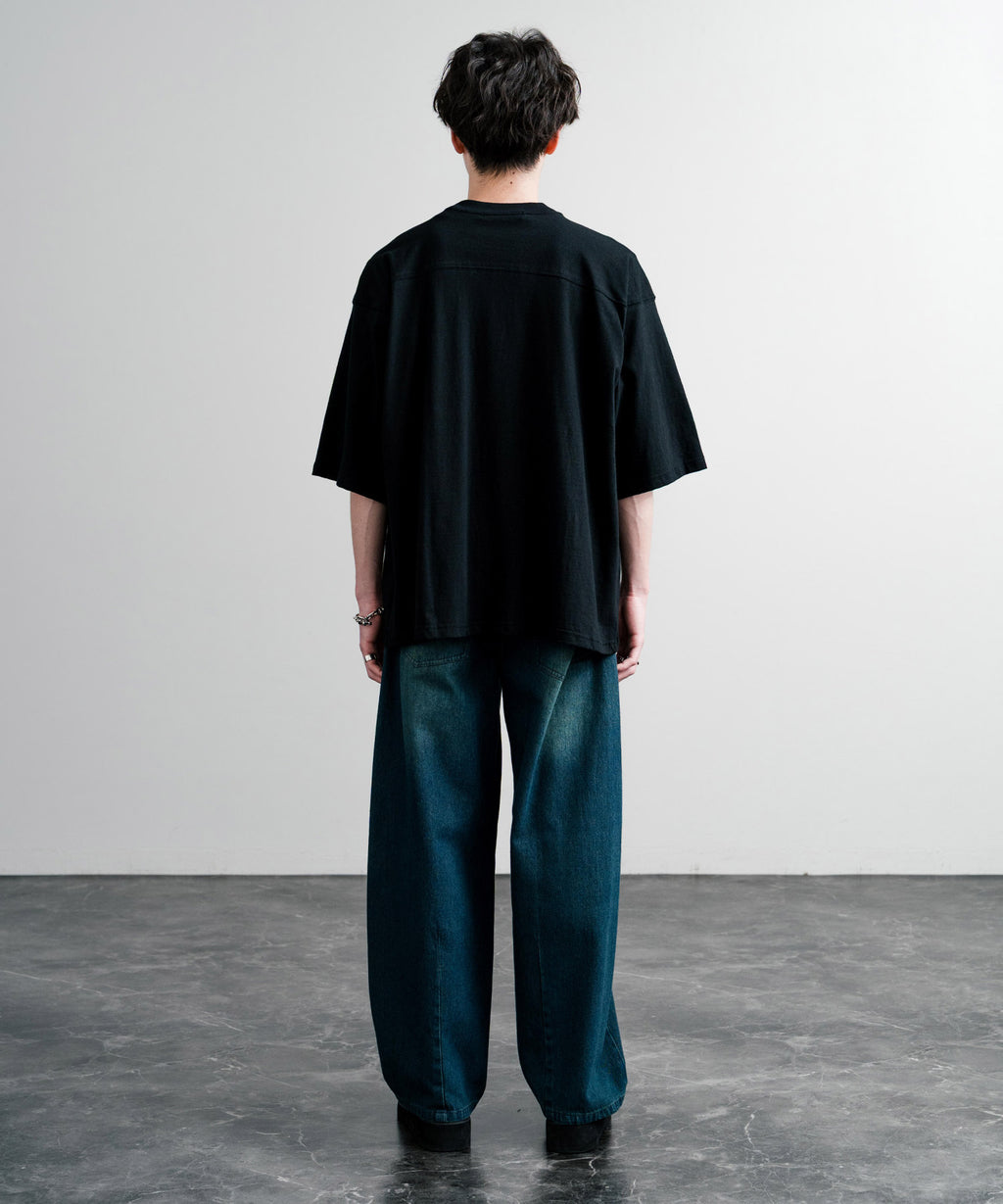 Simple yet featuring stitching unique to football T-shirts as an accent.