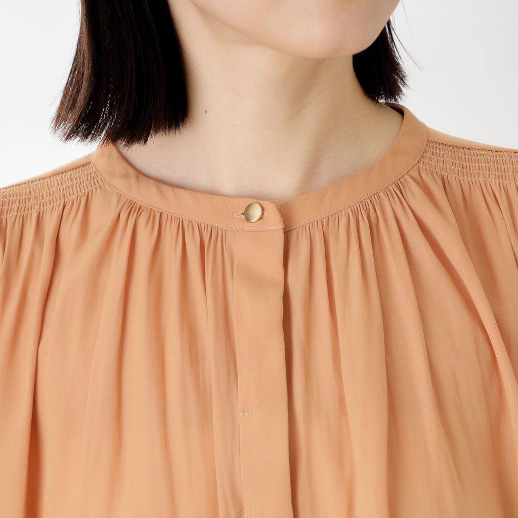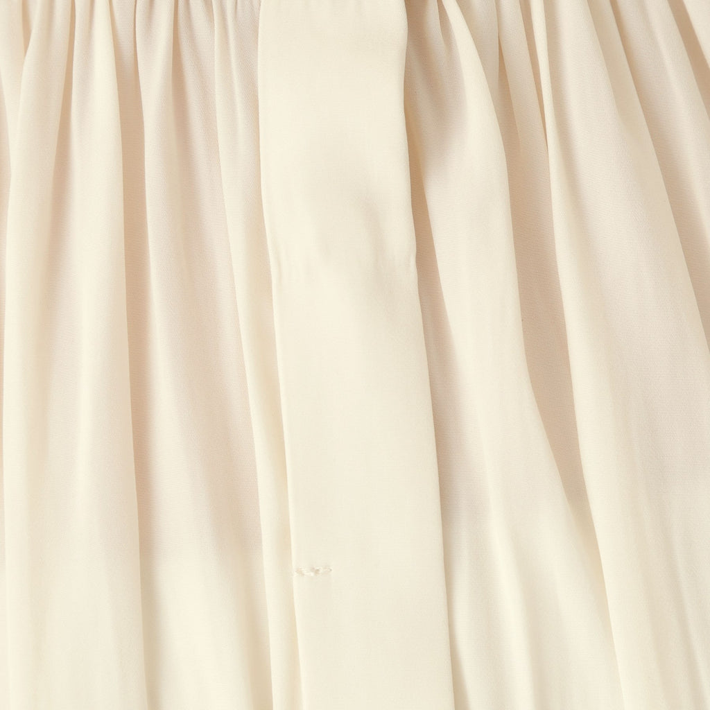 Delicate gathers bring soft movement and elegance to the whole, creating a refined impression with a simple yet presence-filled finish.