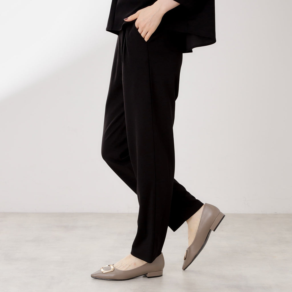 The waist is partially elastic, providing a neat look while ensuring a comfortable fit.